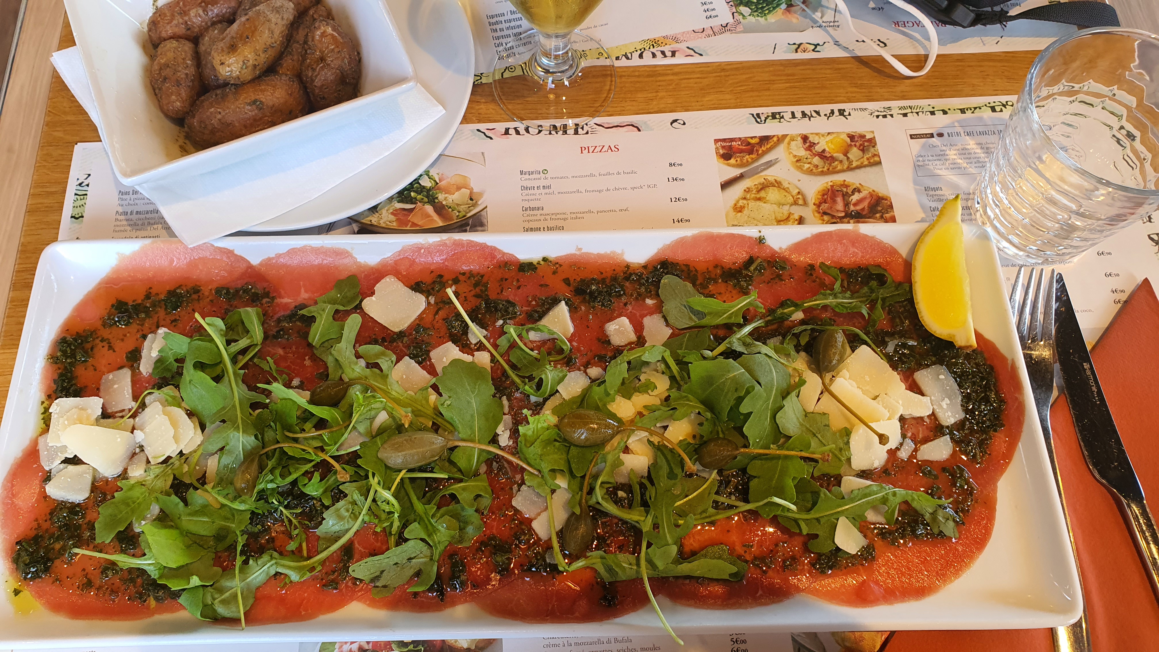Le cadre est super sympathique, belle décoration qui nous fait voyager le temps du repas en Italie, l'ambiance musicale aide un peu aussi... personnel souriant et agréable... le carpaccio est juste très bon, avec une petite Moretti ça passe bien