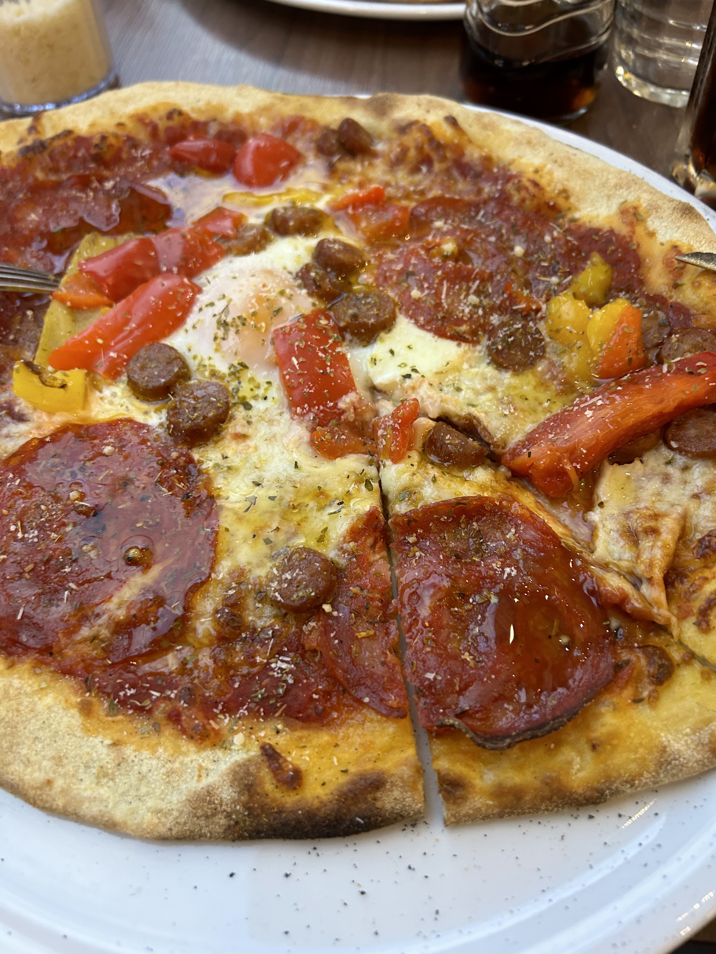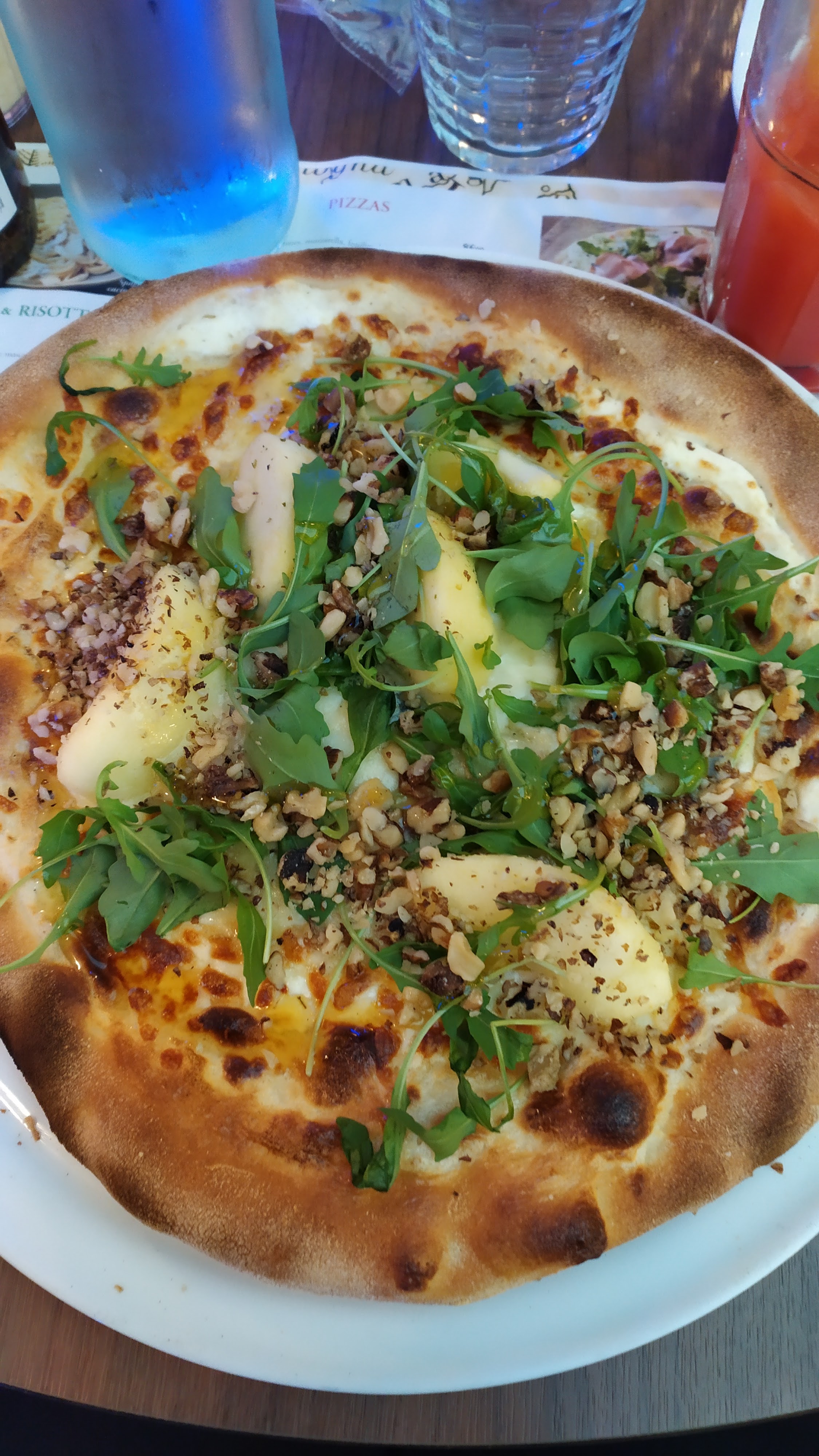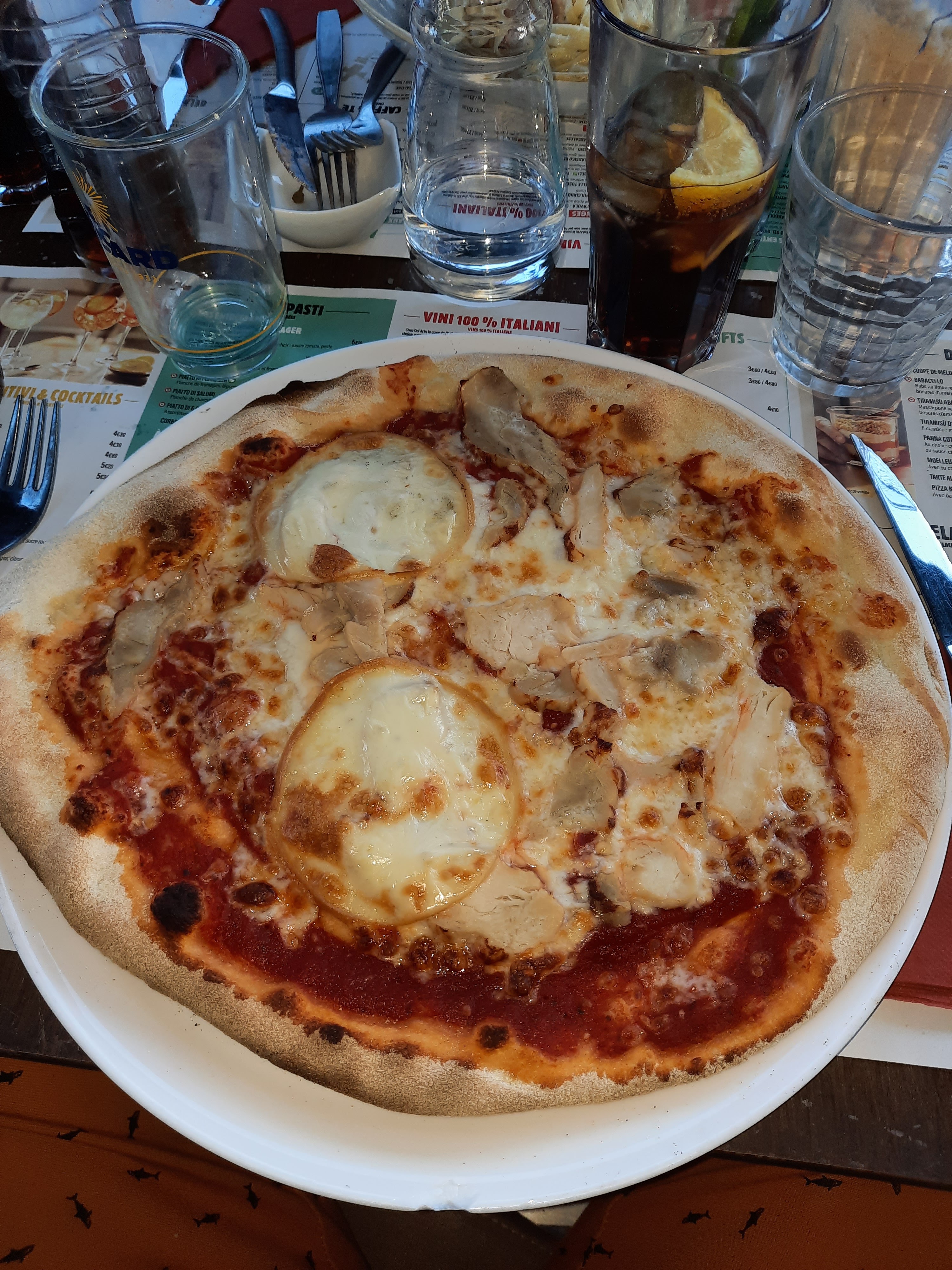 Décu. extrêmement déçu, la qualité a vraiment baissé. Pâte trop fine (un à deux millimètres ) donc trop cuite, cassante, et très dure à couper, mais par contre il faut reconnaitre quelle à un bon gout, ce qui sauve un peu les meubles. la quantité d'ingrédient est aux stricts minimums voir moins (pas généreuse du tout). Dans presque tous les restaurants il est proposé une carafe d'eau, ou donné en même temps que les menus, mais là rien. je le redis j'ai été très déçu.