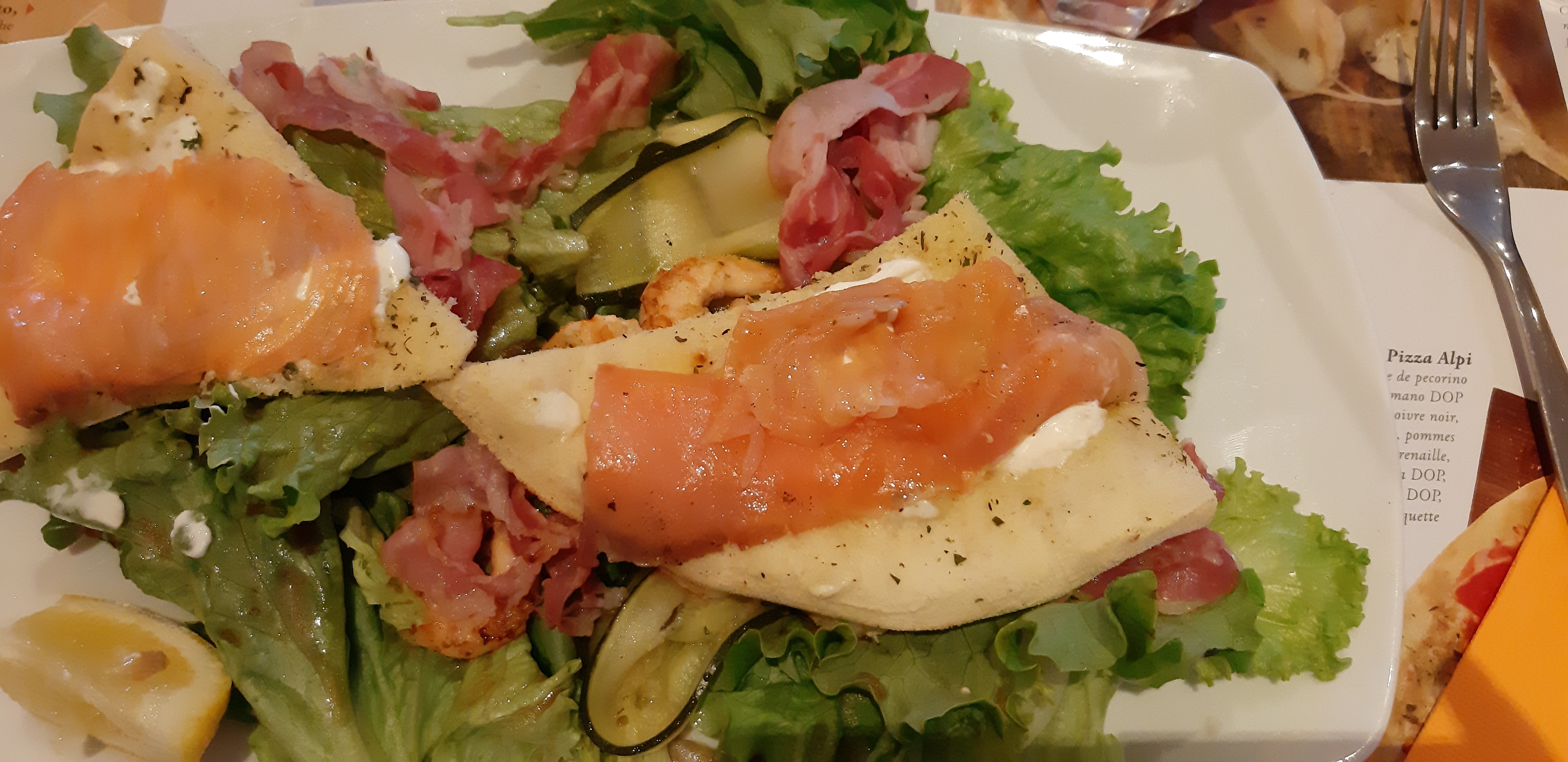 Salmone c'etait deliceuse. Le pain del arte sera mieux s’il est bonne cuit svp!