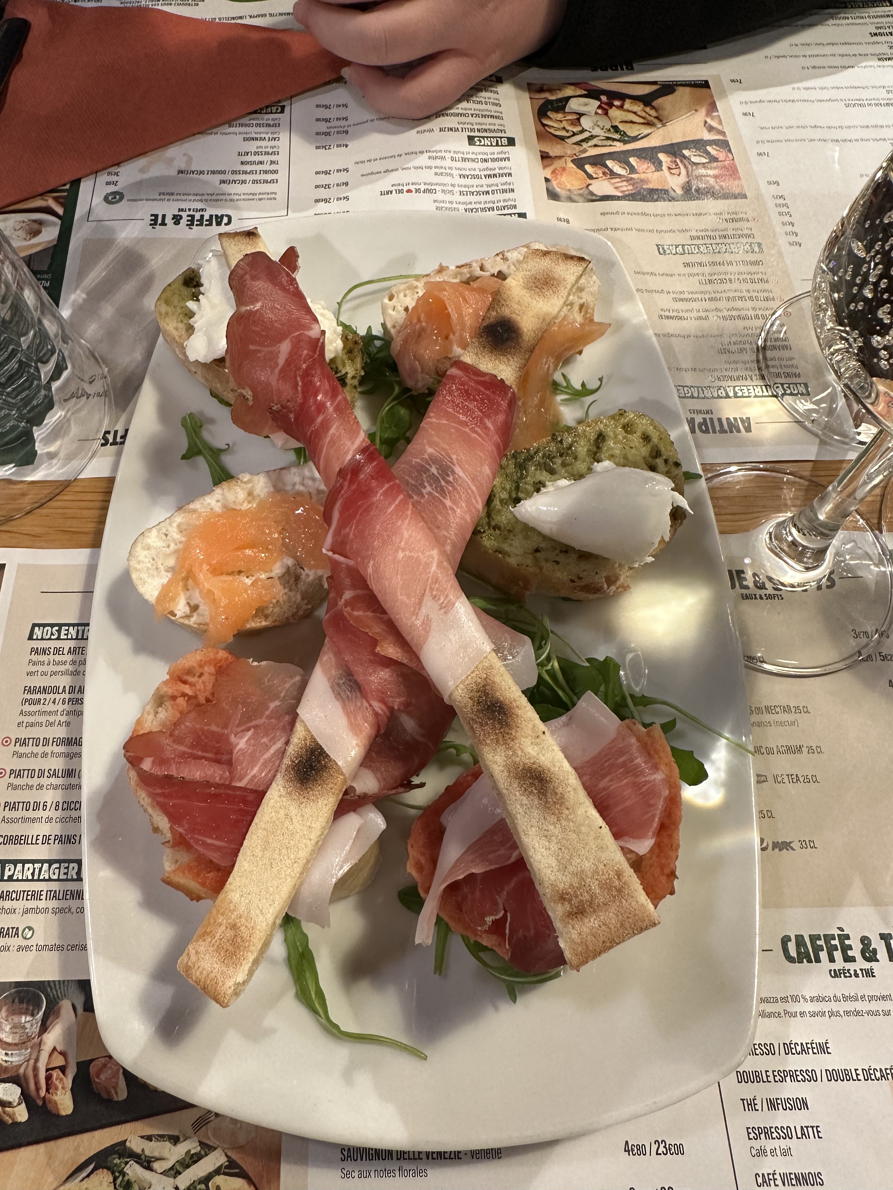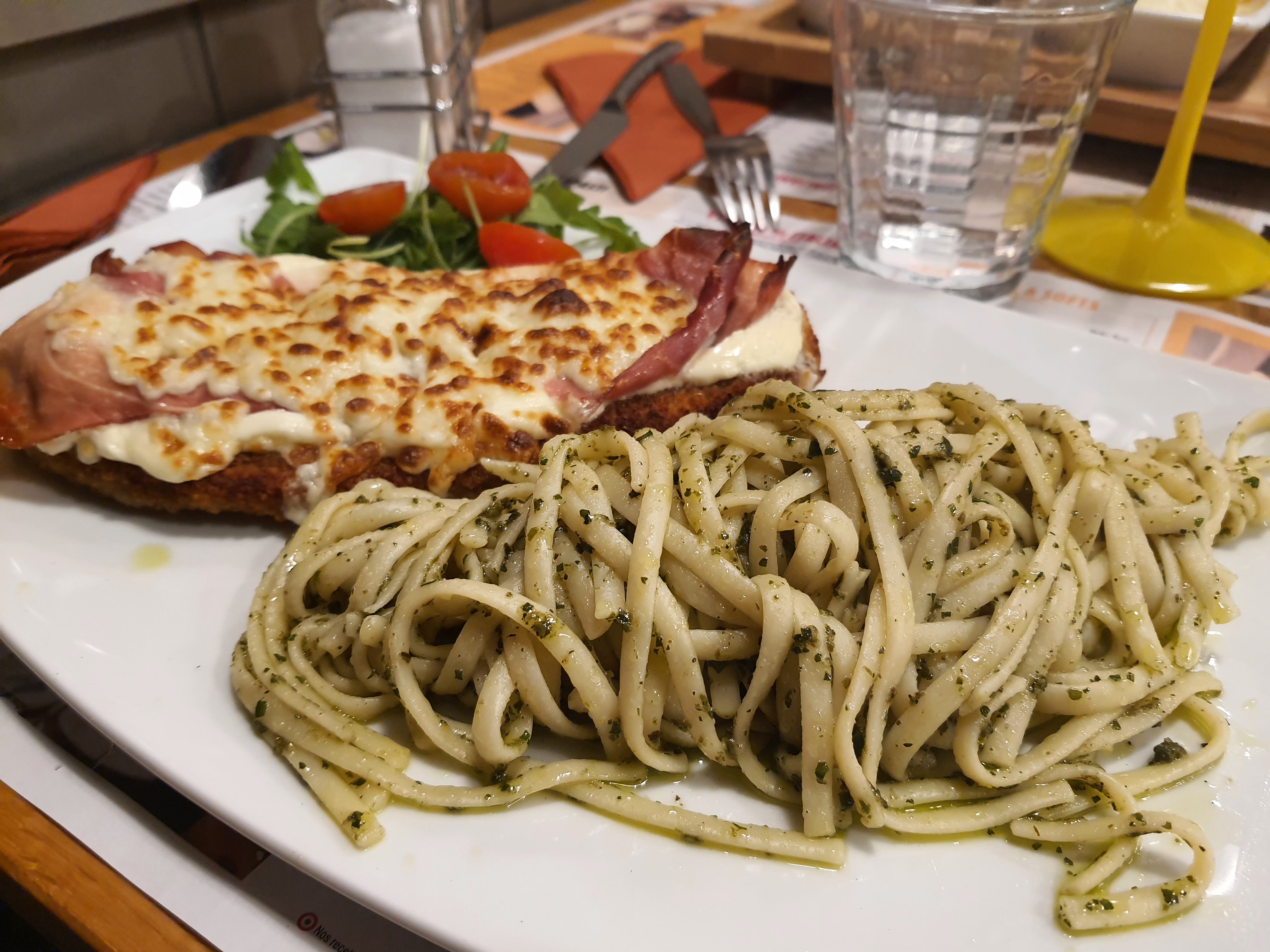Restaurant propre avec une jolie décoration et une bonne ambiance. La serveuse était super agréable et serviable. (Marine). Nous avons mangé une entrée Pain Del Arte à partager avec les 3 sauces, très bon. Une Pasta Degustazione avec 3 petits plats à déguster : ravioli poisson très bon, lasagne manque un petit peu de saveurs et ravioli au saumon délicieuses. Une Escalope Firenze délicieuse (crème, Spek). Manque du pignon de pin sur la sauce Pesto pour être excellente. Le tarif est adapté pour le service et la qualité Un régal cette soirée. Je recommande le vin blanc pétillant Moscato d'asti si vous aimez le sucré
