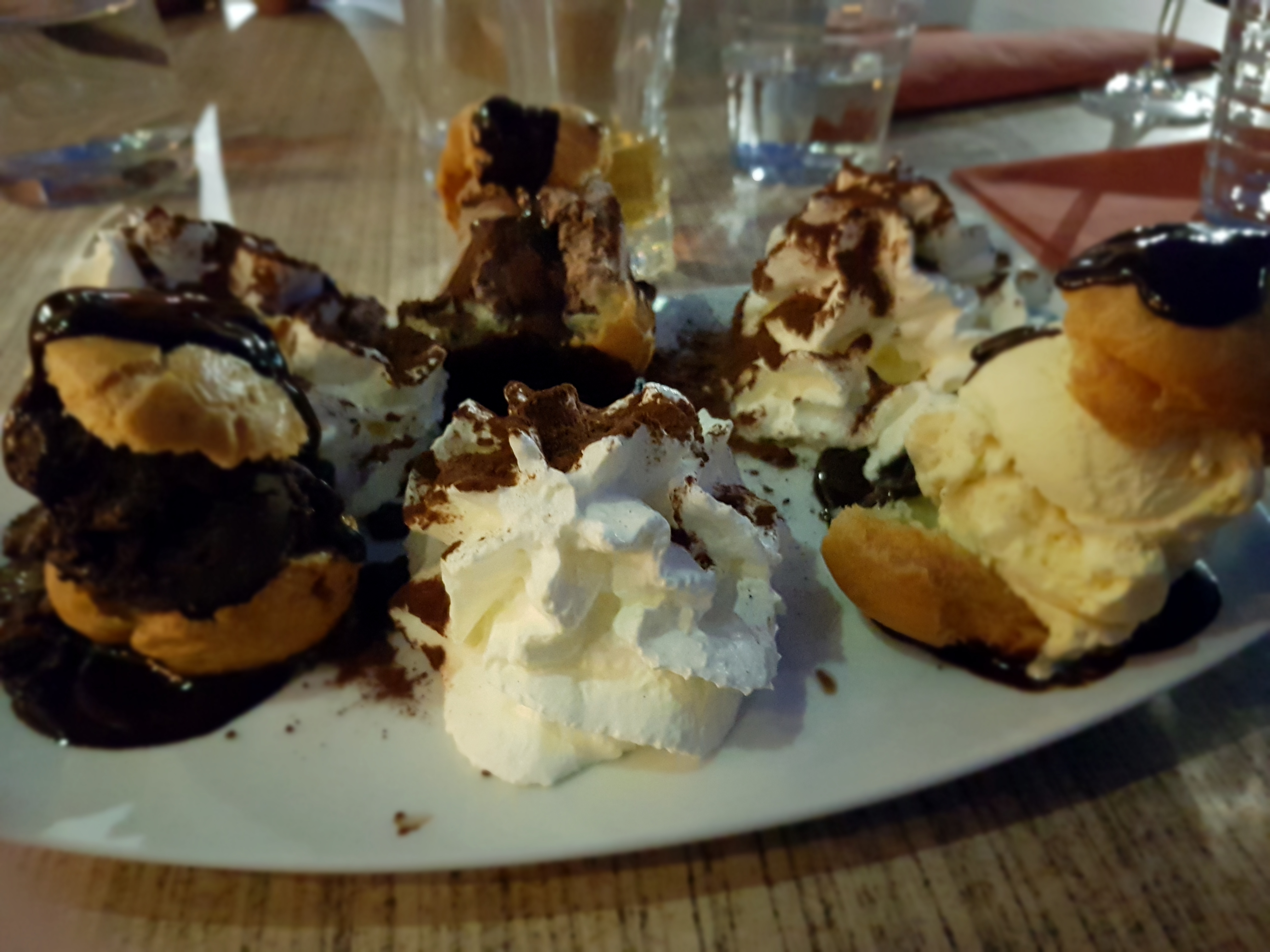 Pizza 5 fromage sans plus rien de fou niveau goût, dame blanche pareil . Que de l'industrielle. 3 serveuses différentes on reçois les pizzas avant l'apéro et pour finir j'ai jamais reçu ma carafe d'eau demander 3 fois...