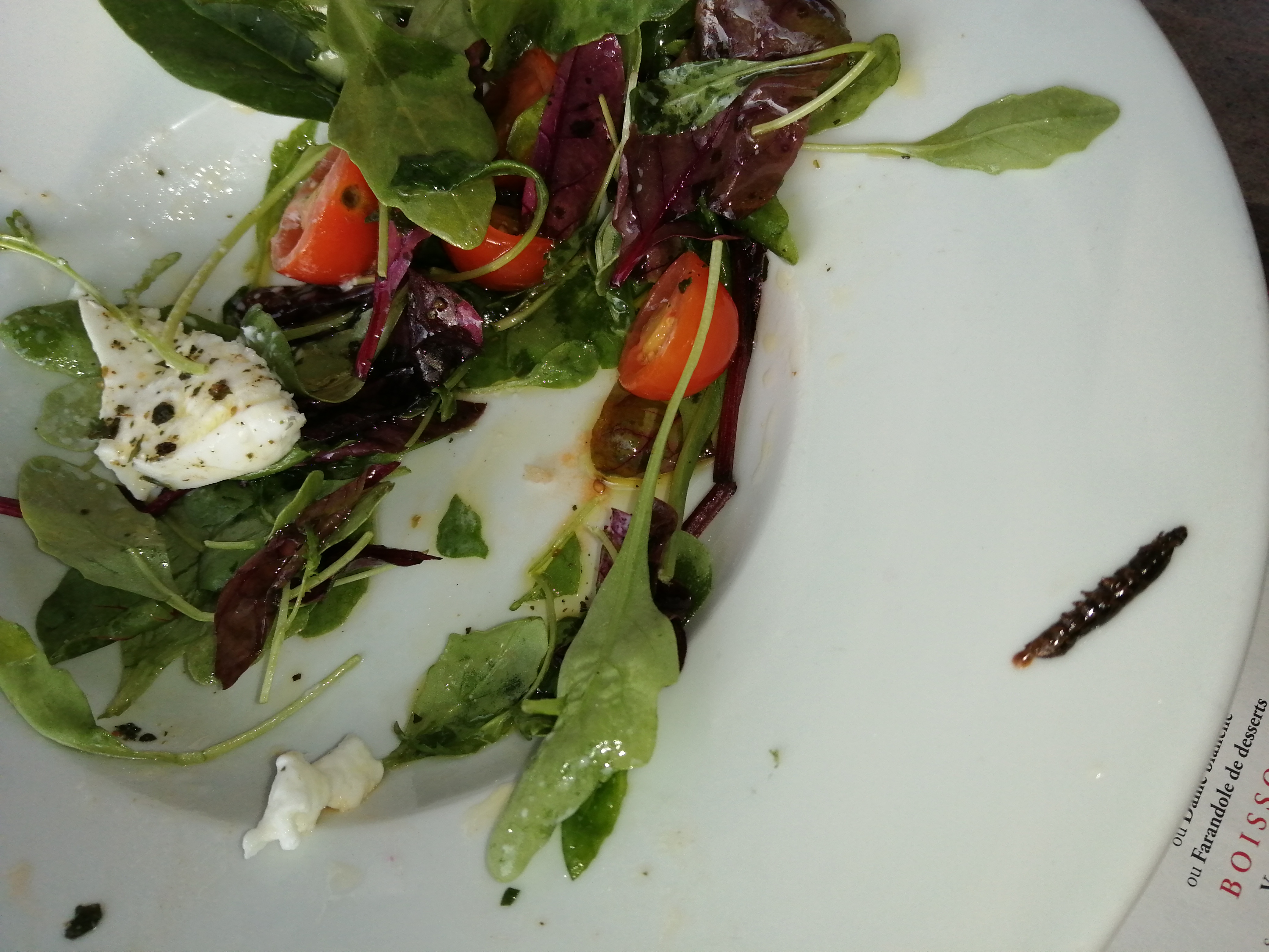 J'ai pris une pizza avec de la salade. La salade n'était pas fraîche du tout et il y avait des brins carrément pourris. J'ai mis côté et j'ai mangé ma pizza. En informant le serveur à la fin, aucune réaction à part un OK !!
