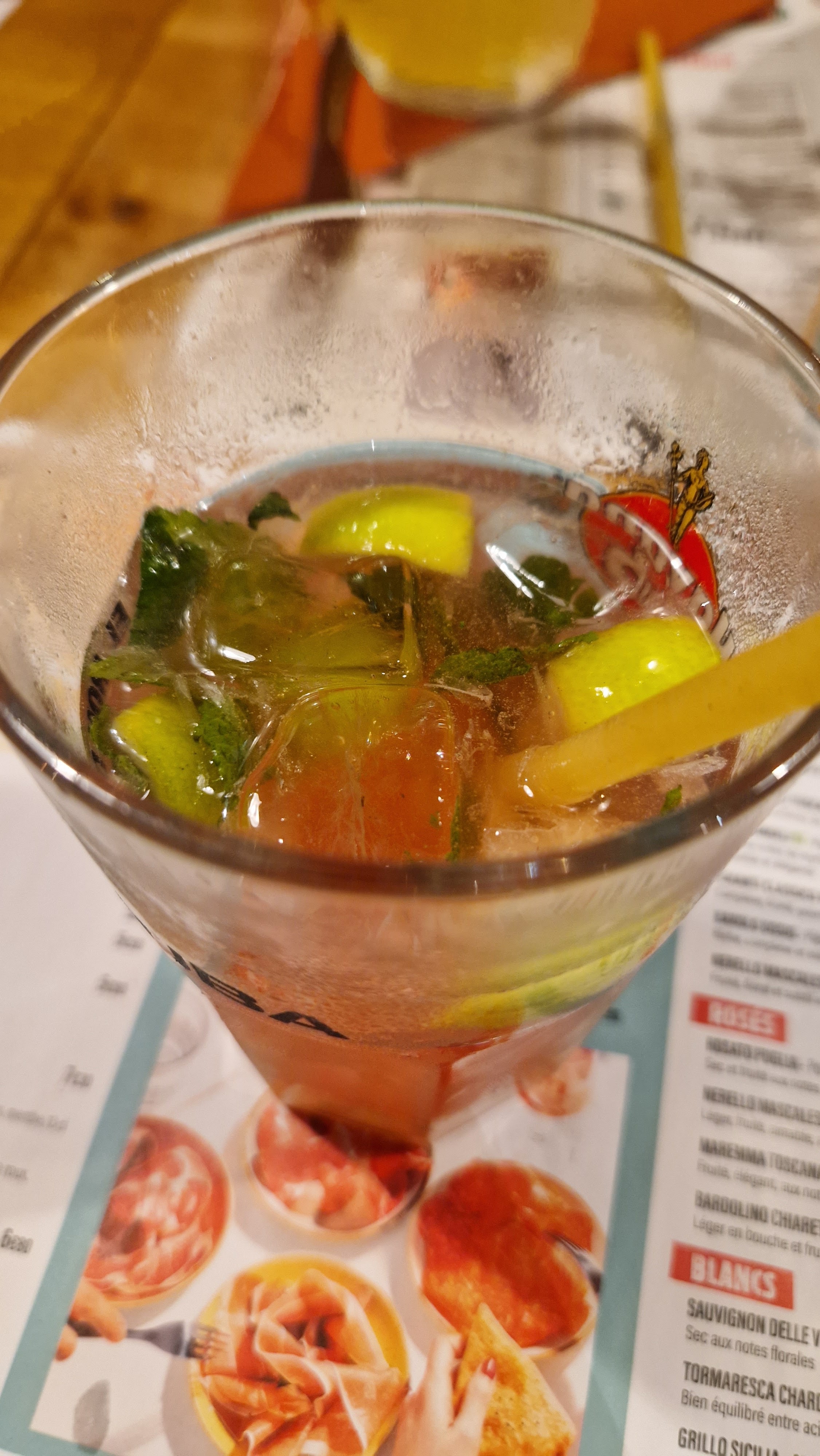 Une ambiance à l’italienne digne de ce nom, des serveurs très chaleureux, la nourriture et de très bonne et de qualité et j’insiste sur le très. ( PS Les cocktails sont grave bon et la bouteille de vin et excellente )
