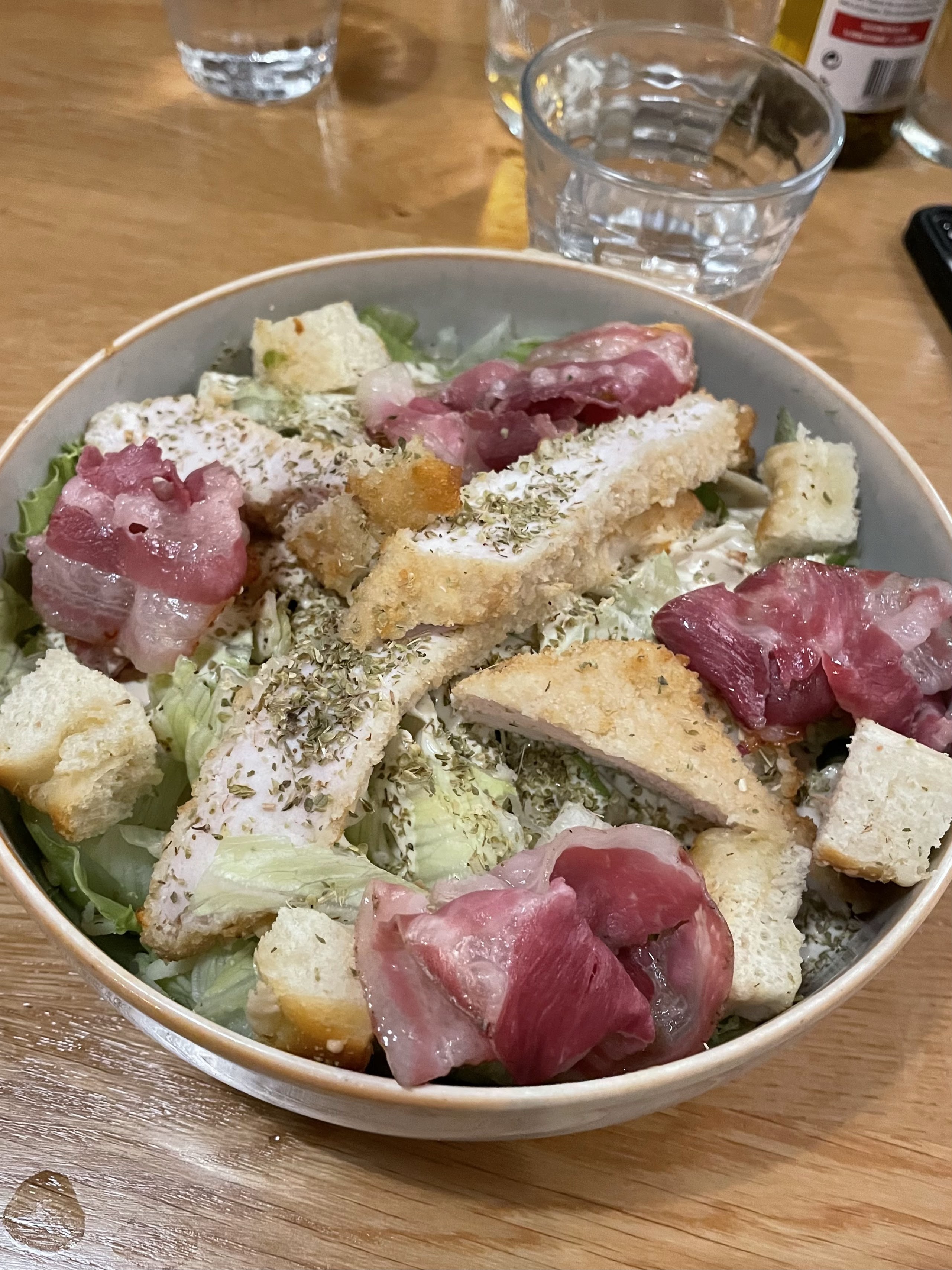 Super ambiance pour Halloween 🎃 Le personnel top 👍🏼 En revanche la salade cesar n’as rien d’extraordinaire il n’y que peu de poulet et d’ingrédients autres que de la salade verte . Les croûton de pain sont plutôt bon mais le rapport qualité prix n’est pas la … Le moelleux au chocolat est bon