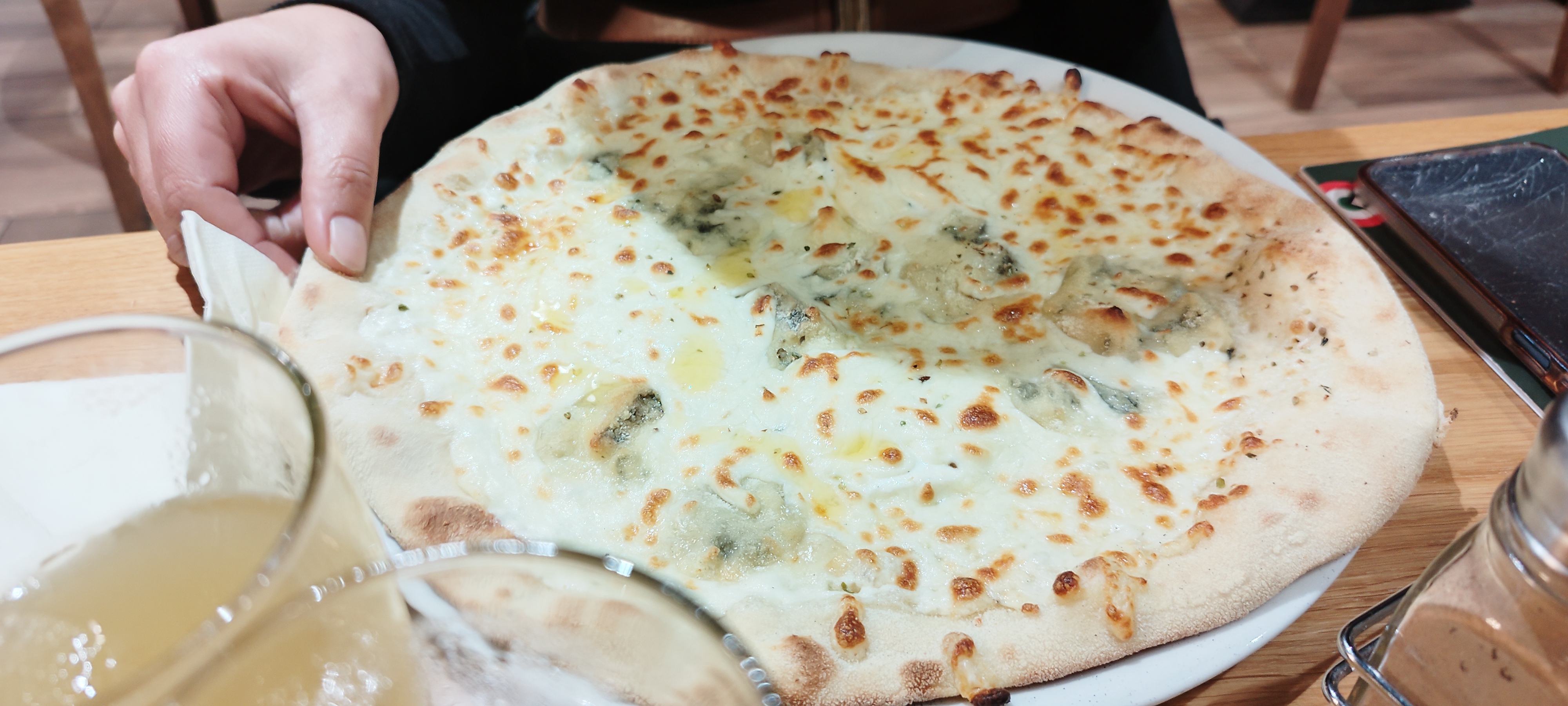 Les pizzas sont très bonnes, le service plutôt rapide au vu d'une salle pleine à craquer. Mention spéciale pour notre serveur Helyesse qui est professionnel, souriant, agréable et plein d'humour. Nous avons passé un très bon moment