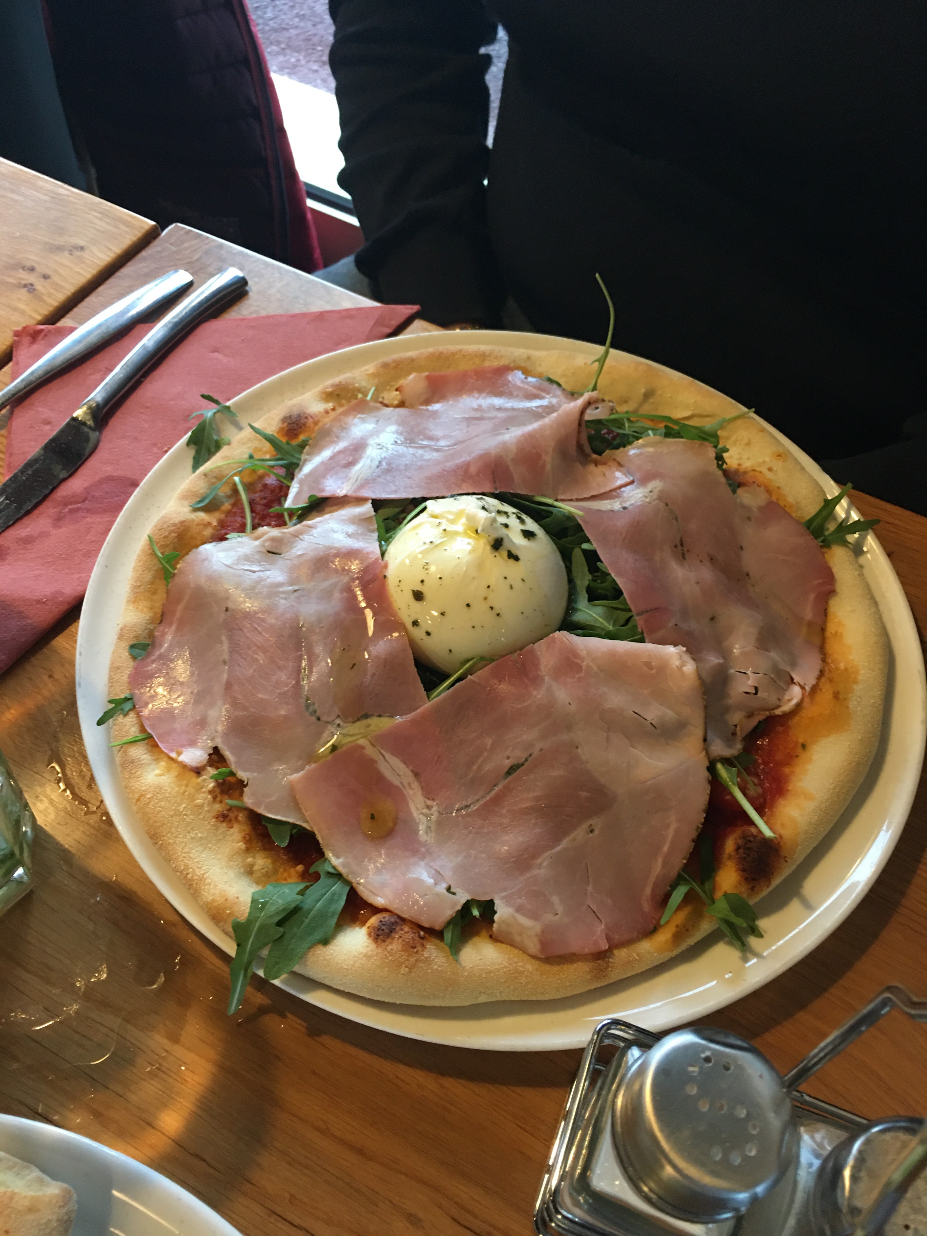 Des pizzas à la pâte extra, du vin italien pour accompagner tout ça, et un dessert français revisité à l'italienne...quelle belle idée ! Sans oublier une serveuse agréable et efficace.
