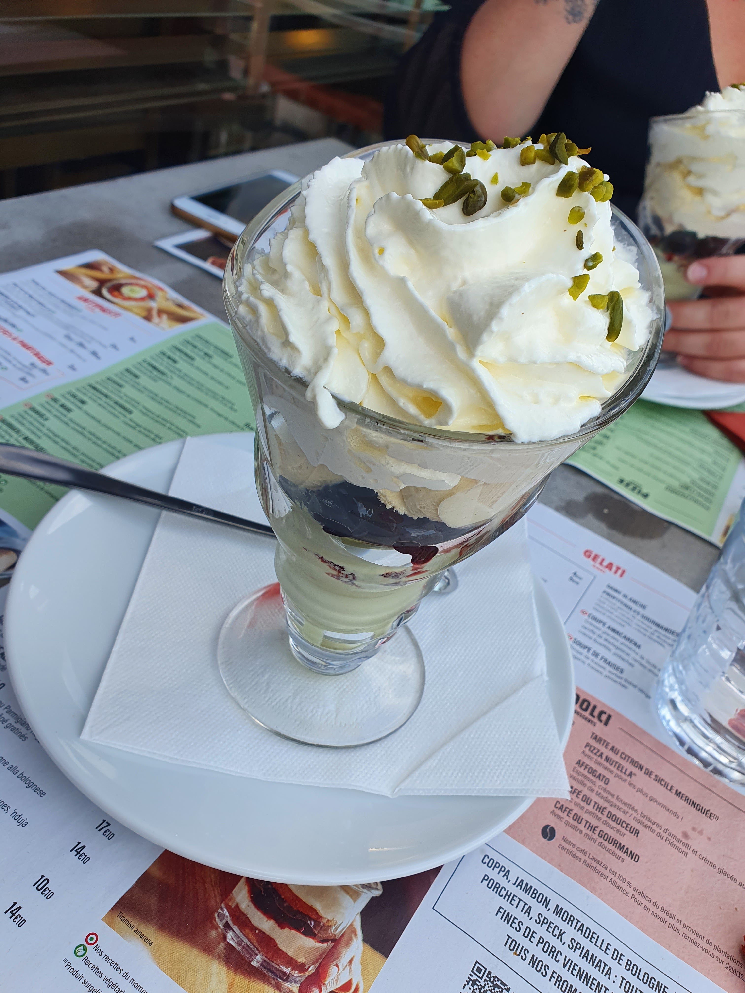 Les repas très, très bon ! Comme à chaque qu'on vient mais quand même un point négatif trop d'huile dans les pâtes au pestos. Pour le service j'ai l'habitude de venir donc je sais que c'est un bon service mais aujourd'hui je pense que nous avions un nouveau car il était un peu pommé comme par exemple qu'il oublie plusieurs fois qu'on voulait une carafe mais rien de très embêtant non plus. Et, l'ambiance ----> 👍
