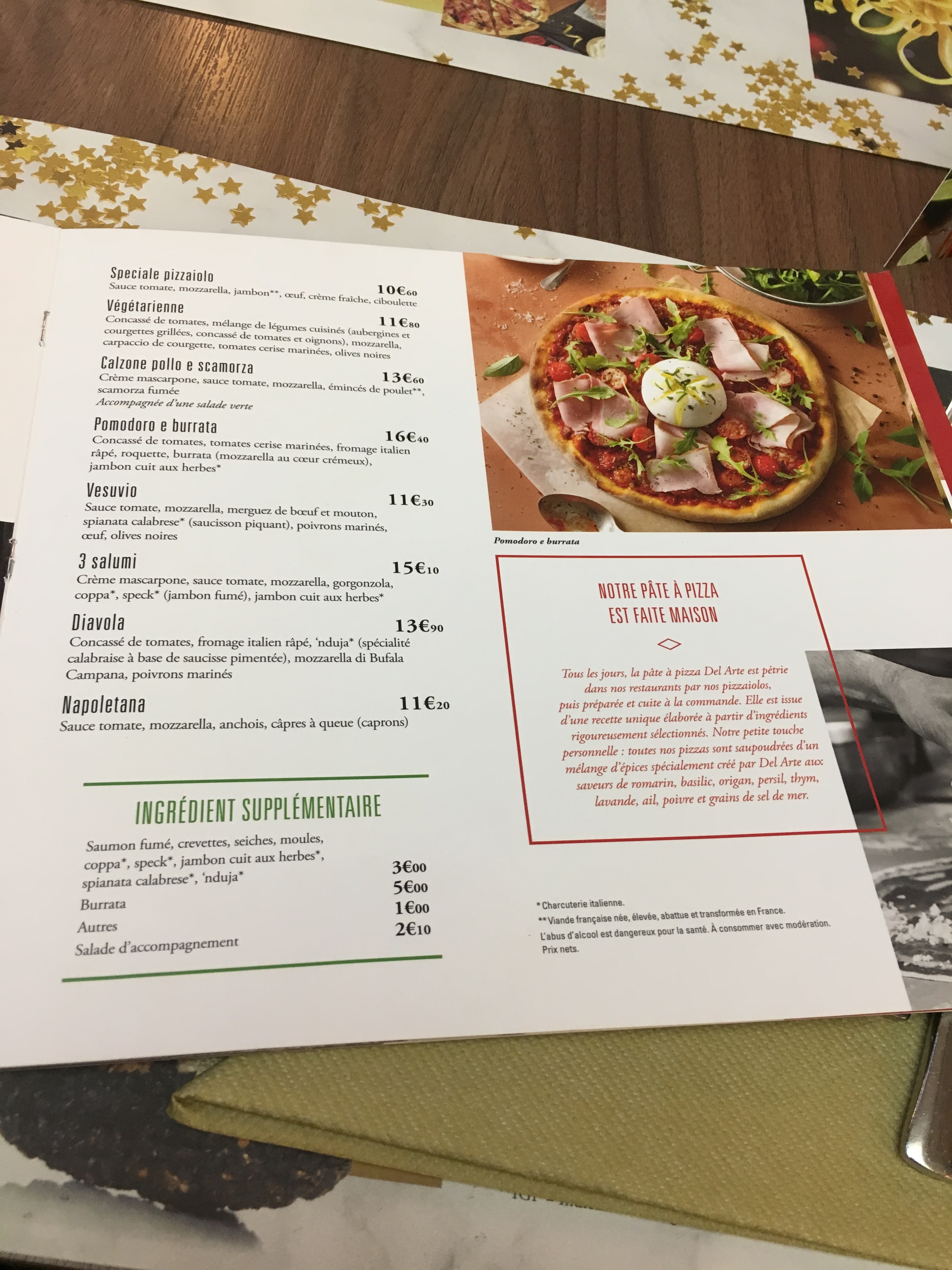 J'adorai Del Arte mais là ils ont changé les recettes, certainement pour ne pas augmenter trop les prix mais là qualité n'est plus au rdv, les Marguerites au saumon étaient mon plat préféré mais la semaine dernière la sauce n'est pas terrible, ça doit être de la crème très liquide premier prix et ce n'est vraiment pas terrible, pareil pour mon mari se qui a pris une pizza vesuvio, elle n'était pas comme d'habitude, j'ai testé les petits choux en dessert, très mauvais, pâte molle et insipide.... Quel dommage, il vaudrait mieux ne pas faire les 10% avec la carte, mais rester sur les recettes d'avant quitte à augmenter un peu le prix !!