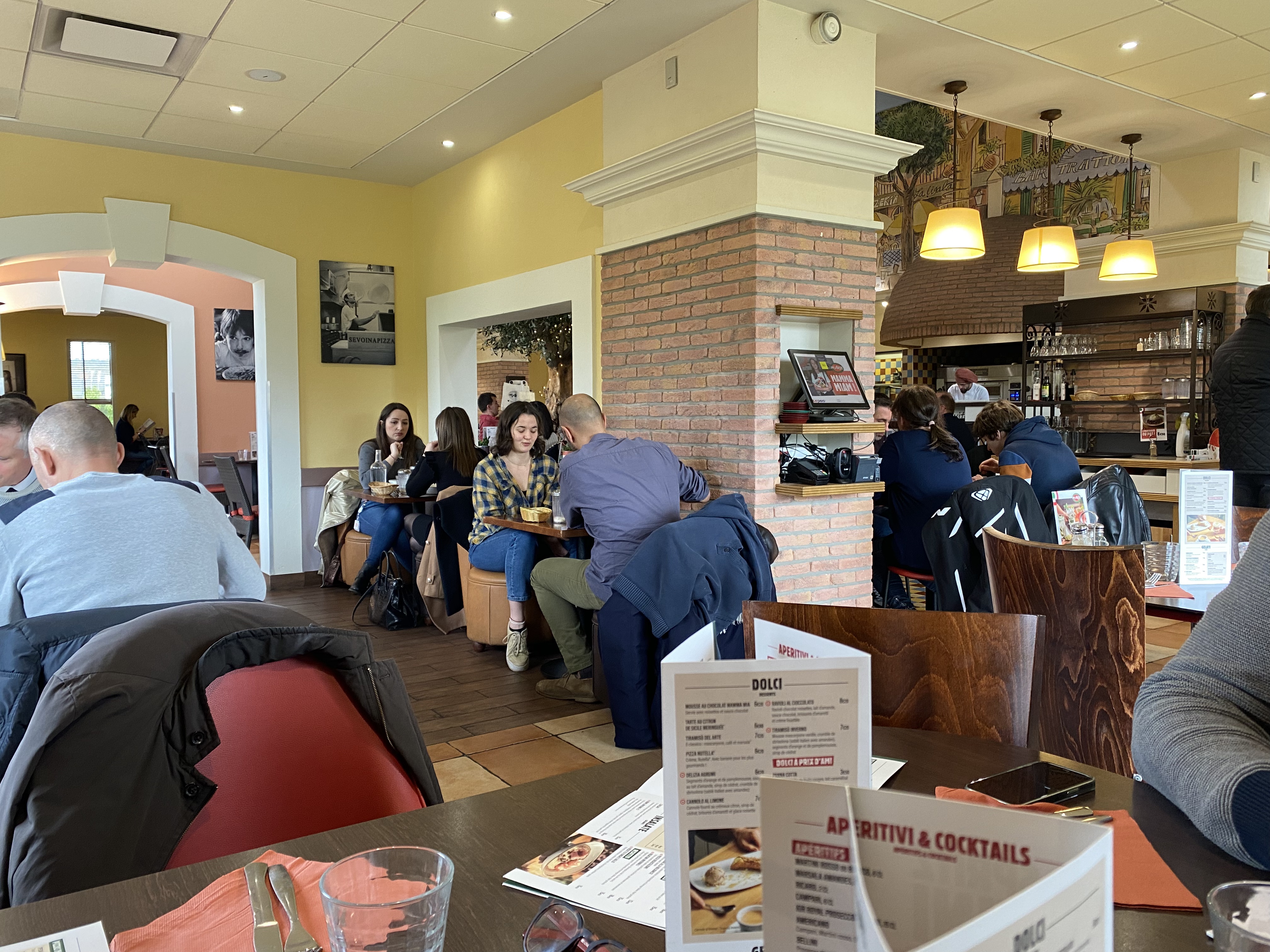Un restaurant au cadre très sympathique mais malheureusement il n'y a que cela ! Les plats sont bons mais pas à la hauteur de la gastronomie italienne quel dommage ! Et les desserts pas envoyé en même temps, il a fallu qu'au bout de 10 min qu'on se déplace pour aller le chercher afin de savourer nos desserts en même temps 🕘 Le tiramisu trop liquide et pas assez sucré 😔😔une déception. Au moment du passage à la caisse, nous faisons part de notre ressenti négatif, la seule réponse formulée, désolé il y a beaucoup de nouveaux.