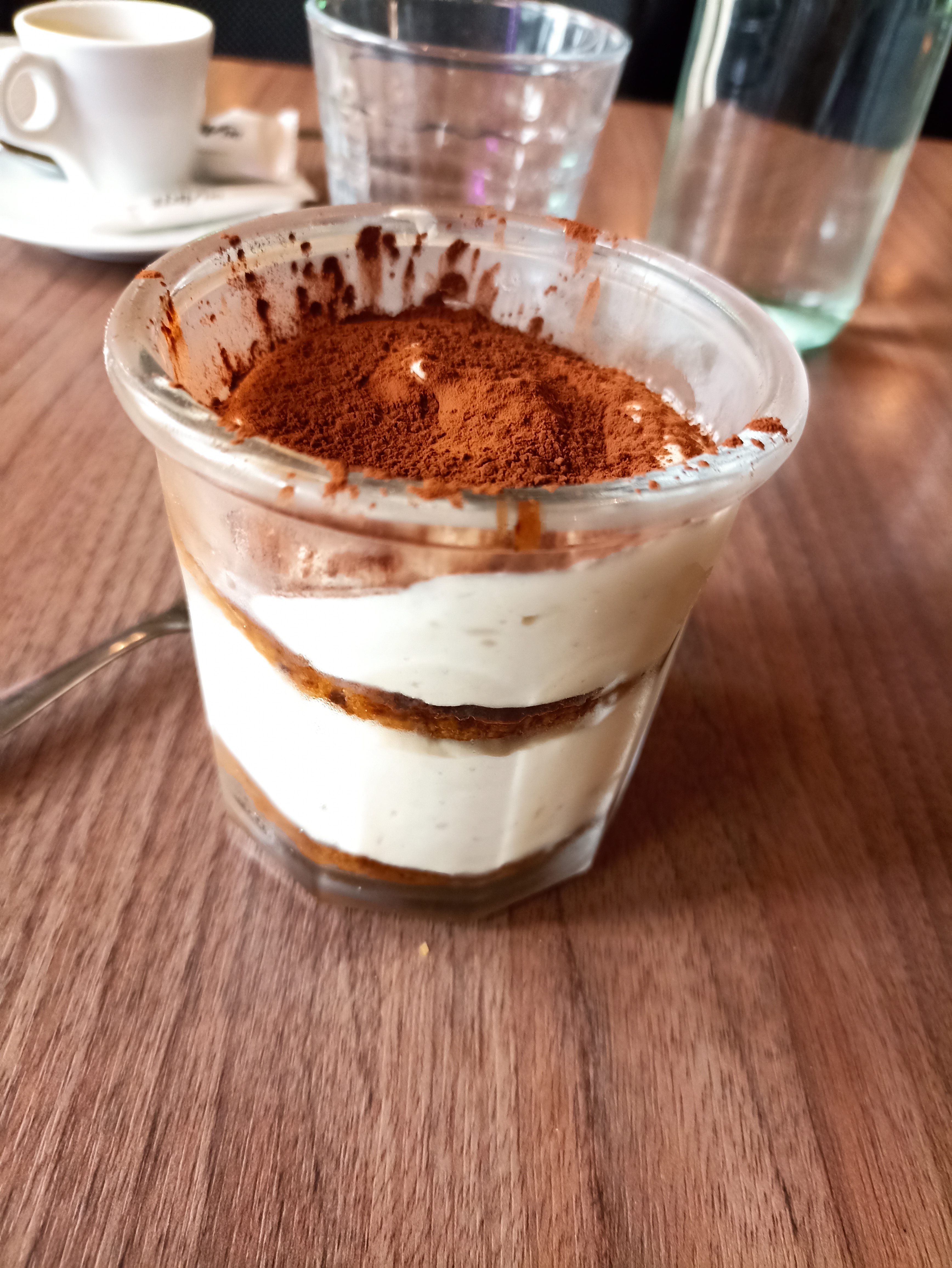 Salade ceasar qui n'a rien exceptionnel, ça sentait les ingrédients tout prêts à peine sortis du frigo et la salade verte était mal lavée. Pour le dessert, un tiramisu. Enfin c'est ce que j'ai commandé mais le serveur est revenu 5 mins plus tard pour me dire qu'il n'en avait plus... Il nous ont au moins offert 1 café (c'est déjà ça)