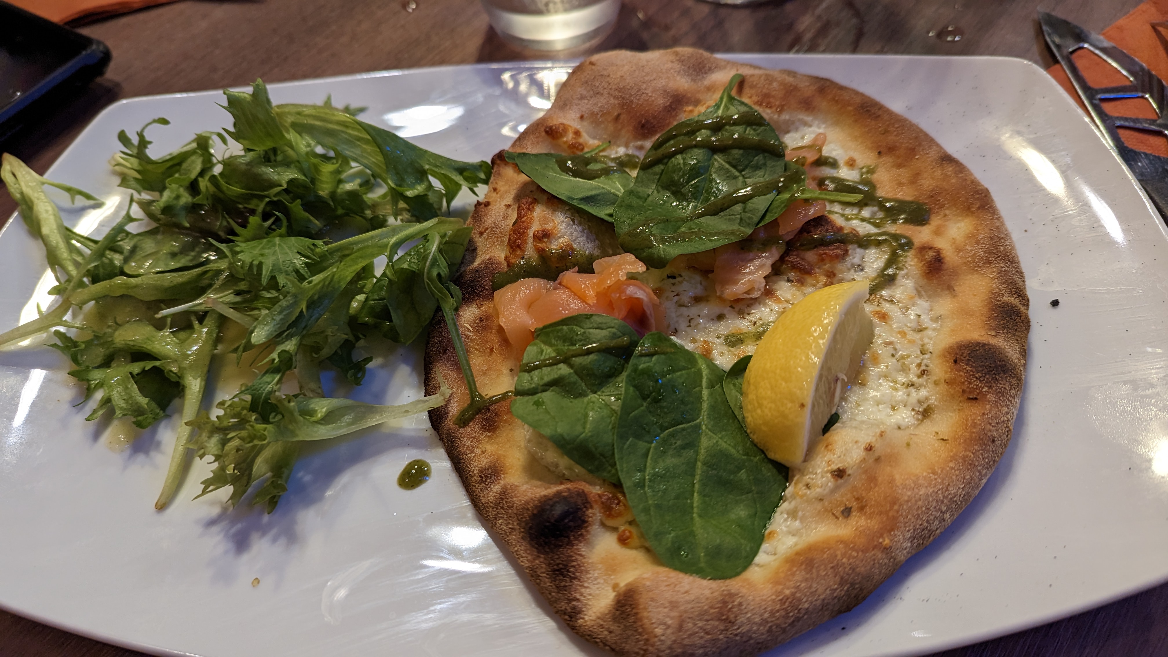 Dommage de payer 14.90 une petite pizza avec une fois les deux feuilles de salade dessus.. une fois enlevées juste deux petits bouts de saumon qui se baladent je m'attendais a plus de générosité ! En revanche les raviolis aux chocolat étaient une découverte et très bons et pr le coup généreux , d'où ma note mitigée.