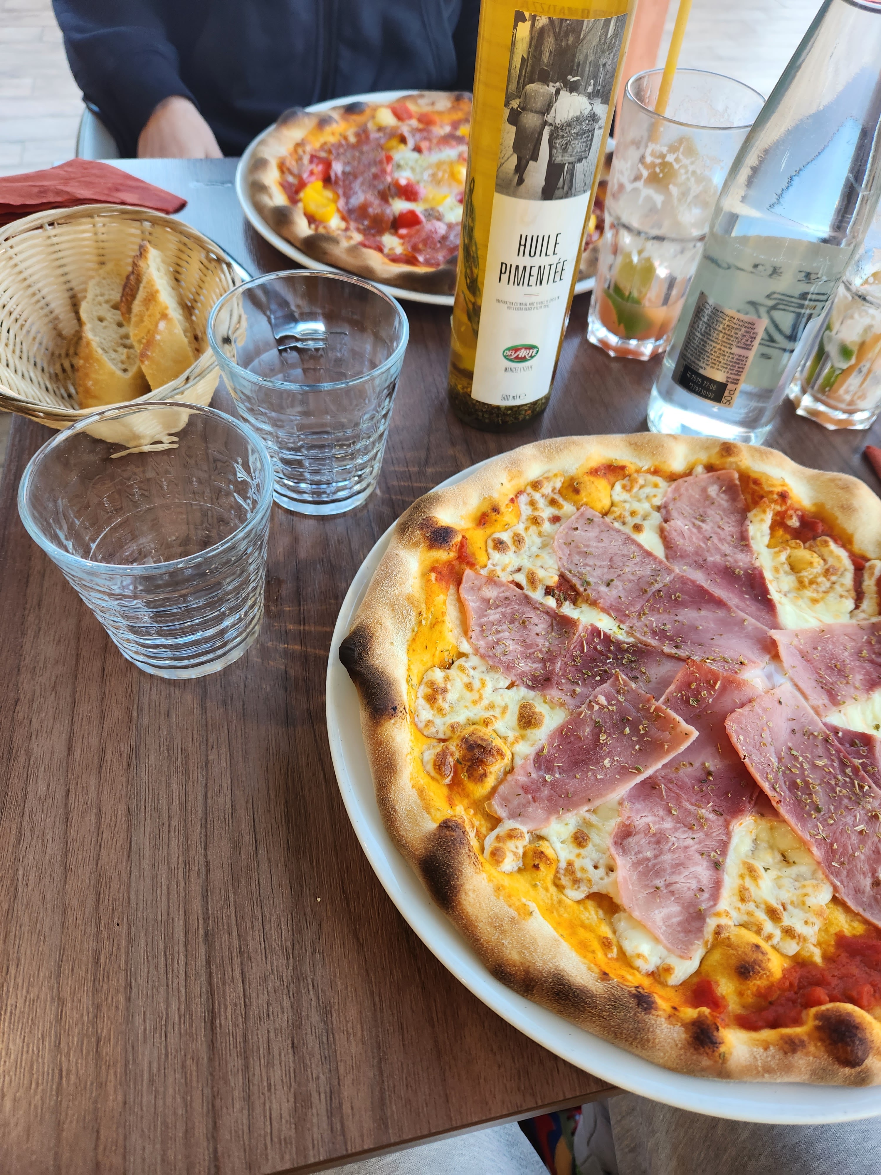 Accueil sympathique, pâtes et pizza bonnes par contre la quantité n'y est pas. Pizza Régina avec 4 ou 5 morceaux de champignons, une demi tranche de jambon et un peu de mozzarella et pas assez cuite. Pâtes pareil quantité très juste. Faut pas être un gros mangeur.