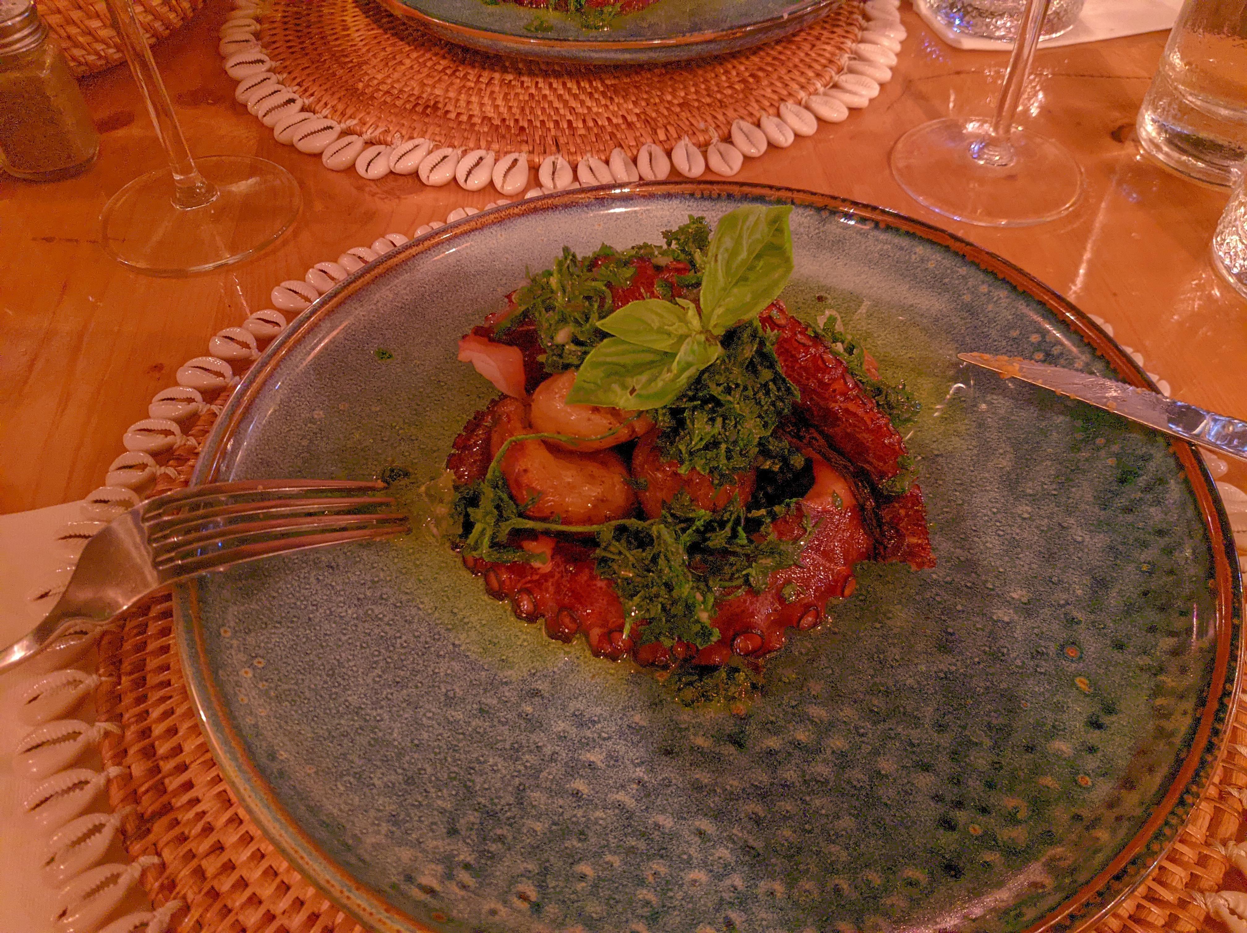 Un poulpe savamment cuisiné qui est la spécialité du restaurant. De l'entrée au dessert, en passant par un vin Corse délicieusement conseillé, tout y est pour passer ici un bon moment. De vrais professionnels...