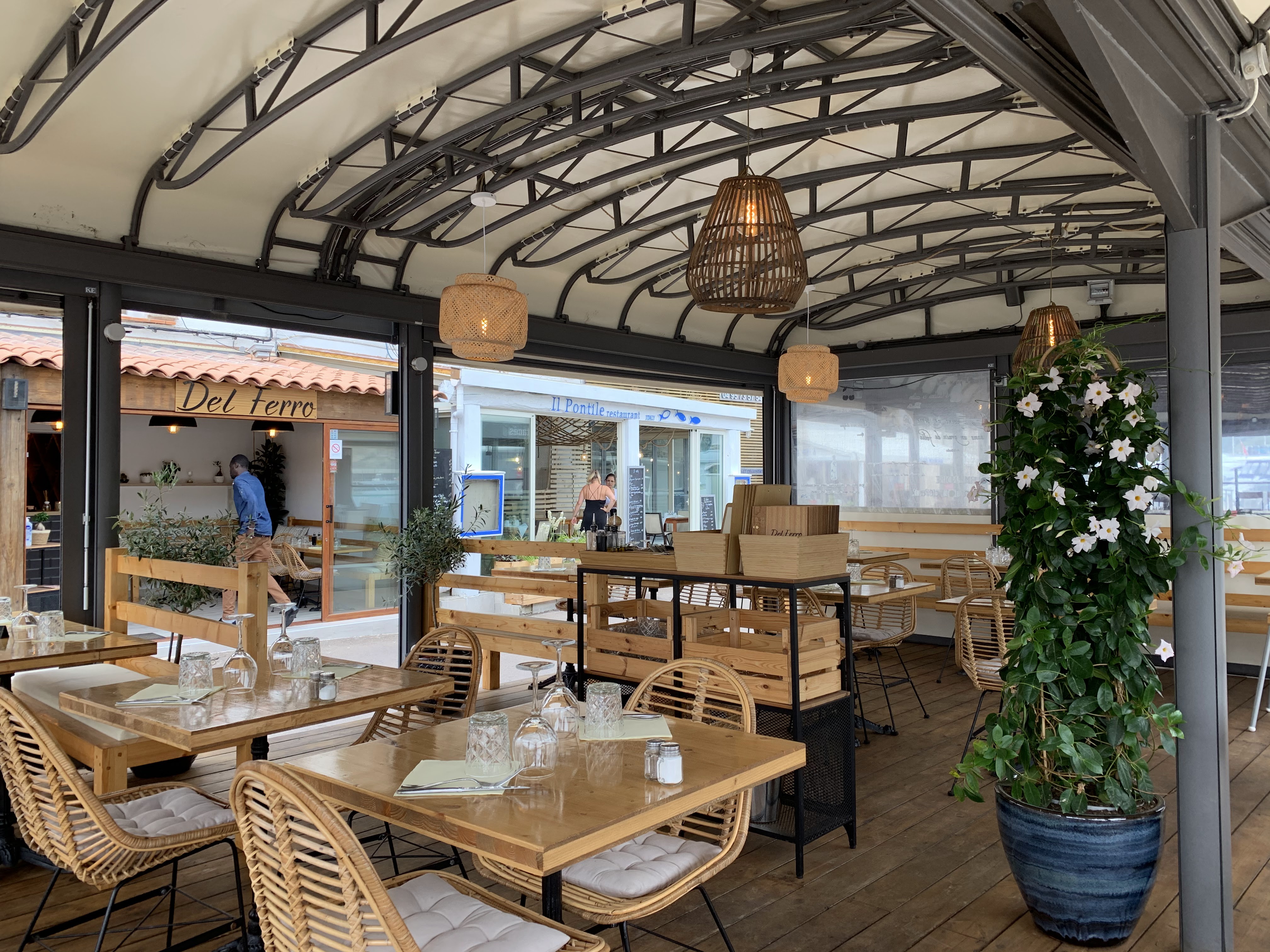 Nous y avons dîné deux fois car ce restaurant est vraiment de qualité. Accueil aimable et dynamique, service rapide et souriant. Terrasse donnant sur le port ; un bémol le premier soir car notre table de deux était vraiment trop proche de nos voisins : manque d'intimité. Le loup grillé est très bon, assiette très bien présentée (voir photo) Les cocktails sont bons (voir photo) Burger Del Ferro et pâtes aux gambas copieux et très goûteux (voir photos). Très bon restaurant sur le port à recommander.
