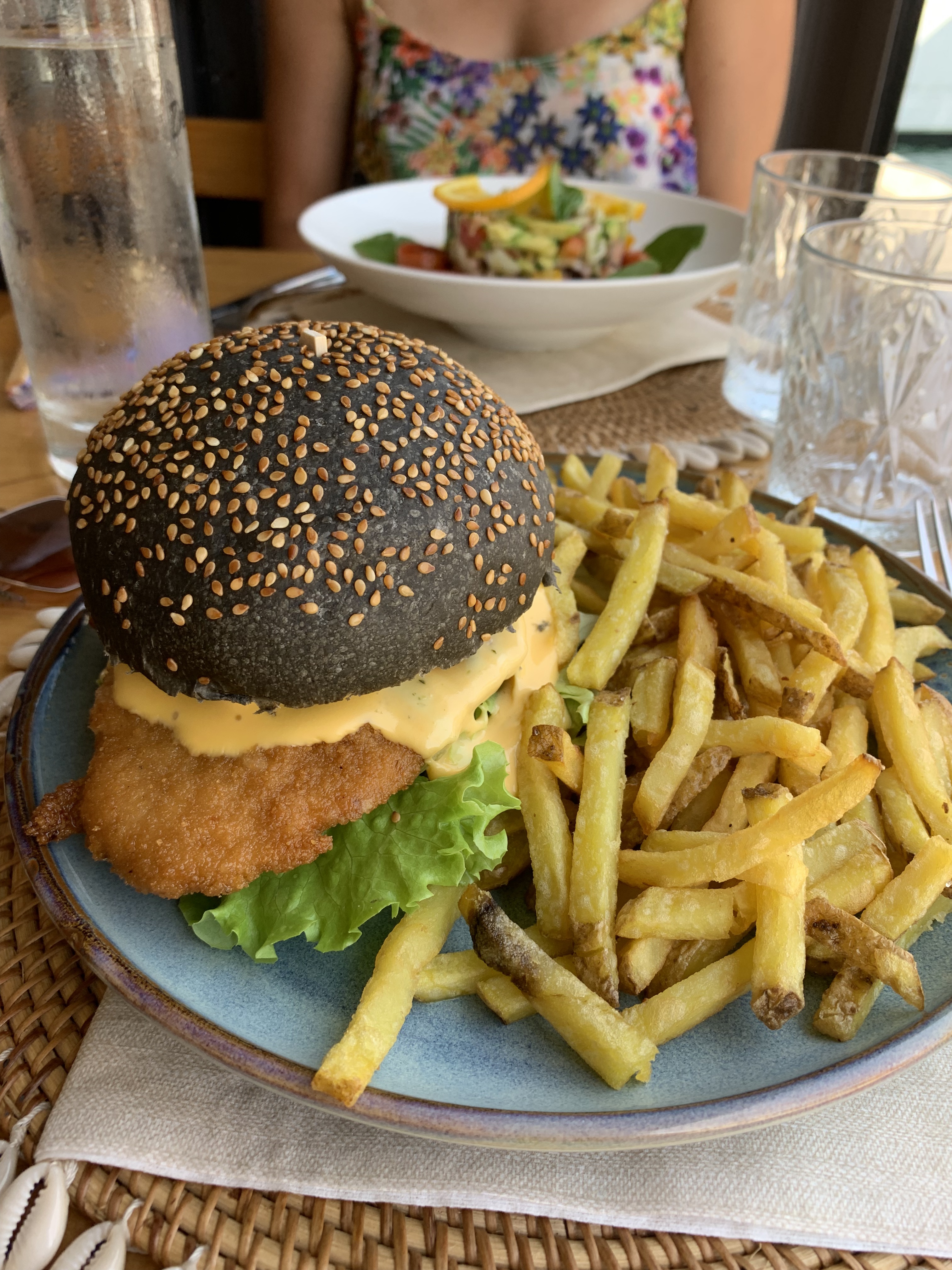 Très bon service, rapide et aimable. Les plats étaient absolument délicieux. Le burger au pain noir était une première pour moi, et j'ai adoré. Tous les ingrédients étaient de qualité et la viande semblait elle aussi au top. Frites très bonnes également. Tout cela pour un prix tout à fait correct pour la zone. En plus de ça on a une petite vue sur les jolis bateaux aux alentours, et l'endroit est confortable.