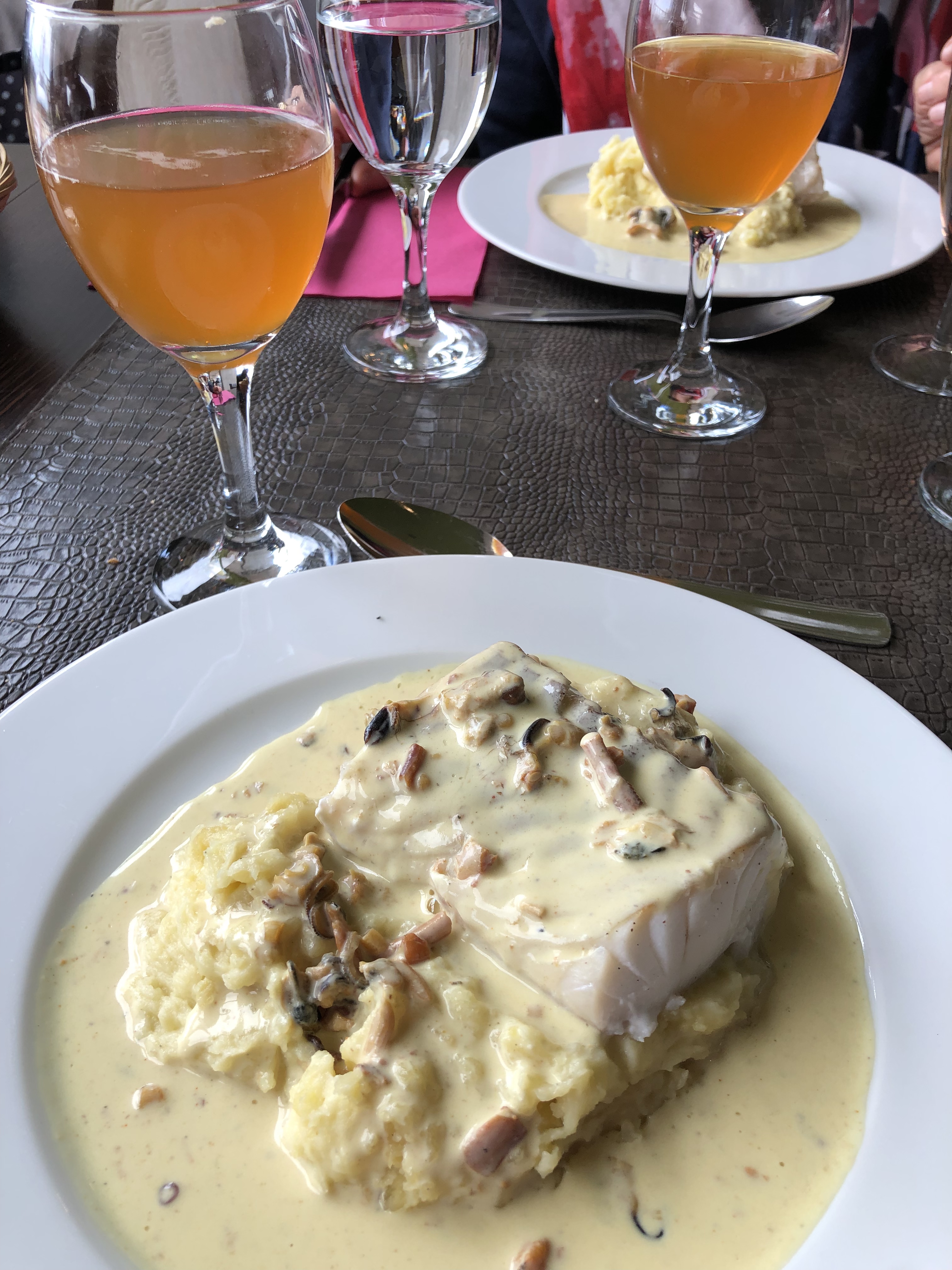 Cadre agréable, personnel souriant mais plat sans saveur ni recherche (d’os de cabillaud servir sur de la purée de pommes de terre ) et poisson trop cuit