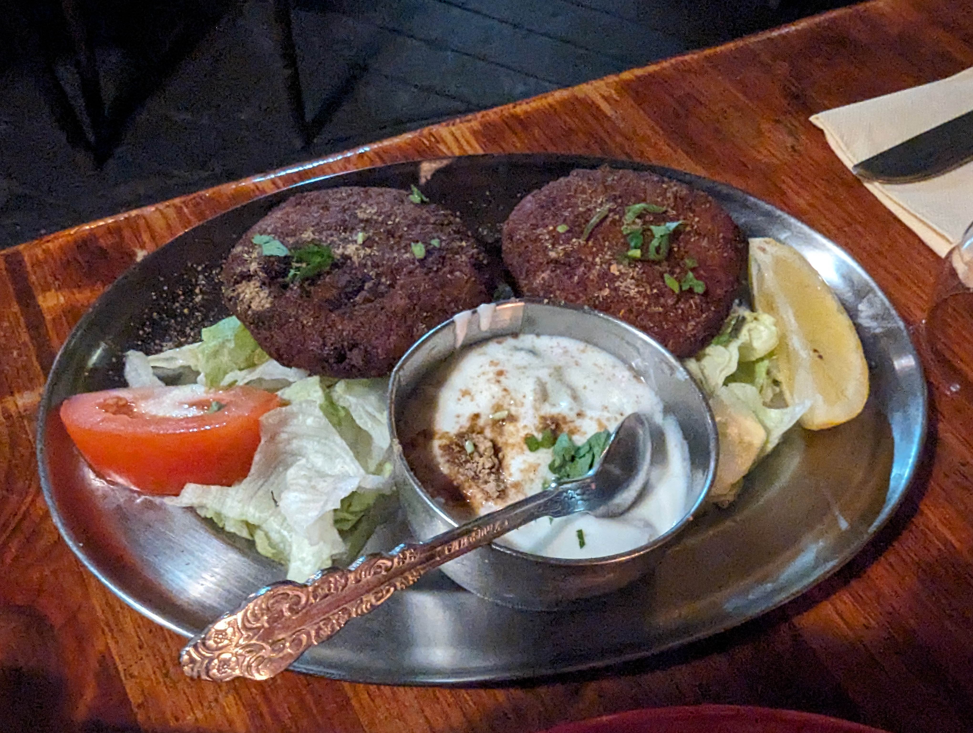 En plein milieu de la vieille ville, celui-ci n'a pas l'air trop grand ou trop chic de l'extérieur, mais il possède de très beaux intérieurs et décors anciens. La nourriture était bonne et le service était rapide. Les gens qui dirigeaient le restaurant étaient également très serviables et sympathiques. À votre arrivée, vous obtenez un combo chutney et papad qui est cool. Le curry de poulet et de légumes en valait la peine. La taille des portions était suffisante pour une personne par plat.
