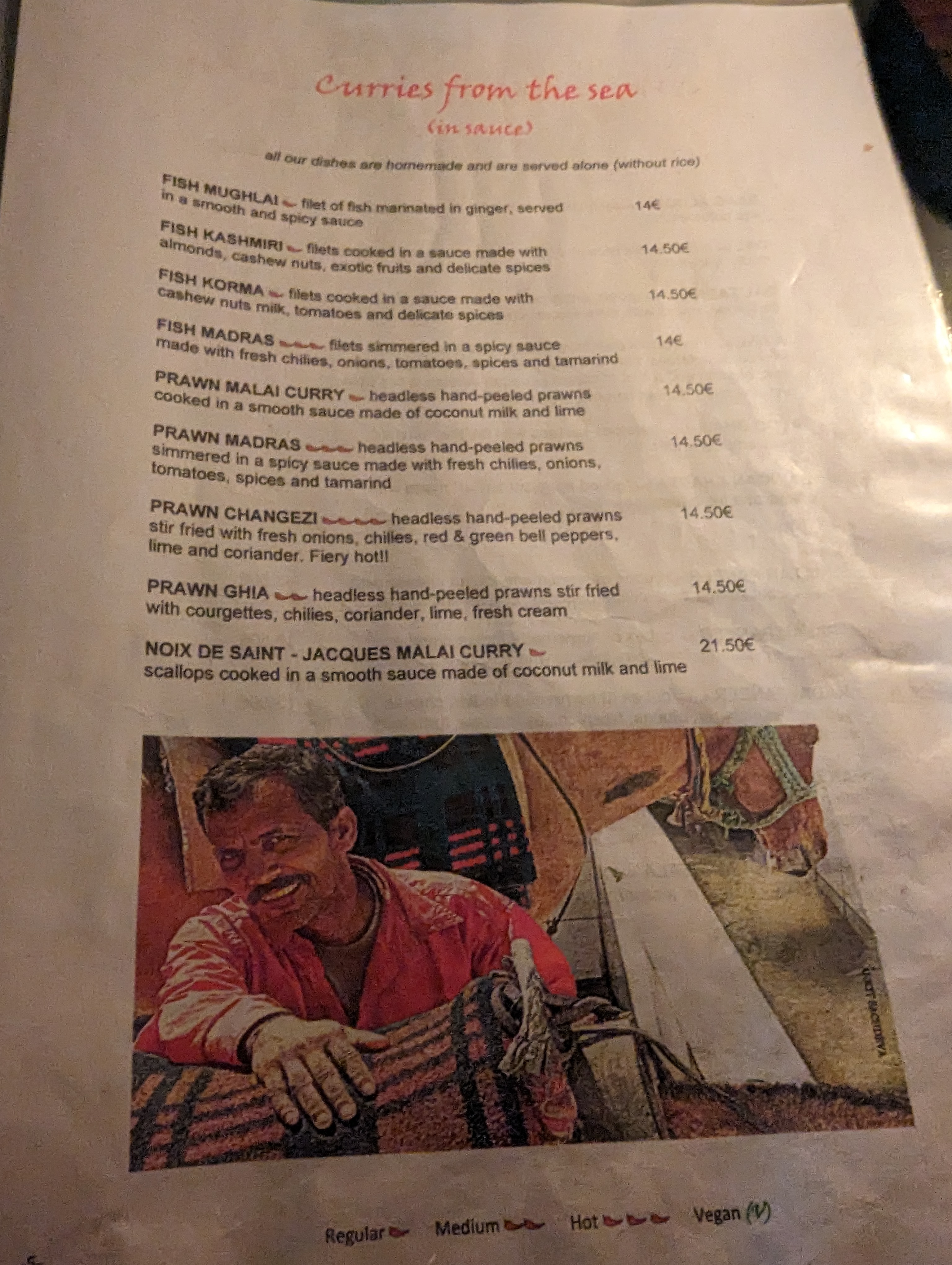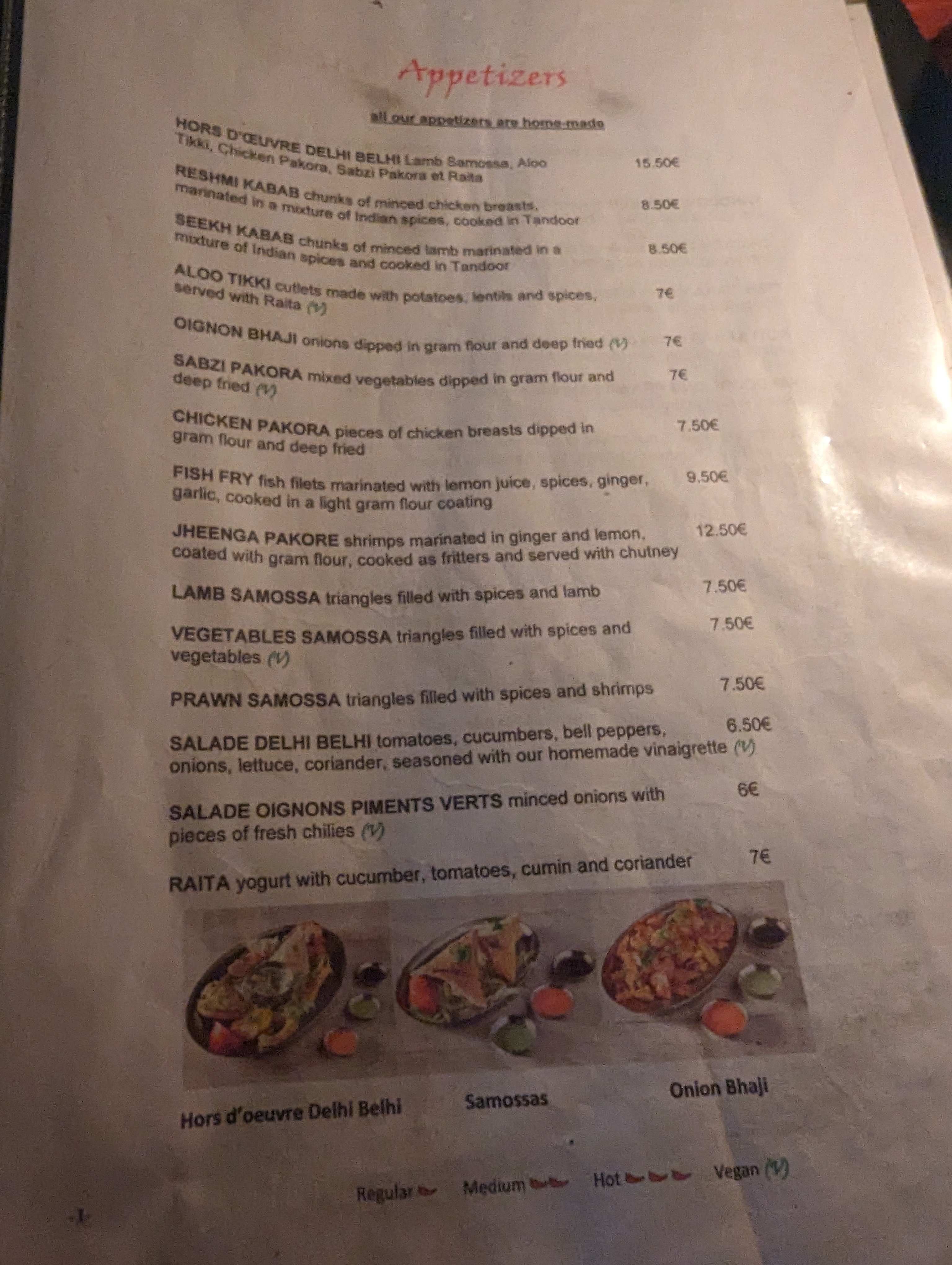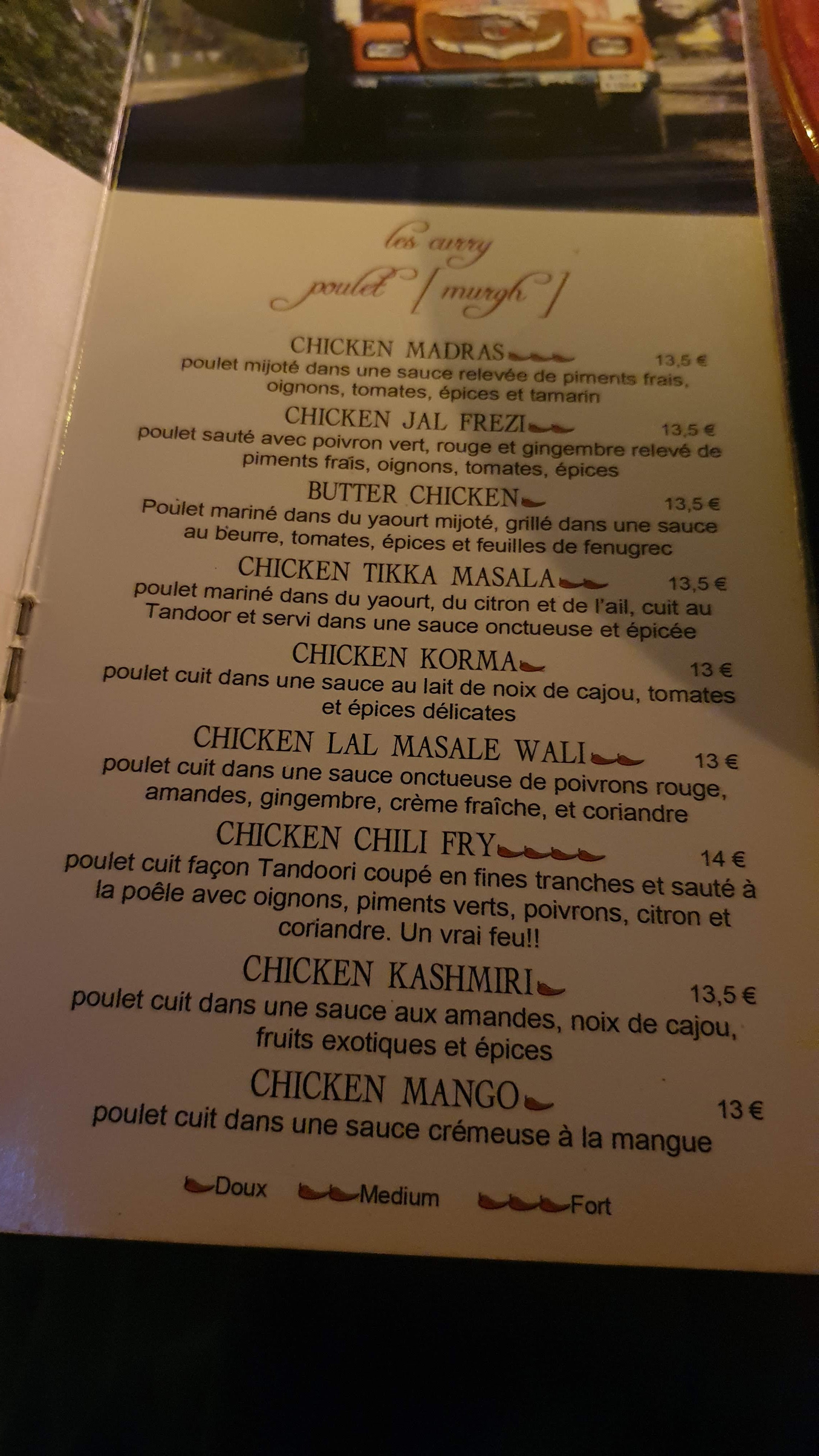 A chaque fois que je suis venu, j'ai pris un plat plus épicé, je suis ravi d'avour atteint le dernier échelon. Je recommande ce restaurant indien tant pour la diversité des plats que pour les différents arômes et épices proposés. Le service est toujours souriant, on est dépaysé le temps d' un repas. Merci.