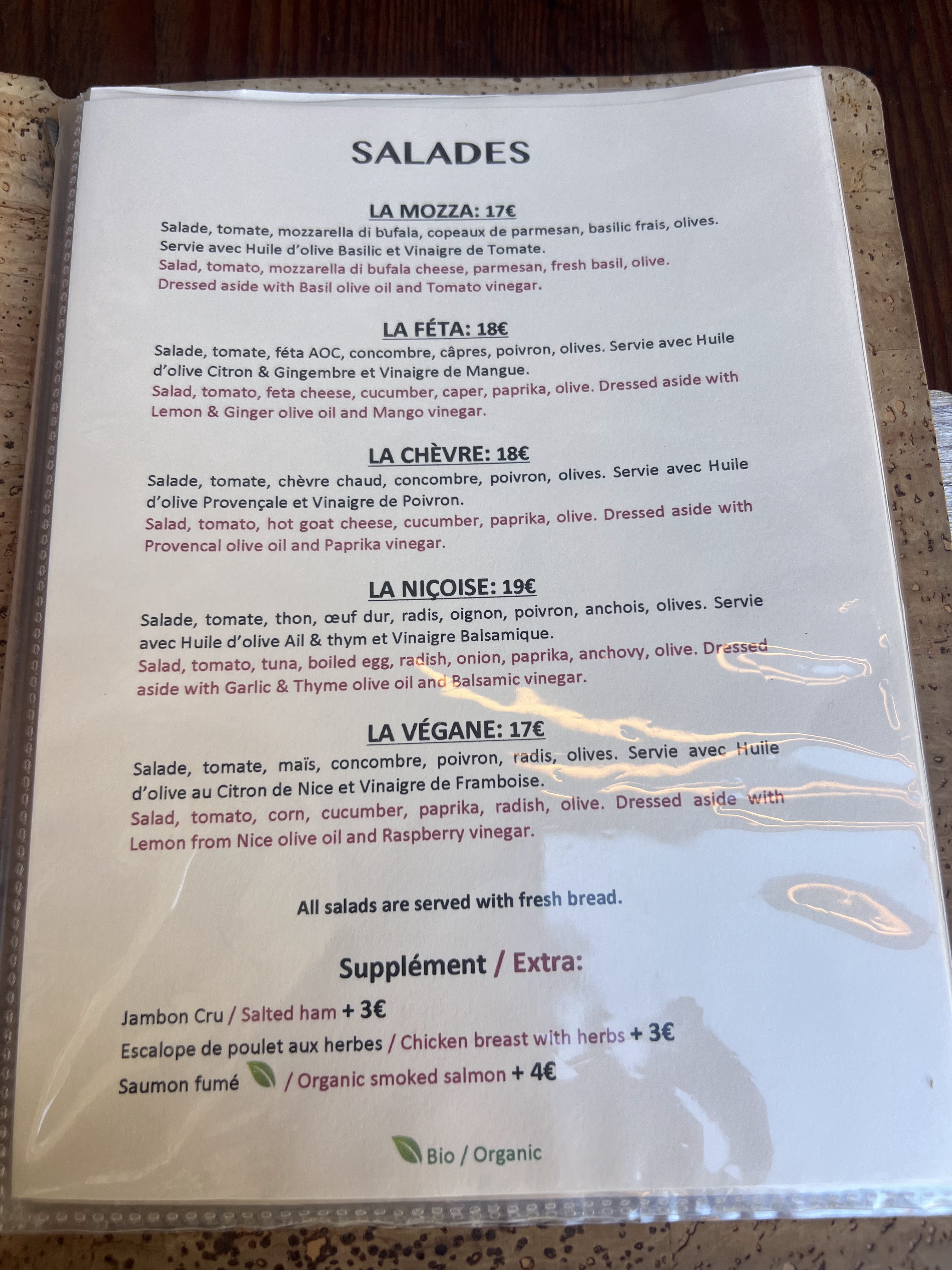 - ✔️ Plats bio