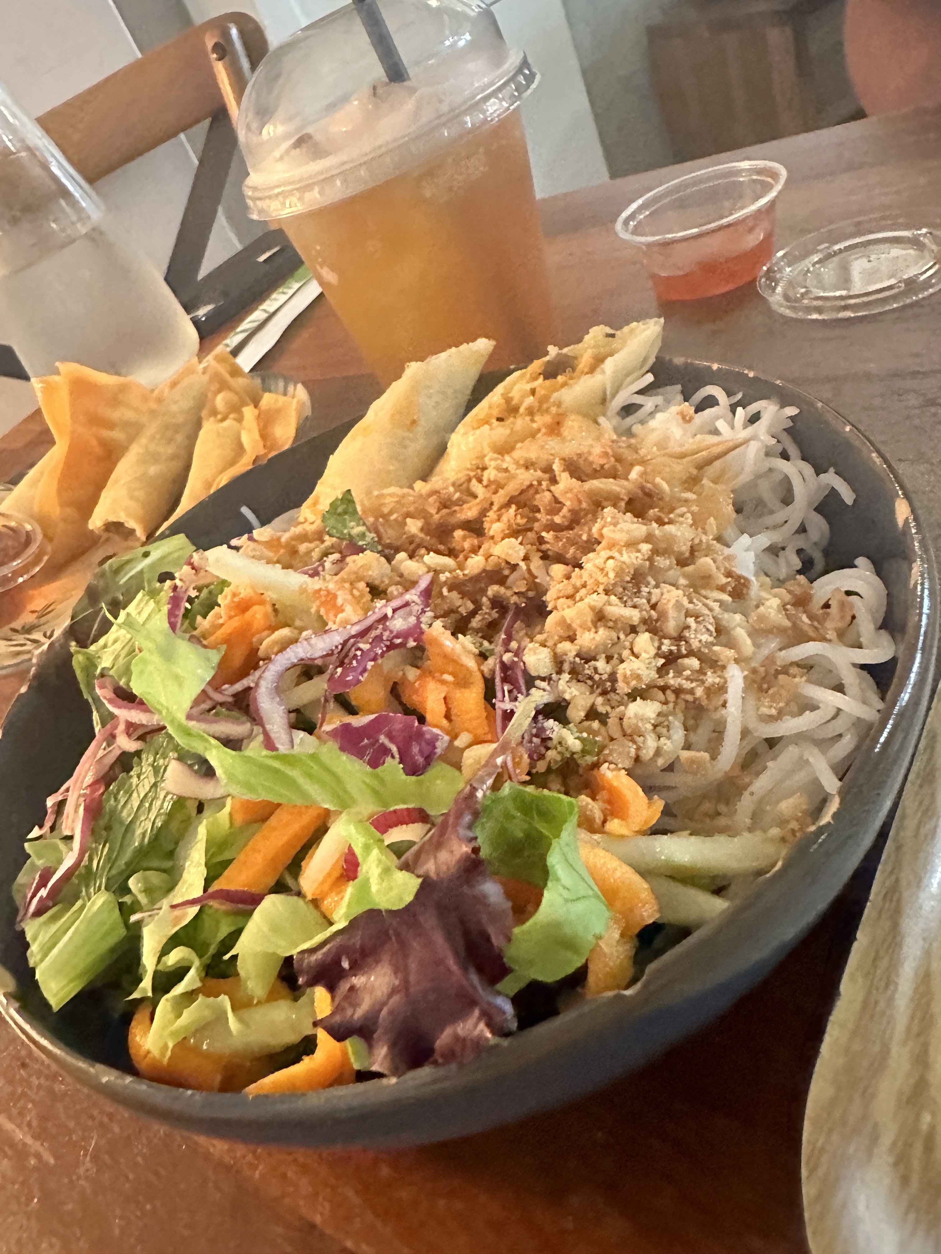 Il y avait le bol de vermicelles de bœuf à la citronnelle et c'était incroyable. Portion super fraîche et énorme. Essayez le thé glacé fait maison !!
