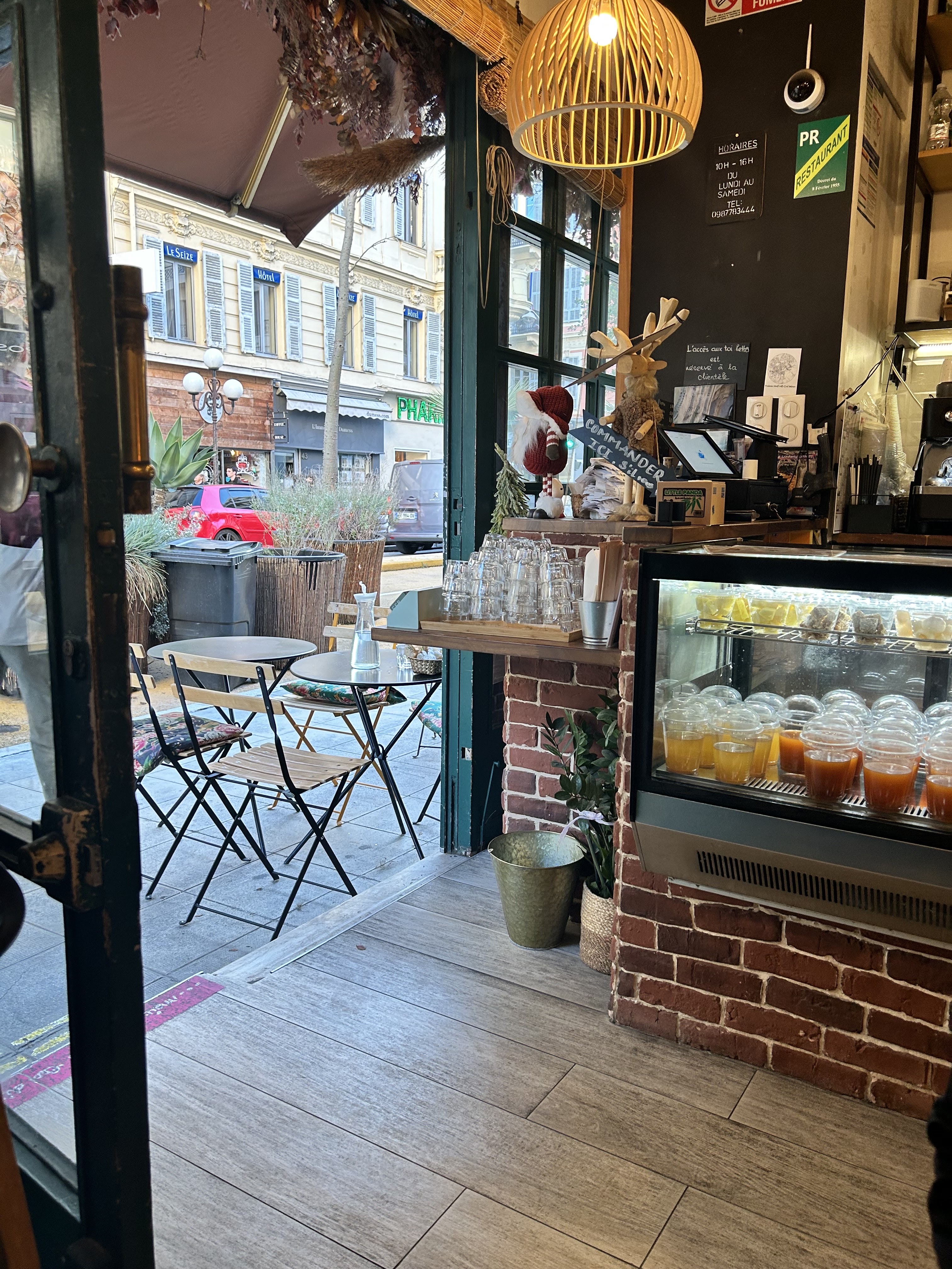 Je venais de Londres et je passais devant et j'ai décidé d'y aller. Le restaurant est très joli, avec une superbe décoration et une atmosphère calme mais animée ! La nourriture était délicieuse et avait un goût super frais, je le recommanderais à tout le monde à Nice !! Les boissons étaient également savoureuses