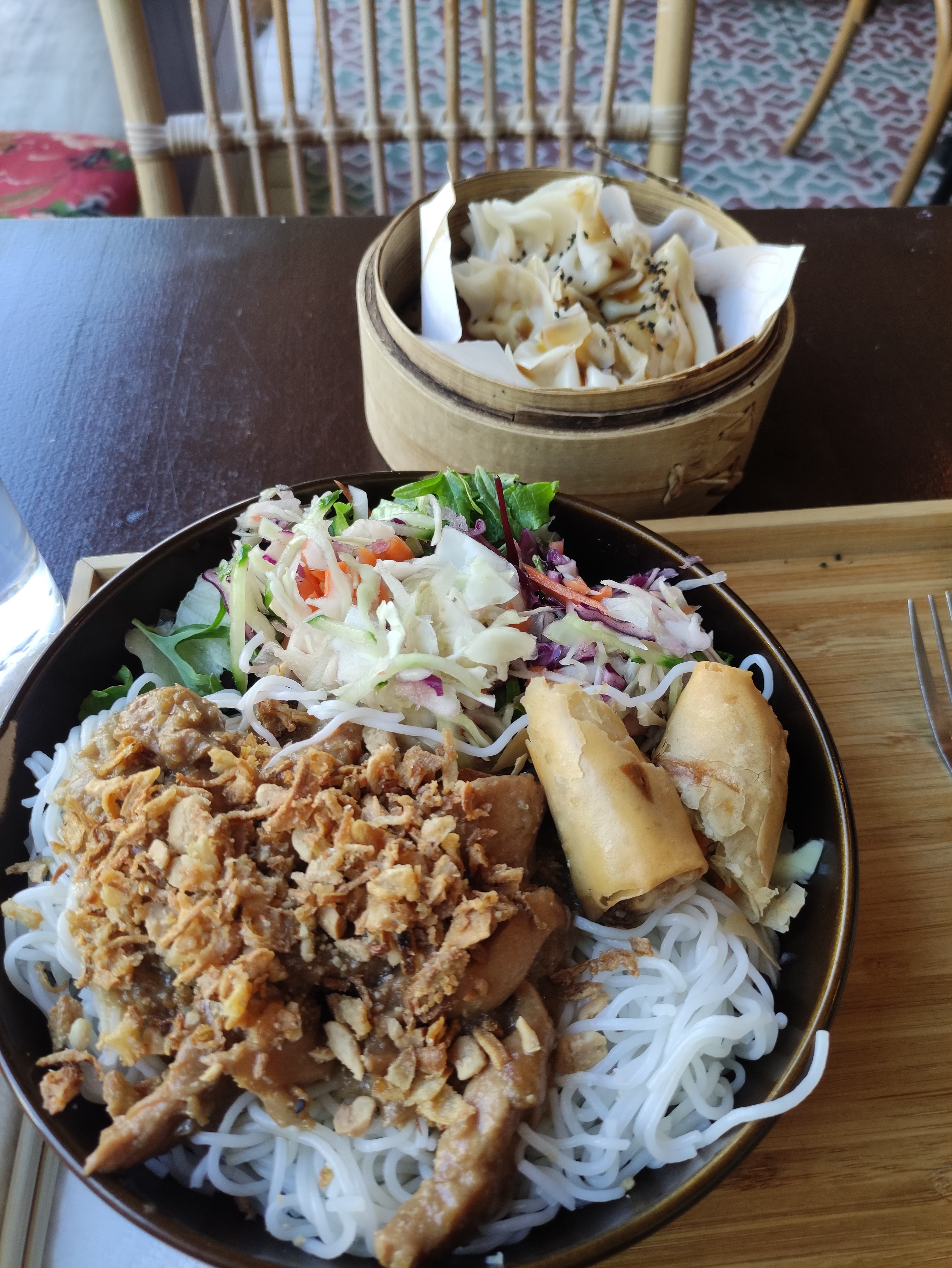 Terrasse très mignonne et surtout Bo bun parfait avec crudités fraîches et variées, gyosa délicieux. C’est tellement rare de trouver de la nourriture vietnamienne avec les saveurs attendues sur la Côte d’Azur …