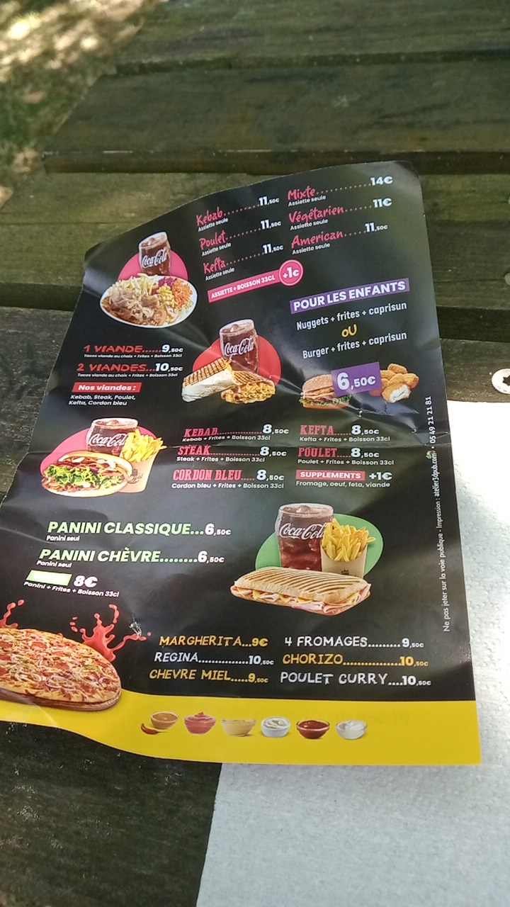 Nouveau patron il et pas longtemps ouvert ferme a 14h . Intérieur côté magasin propre. Dommage pas de frite et kébab en forme ronde. Et je trouve chère 8,50€ avec la boisson ou sans la boisson c le même prix . Le kebab est bon mes dommage qui mettre pas les sauces dans le kebab.