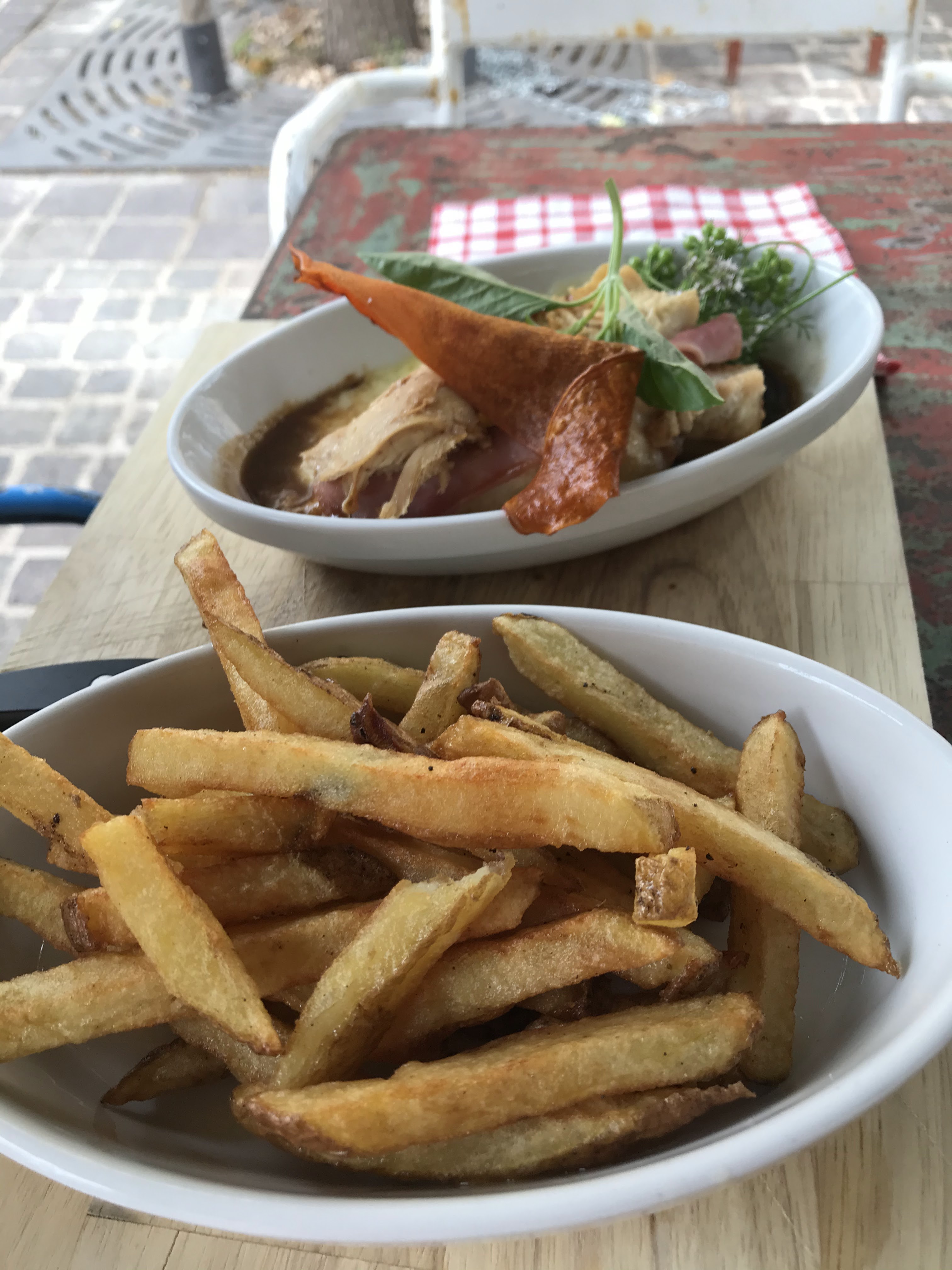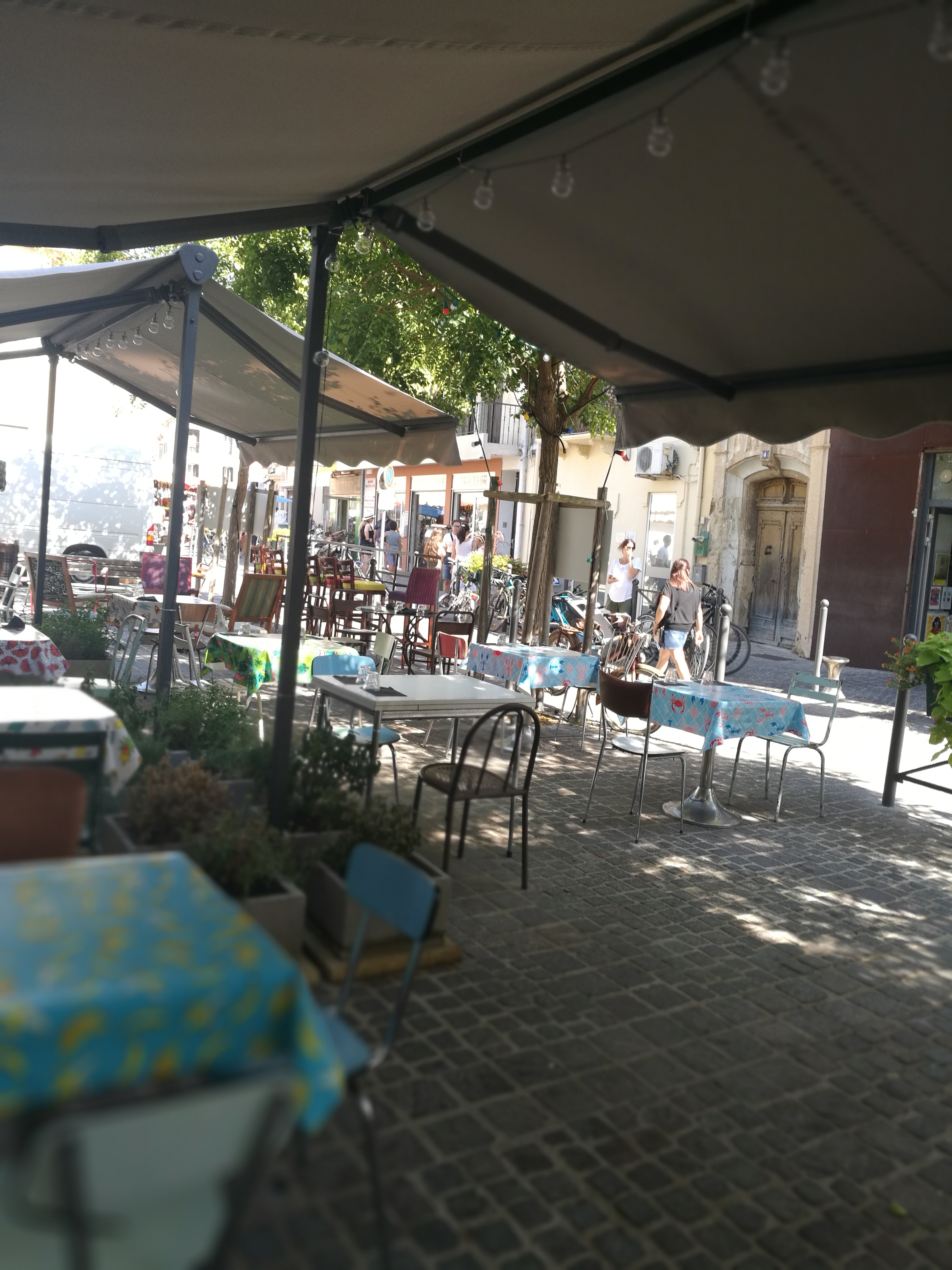 UNE BELLE DECOUVERTE ET UN BON MOMENT Terrasse à l’ombre de l’église. Service très sympa et décontracté mais professionnel. Bons produits, assiettes copieuses et plats originaux. A conseiller