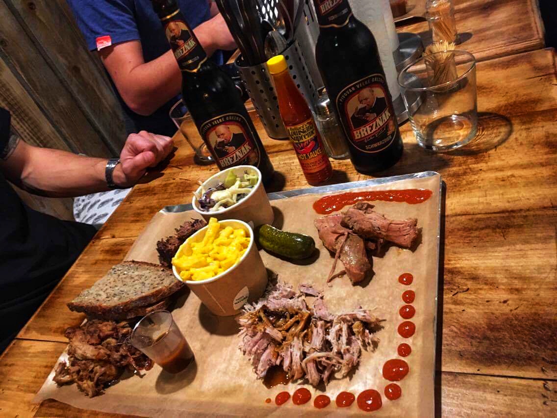 Ambiance sympa, viandes barbec' au fumet typiquement américain, servies sur un plateau à se partager en toute convivialité = super soirée pour un budget raisonnable. 👍🏻