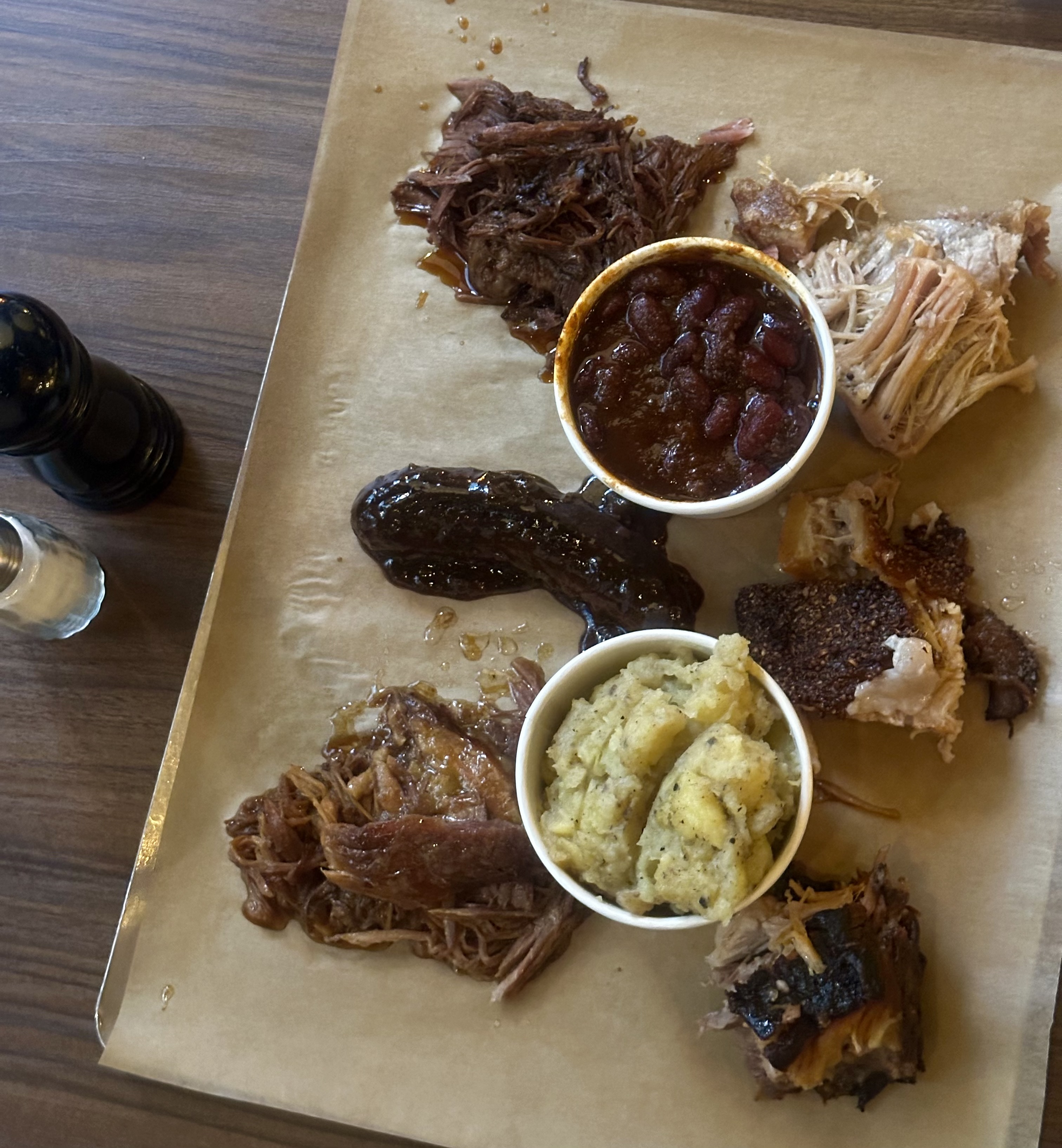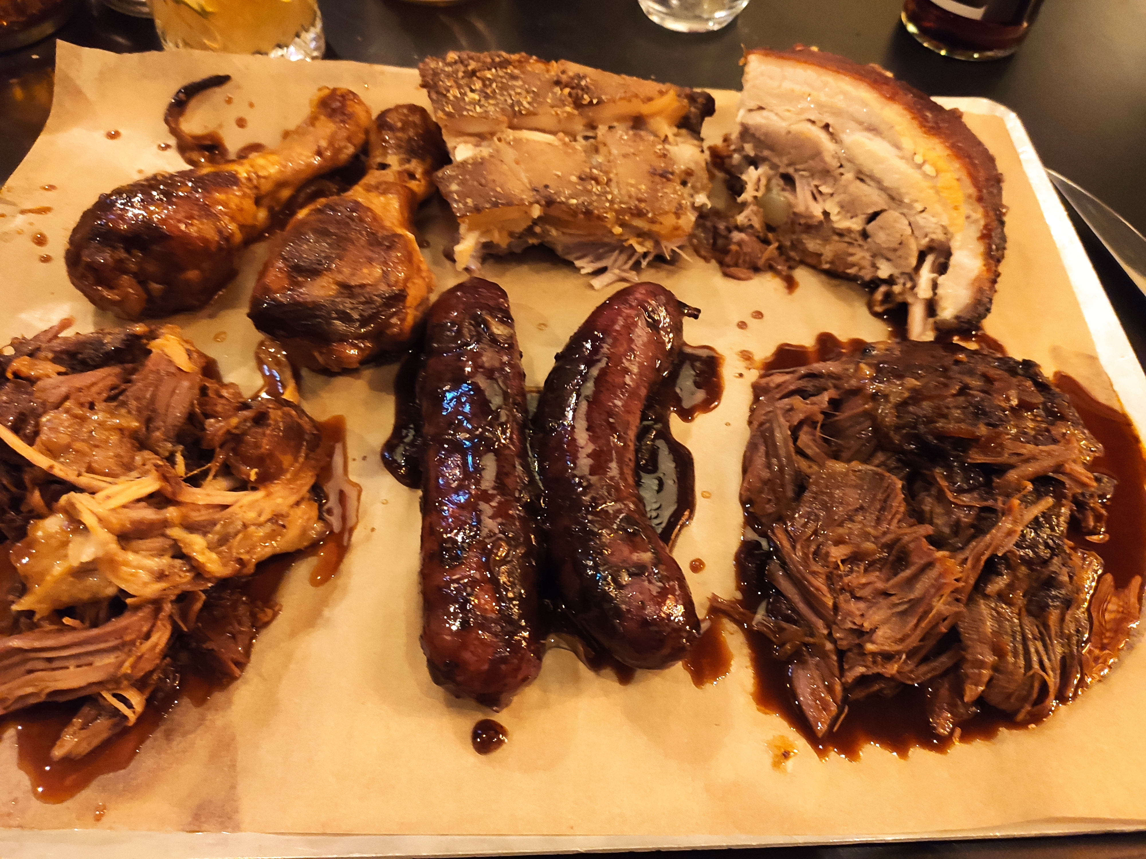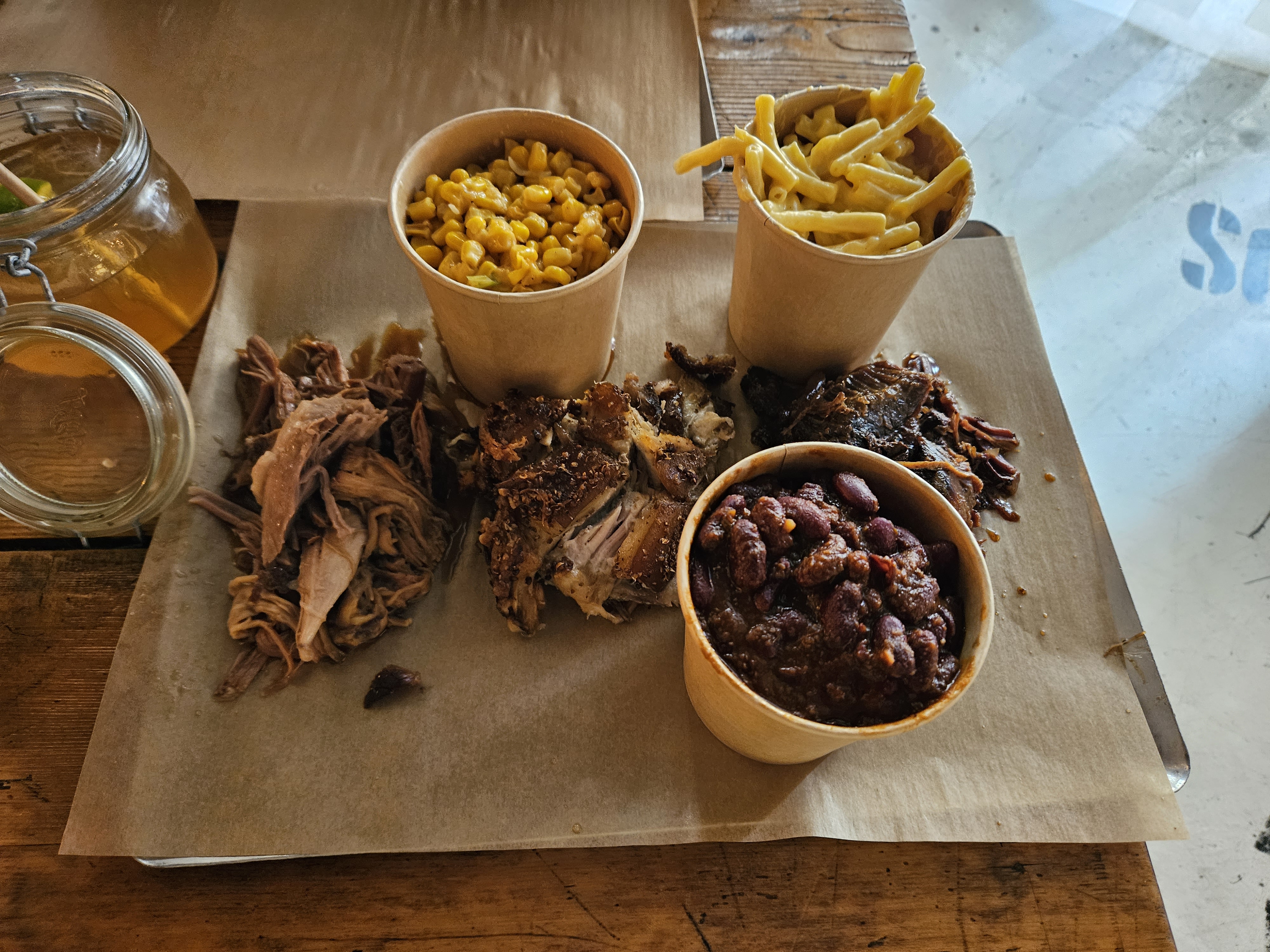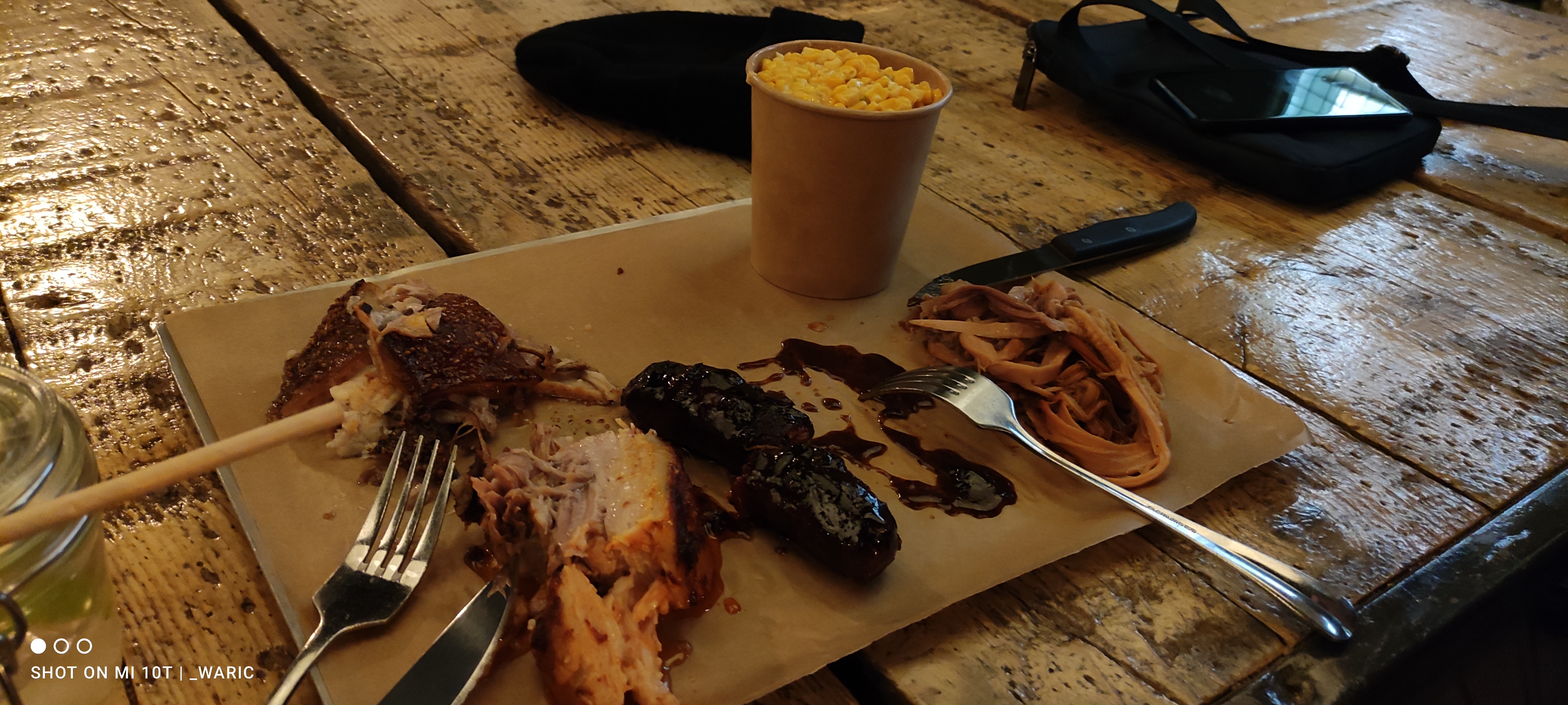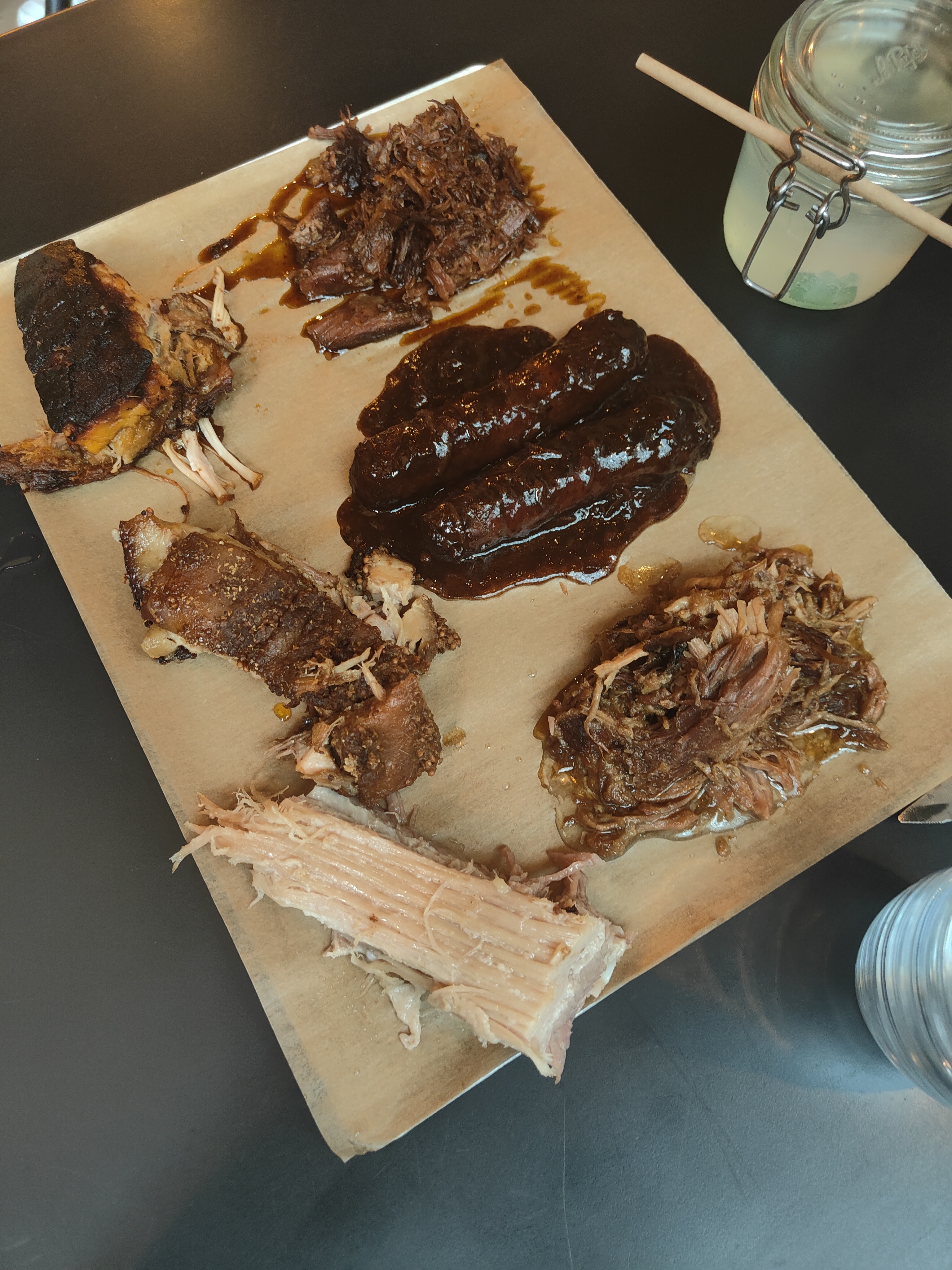 Service au comptoir, équipe accueillante et rodée, il ne reste plus qu'à profiter de la qualité des mets : sélection de viandes (volaille, porc, boeuf, saucisses) de provenance certifiée bien préparées, accompagnements sous forme de Mac & Cheese, maïs à la crème, cow-boy beans le tout servi sur un plateau à partager Très agréable et sympathique.
