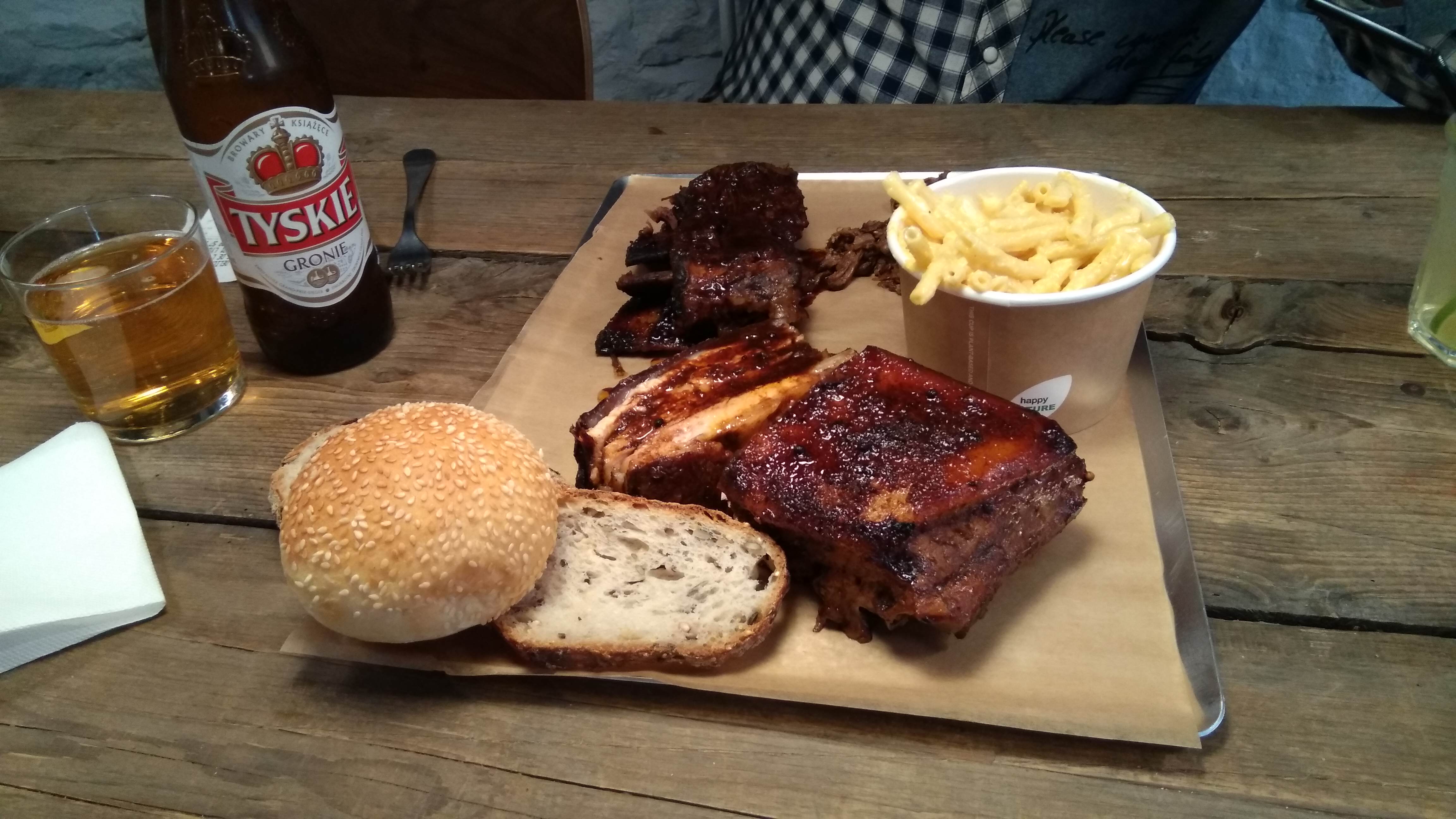 L'ambiance y est hyper chaleureuse, le système est très chouette (4,90e les 100g de viande, donc on peut prendre d'un peu tout), et le personnel est vraiment adorable et gentil. Cependant un peu déçue du repas, l'effiloche de porc au sirop d'érable semblait prometteur et bien parfumé, mais assez fade et pas mal sec et les ribs étaient très très grasses. Les Mac & cheese étaient sympas mais manquaient de poivre/sel, le cream corn était une découverte à faire ! Même si tout était assez fade en comparaison de ce qu'on m'avait raconté de ce restaurant, c'était un bon moment passé la bas, l'ambiance et les serveurs y faisant beaucoup ! C'était tout de même agréable et une jolie découverte. Je redonnerais bien une chance à ce restaurant malgré tout grâce à ça. C'était peut être pas le bon jour, sait on jamais !