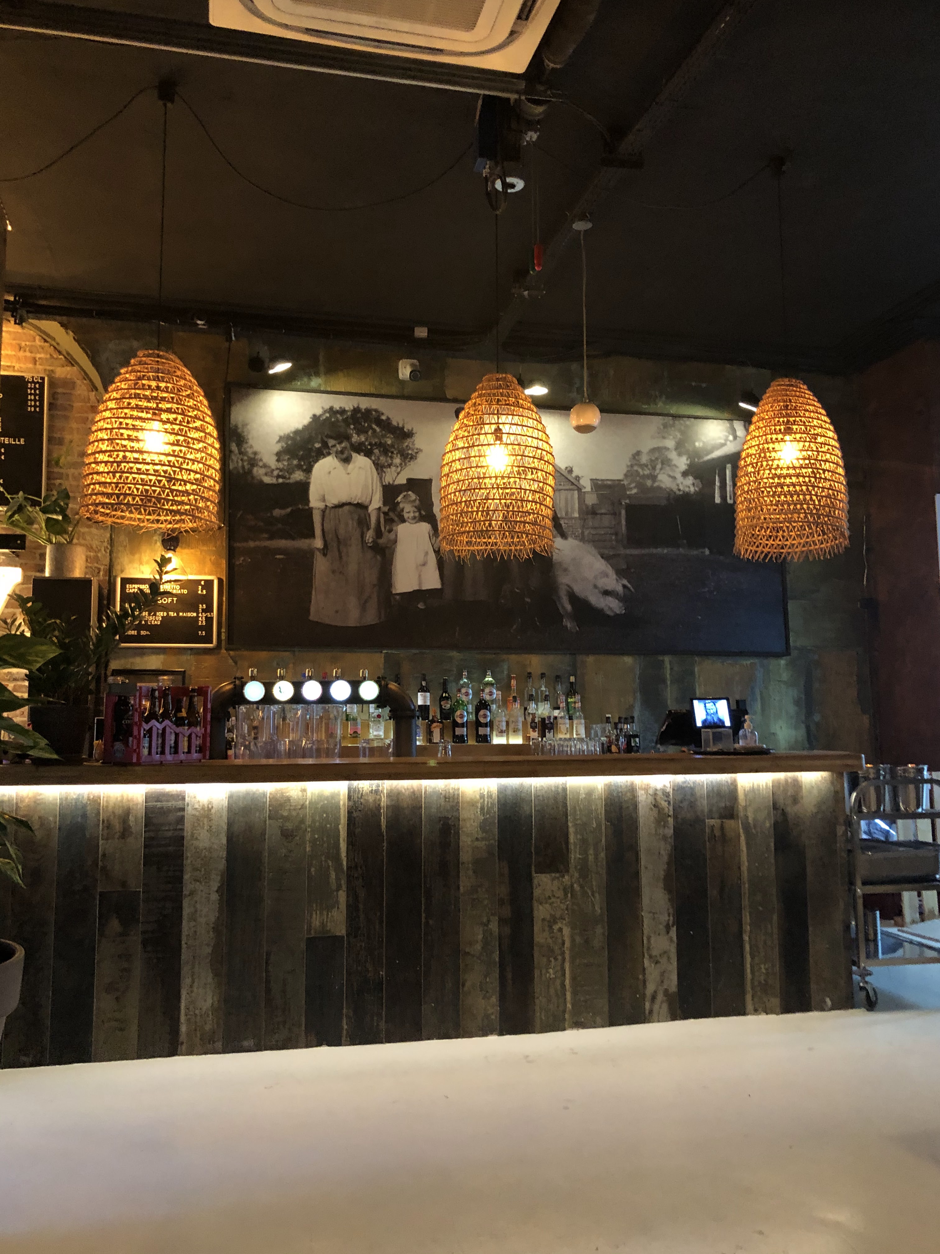 Dans un lieu un peu froid, dégustez des plats parfois excellents (poitrine fumée, creamed corn) et parfois médiocres (paleron pas assez salé, haricots durs et trop sucrés dans une sauce liquide). Faites-vous servir un verre au bar par une personne chaleureuse puis aller commander à manger à un benêt qui vous dira c'est écrit gné quand vous demanderez qu'est-ce que c'est ? car les étiquettes sont quasi invisibles et bizarrement situées. Je suis déçu et je n'y retournerai certainement pas sauf à devoir nourrir une douzaine d'amis. Dommage, we could have had something...