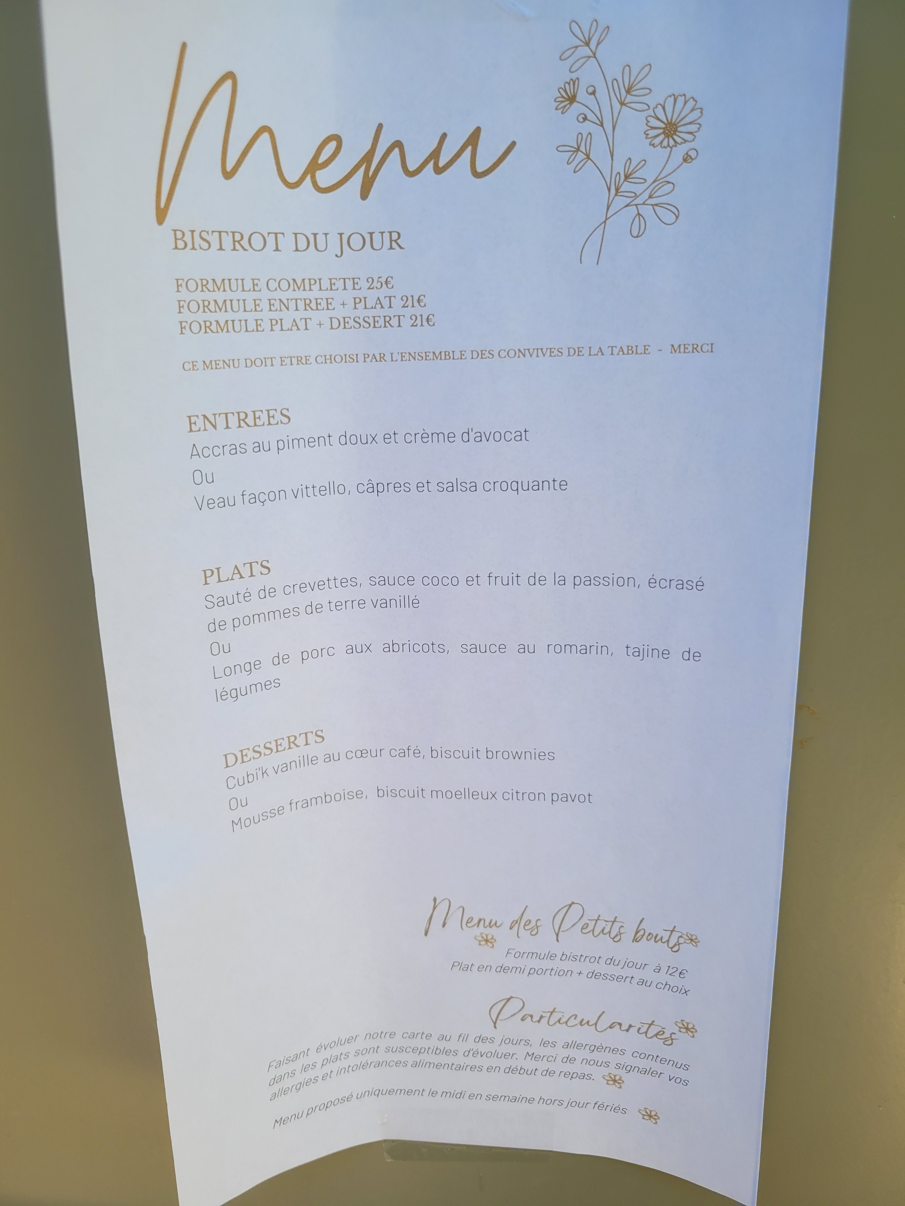 Voici notre troisième visite dans ce restaurant, mais une première en « menu du jour ». Petit rappel, le cadre est très agréable, que ce soit en terrasse ou intérieur. Les tables sont soignées, correctement espacées. Nous sommes 4 convives, et vendredi. Donc se pose d’emblée le problème du poisson 🐠. Si il se glisse dans les différents plats proposés, il sera surtout choisi par défaut, mais au final apprécié à l’unanimité ! Les assiettes sont magnifiques, les cuissons maîtrisées, surtout les légumes que nous avons trouvé parfaits. Un bémol pour le poisson que nous préférons plus translucide à cœur. Boissons et vins sont proposés 🍷 à des tarifs abordables, ça fait du bien, et cela permet d’y accéder et/ou de se faire plaisir. Merci, c’est rare. Au vu de la qualité des plats et de leur présentation on pourrait s’attendre à un service plus stylé. Bon, il reste très correct et classique. Vous serez agréablement surpris au moment de la note. Et vous reviendrez. Un établissement à découvrir ou à re-découvrir.