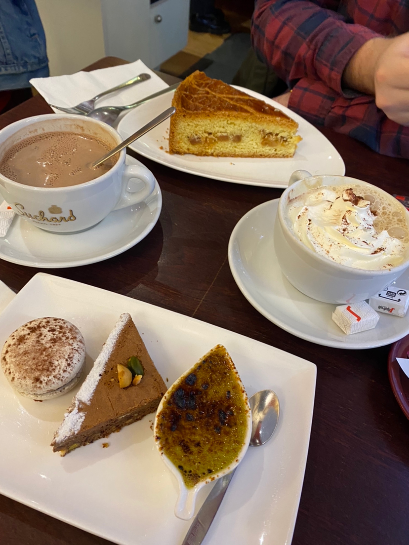Décevant! Les prix sont prohibitifs et dissuasifs: 7,50e ! La pâtisserie qui est de taille normale; nous devions en commander 4, on s’est limité à 1; chocolat chaud quelconque;mieux vaut aller à l’une des 3 pâtisserie située aux alentours.