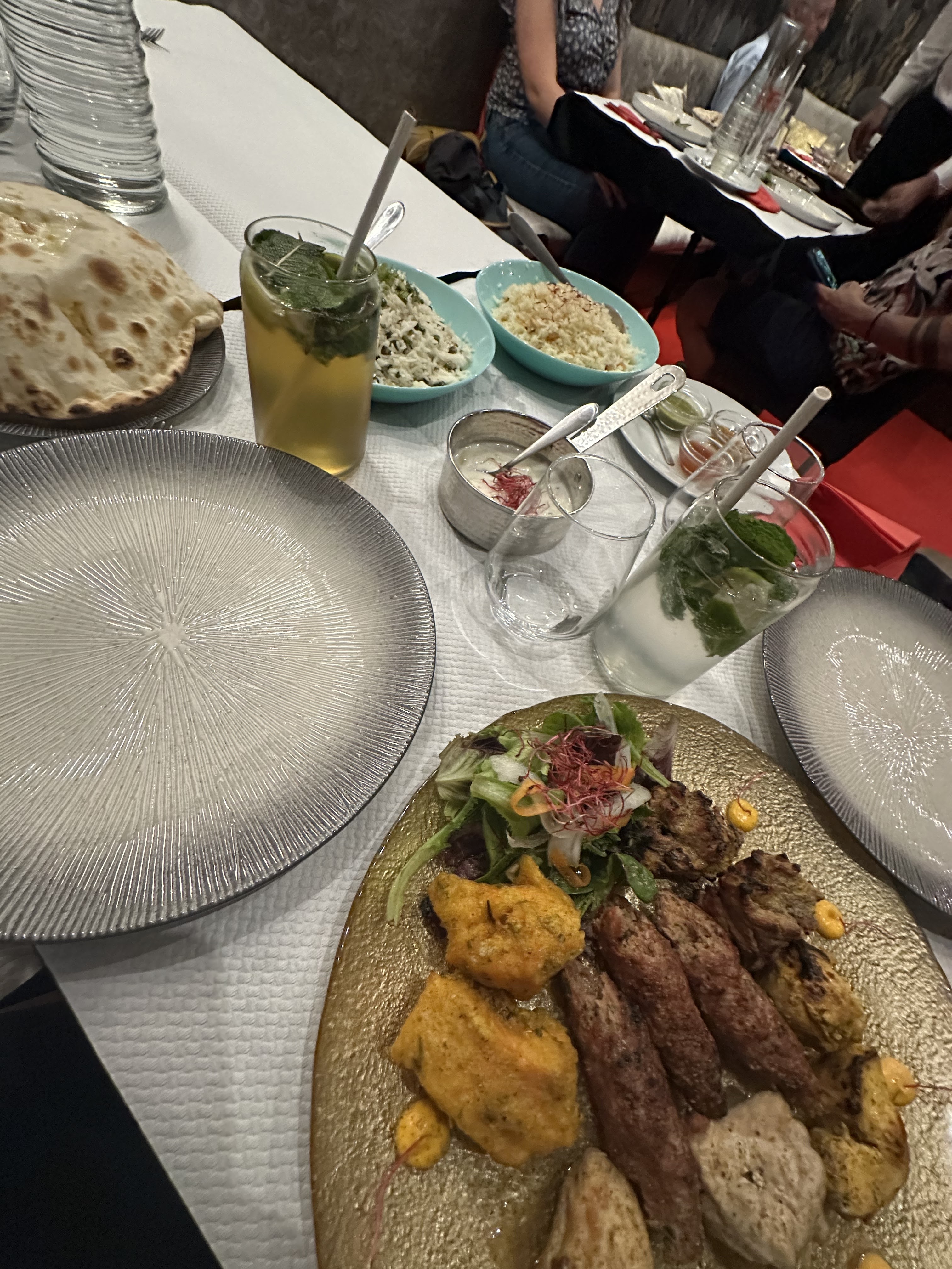 L'expérience culinaire globale était correcte. L'ambiance du restaurant est bonne, mais nous avons dû attendre longtemps pour avoir le plat principal. Nous avons commandé du poulet Tandoori et du Formage Alou Bonda pour commencer. Les deux étaient bons. Pour le cours par courrier, nous avons commandé du Matar Paneer avec du fromage Nan et Masala Kulcha et du Biriyani aux légumes. Le matar paneer était étrangement doux et le biriyani était tout à fait correct. Les Naans étaient bons. Pour les boissons, nous avons commandé du sel lessi, du lassi à la mangue et du thé infusion.
