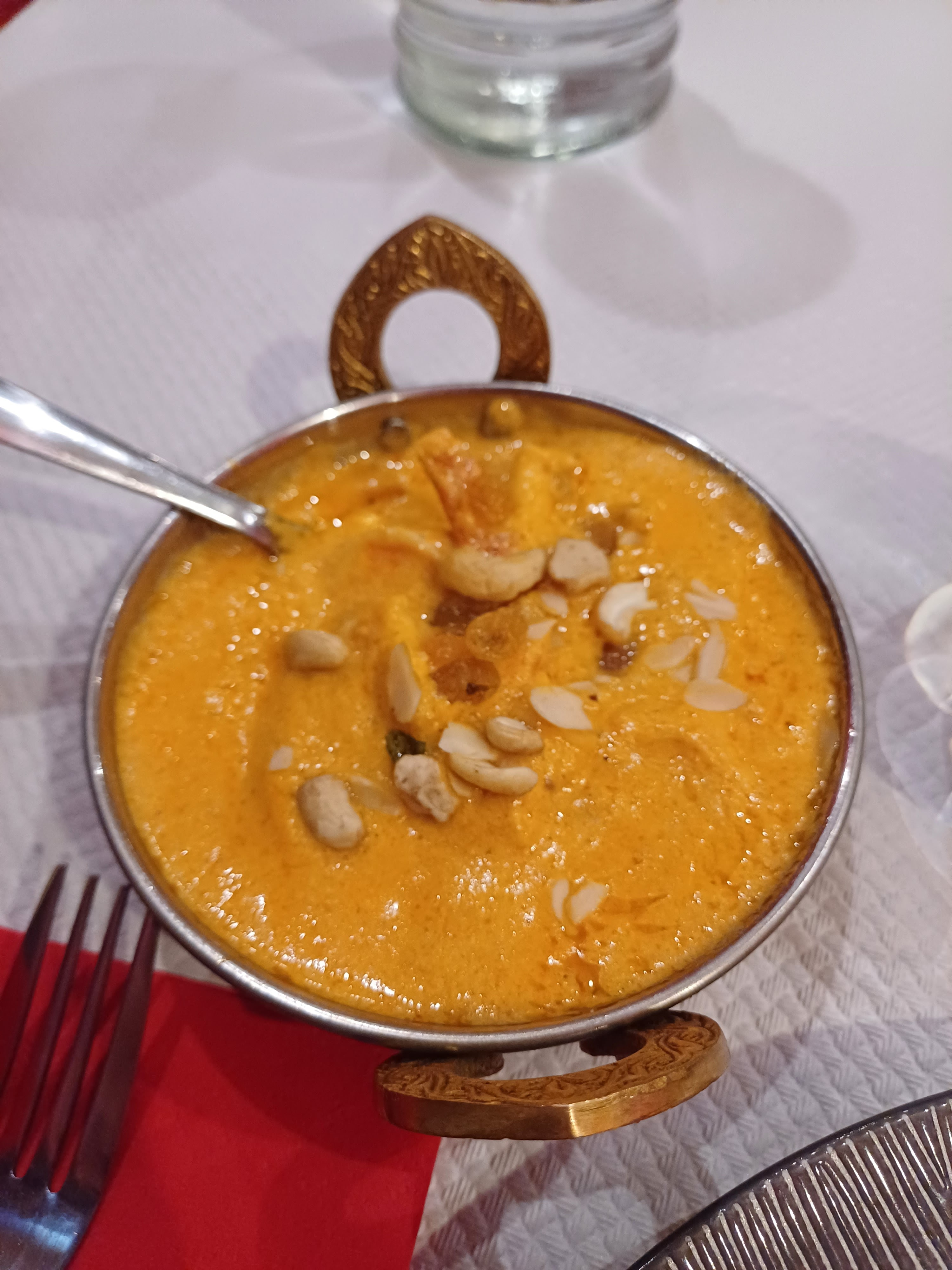 Des plats indiens véritables pour un rapport qualité-prix imbattable avec des plats copieux. Le butter-chicken est excellent (poulet grillé et moelleux) ainsi que le biryani qui est délicieusement épicé. Très bons naans mais petits. Le lassi mangue était parfait aussi, à prendre en apéritif ou en dessert ! Le service est très bien et très sympathique Bémol pour moi c'est l'intérieur du restaurant et la déco qui pourrait être améliorée, ainsi que la banquette qui était vraiment trop fine et inconfortable dans la pièce intérieure.