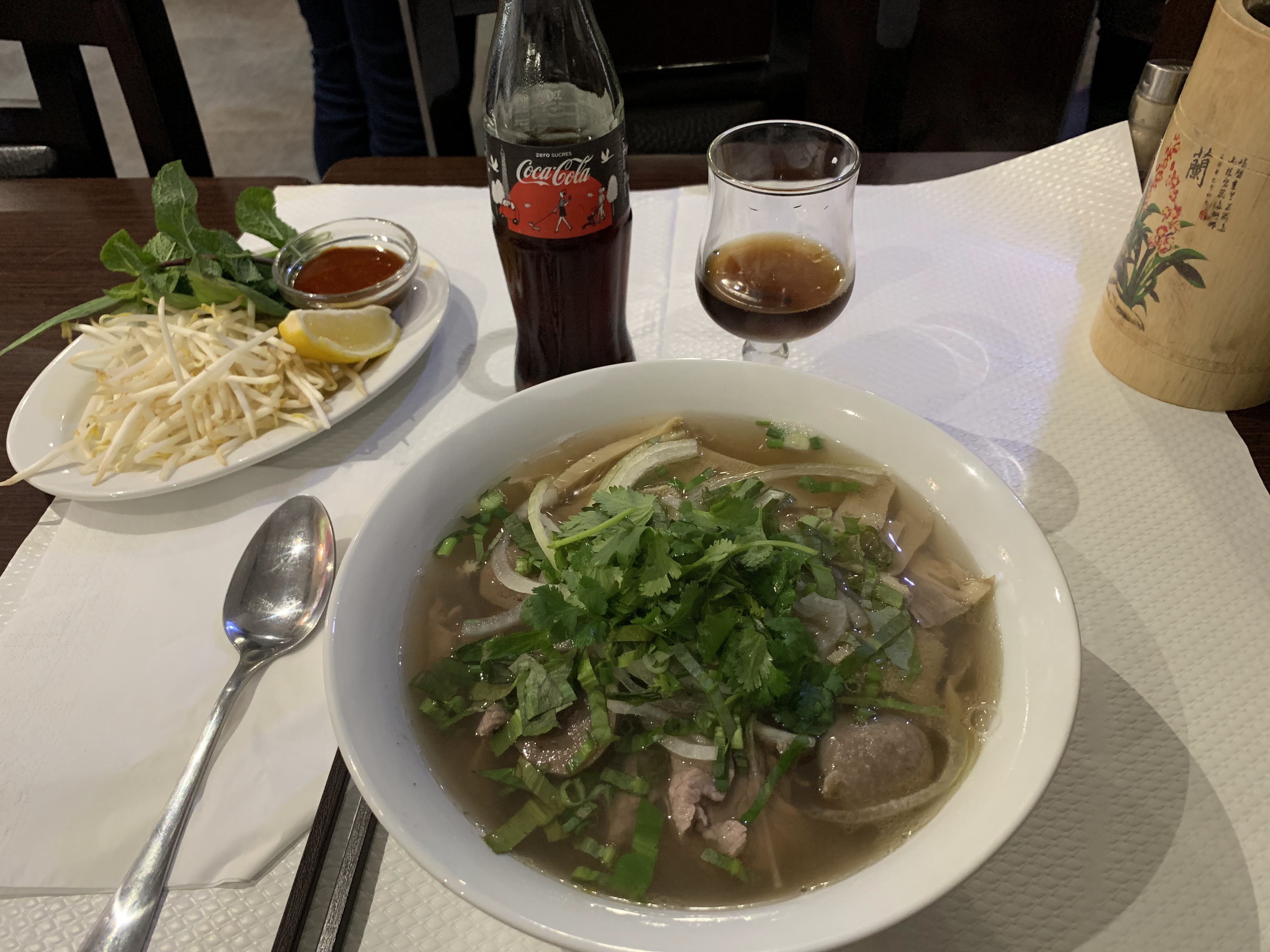 Soupe pho, Lo lac, nouilles sautée et cuisses de grenouilles sont délicieux. (jamais trouvé de lo lac aussi bon)