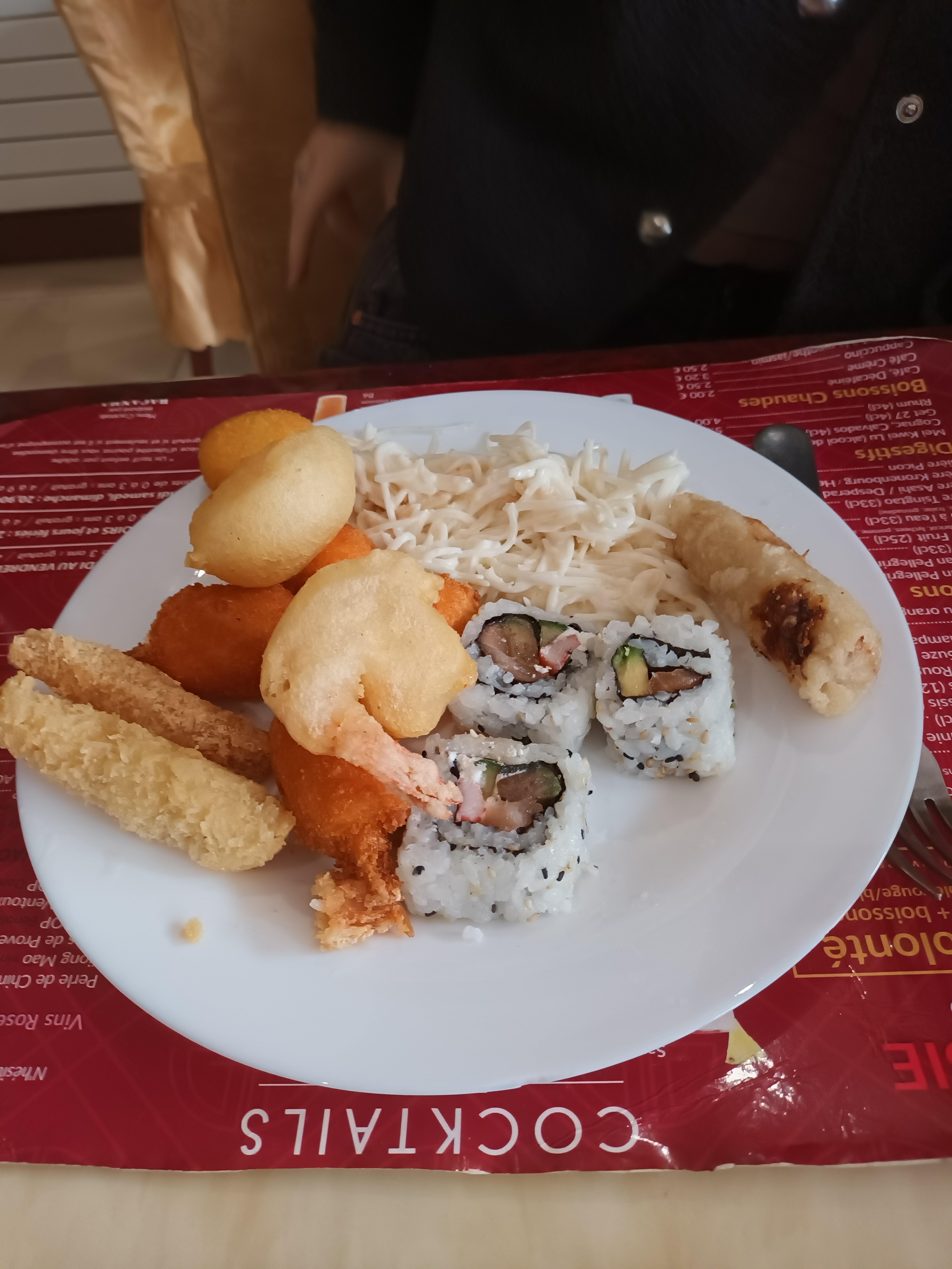 A fuir nourriture pas bonne Nems poulet goût bizarre, Sushi que 3 choix Je déconseille