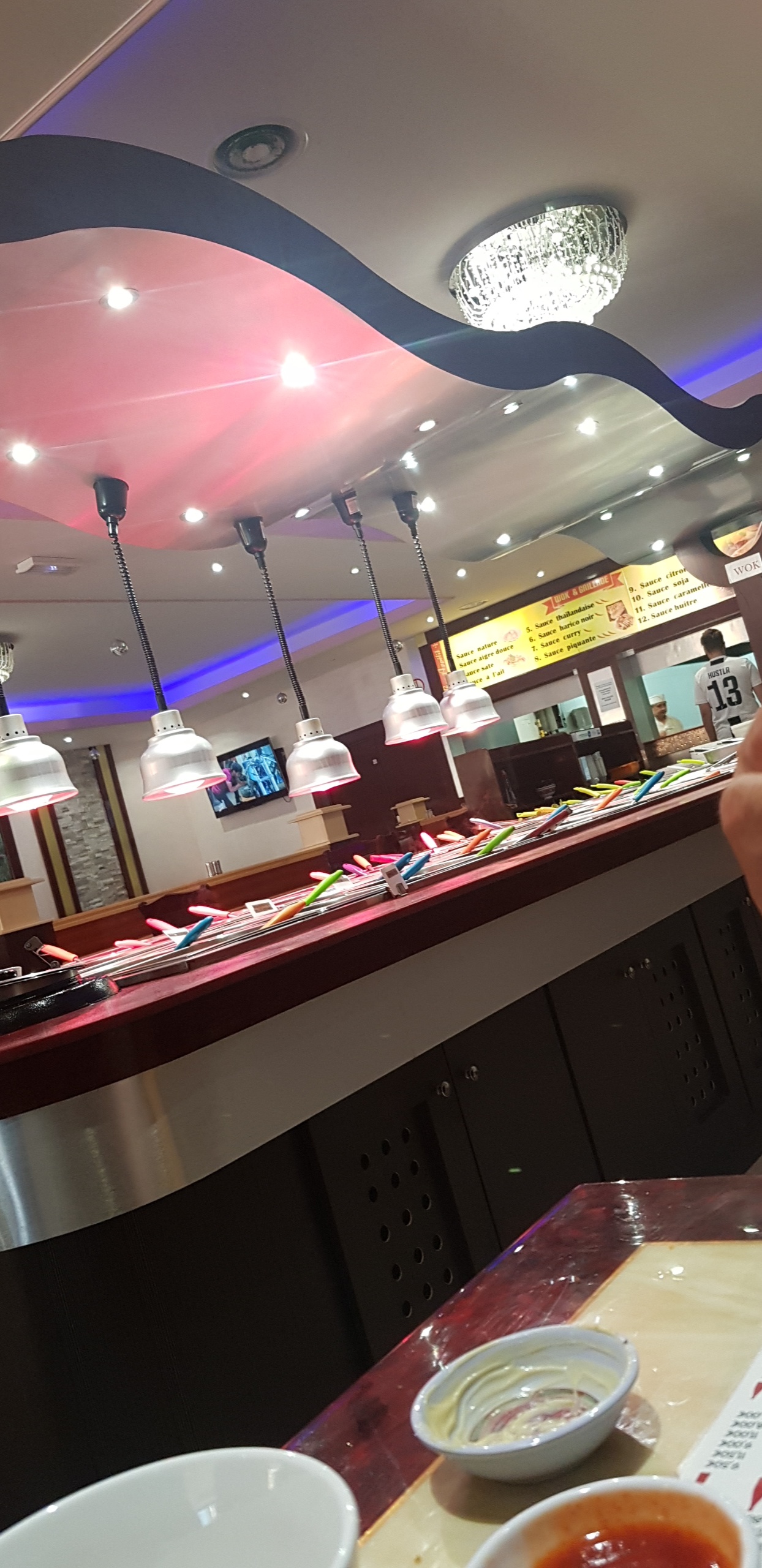 Lieu trop bruyant pour s'entendre parler, très grande salle mais les tables sont collées l'une contre les autres. Le buffet n'est pas approvisionné tout le temps et concernant le wok la viande n'est pas assez cuite (ils ne demandent pas la cuisson). Les serveurs ne parlent pas français (ou juste un). Je trouve cela très cher pour le manque de qualité.