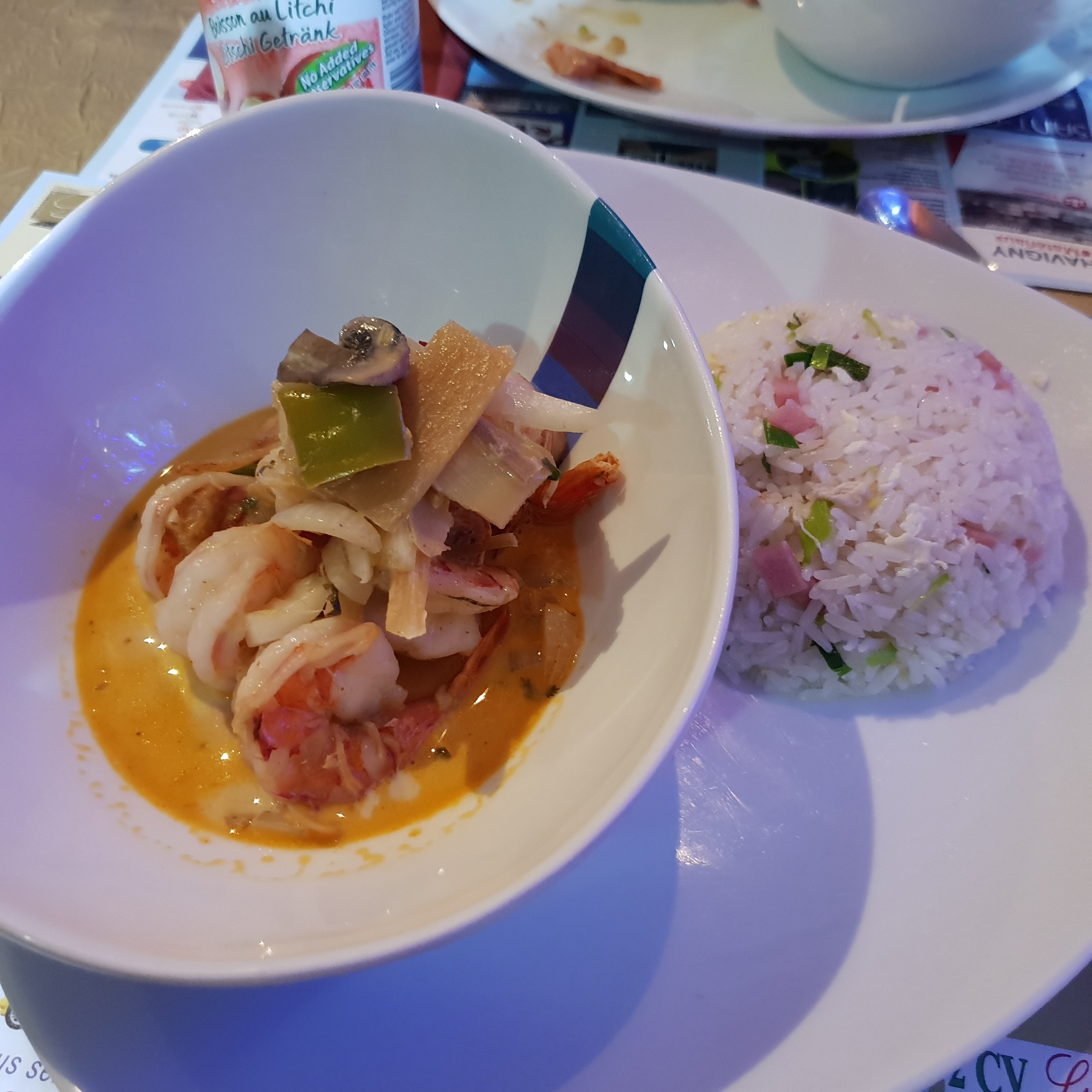 Dans le menu à 25 euros : Poulet au lait de coco et à la citronnelle excellent! Ainsi que l'entrée salade de crevettes Ingrédients frais et de qualité. Très bien préparé. À RECOMMANDER