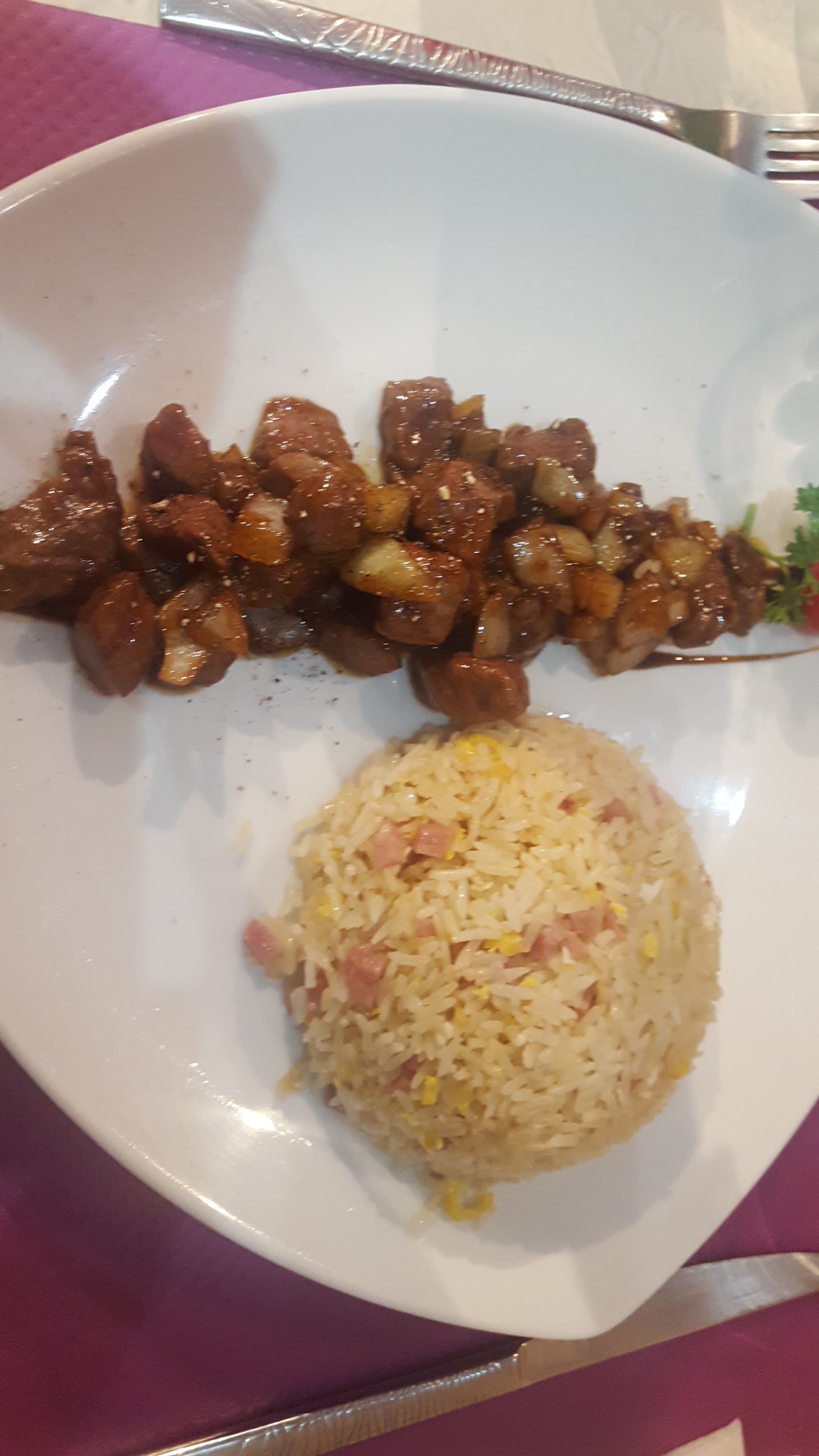 Agréablement surprise c'était délicieux et raffiné n'hésitez pas. Le poulet croustillant est l'un des meilleur que j'ai goûter et le boeuf au basilic riz nature est parfait doux épicé parfumé. SUBLIME.