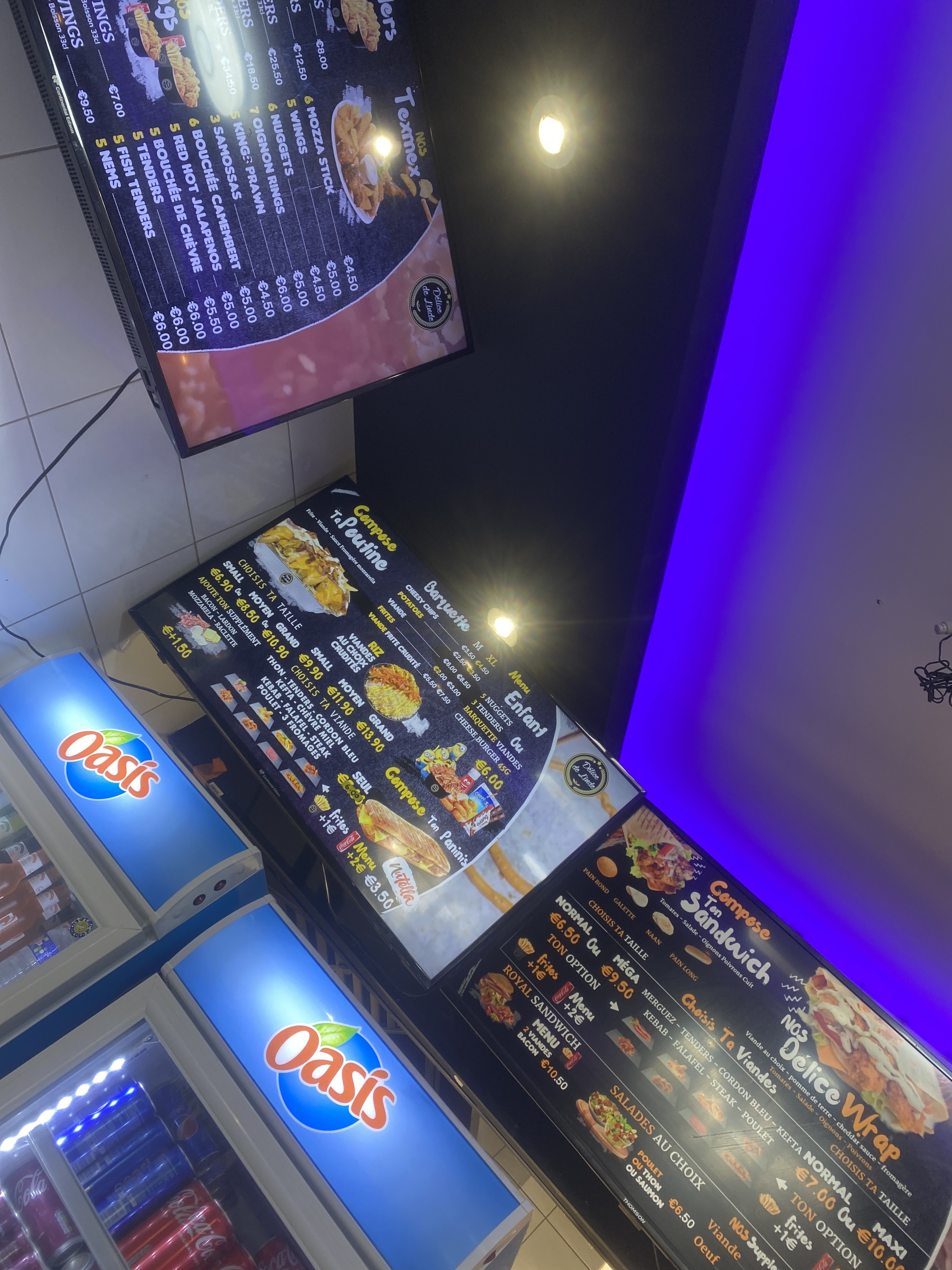 Les tacos ne ressemblent a rien ainsi que les kebab le menu coute cher pour manger quelques chose qui ne donne pas envie et qui n'est pas fameux