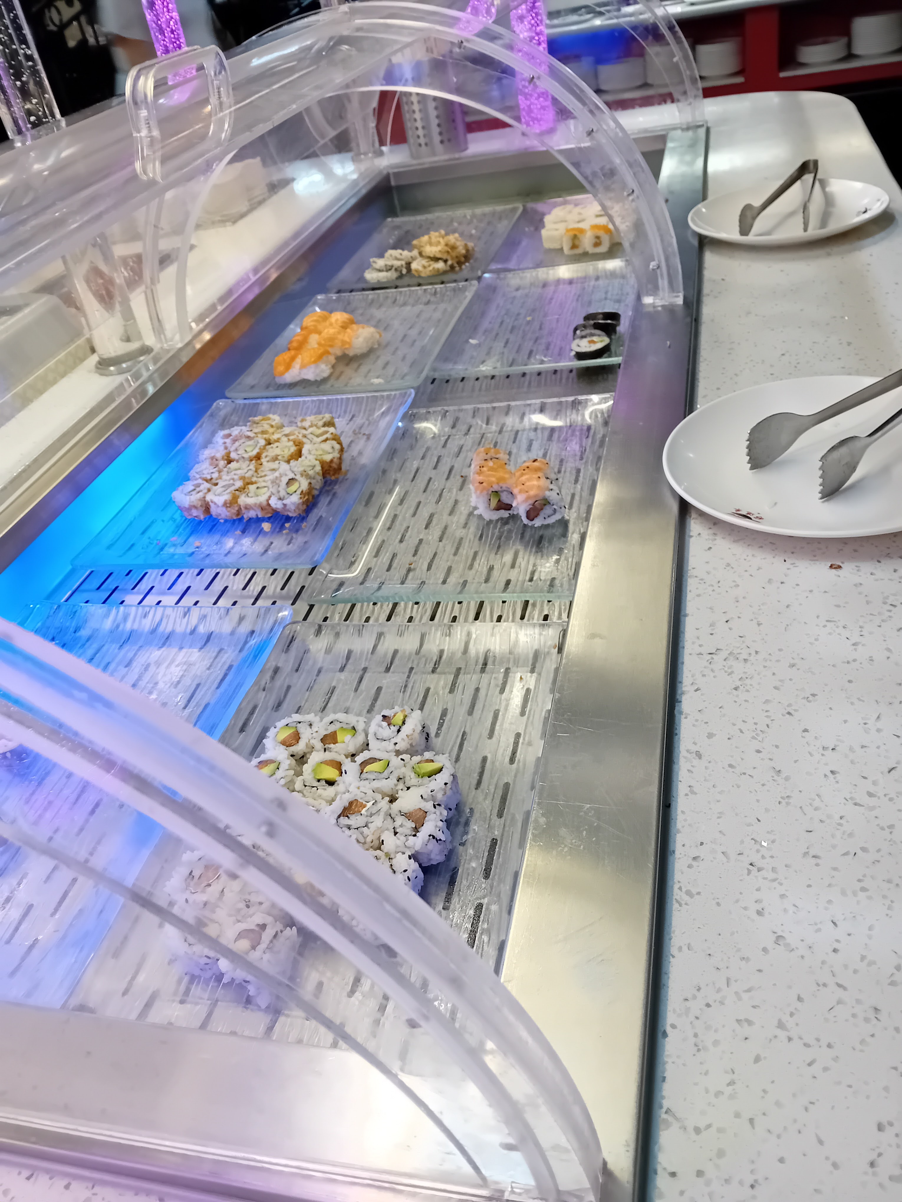 On trouve dans ce restaurant dit japonais à volonté non seulement des plats japonais mais également des produits chinois (nems...). Le goût des plats au choix ne vaut pas celui qu'on trouve dans les restaurants traditionnels mais il y a une très grande variété de produits autant en entrées qu'en desserts. C'est une expérience à faire au moins une fois.