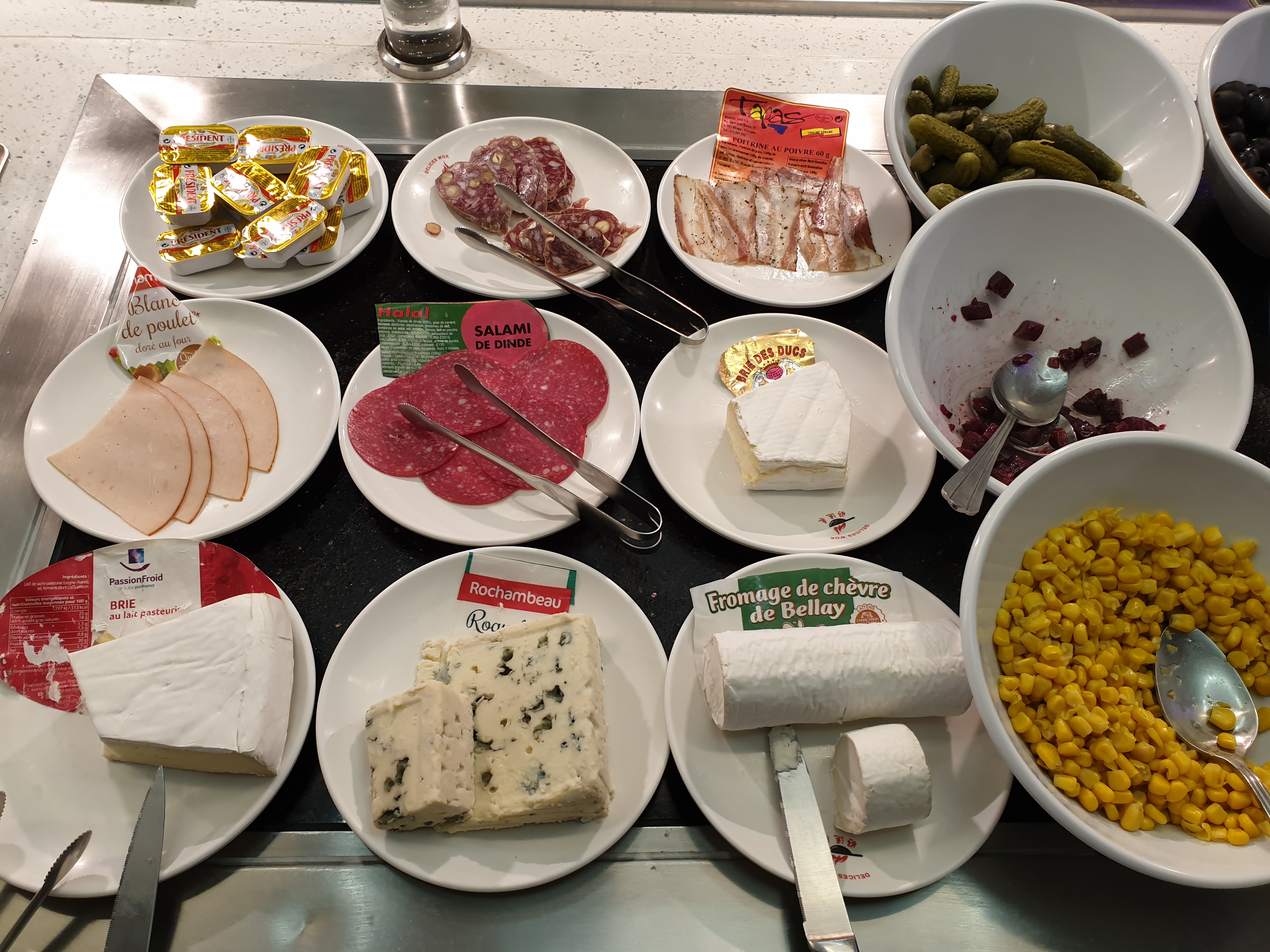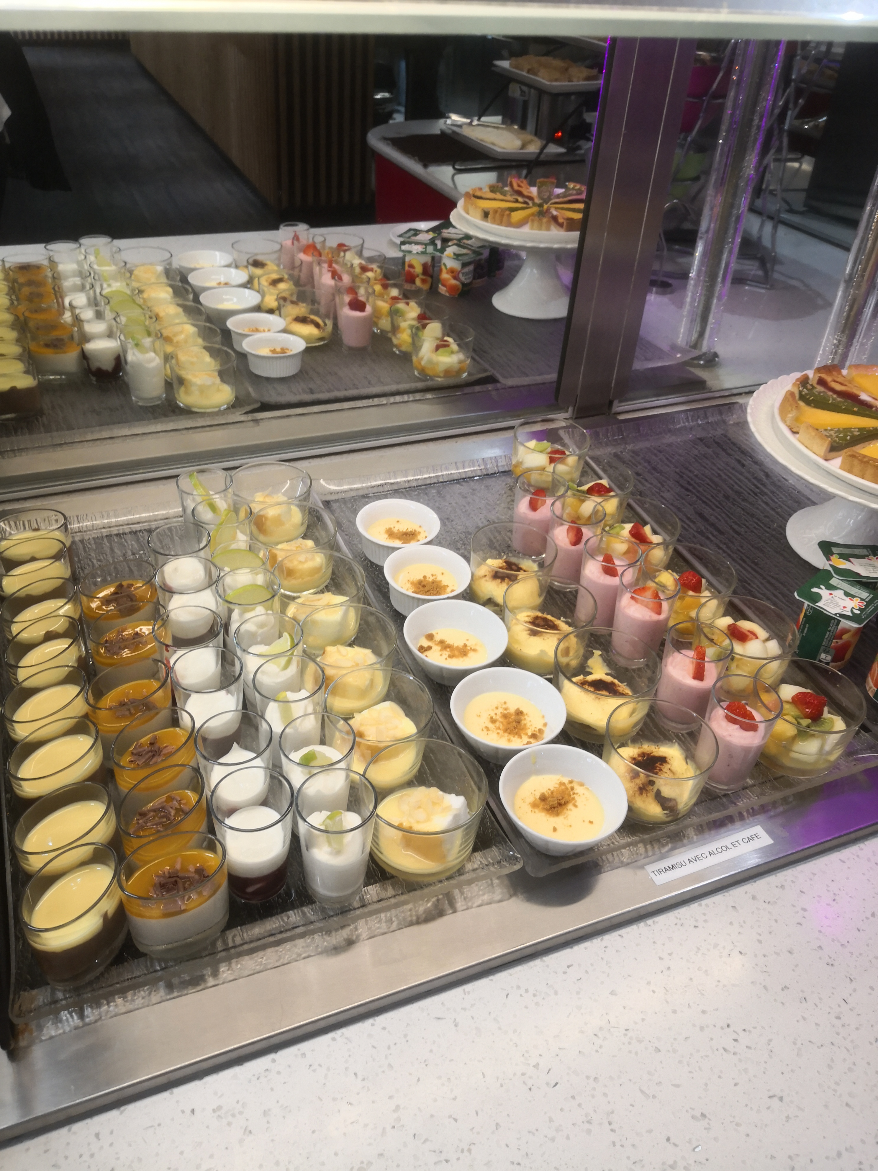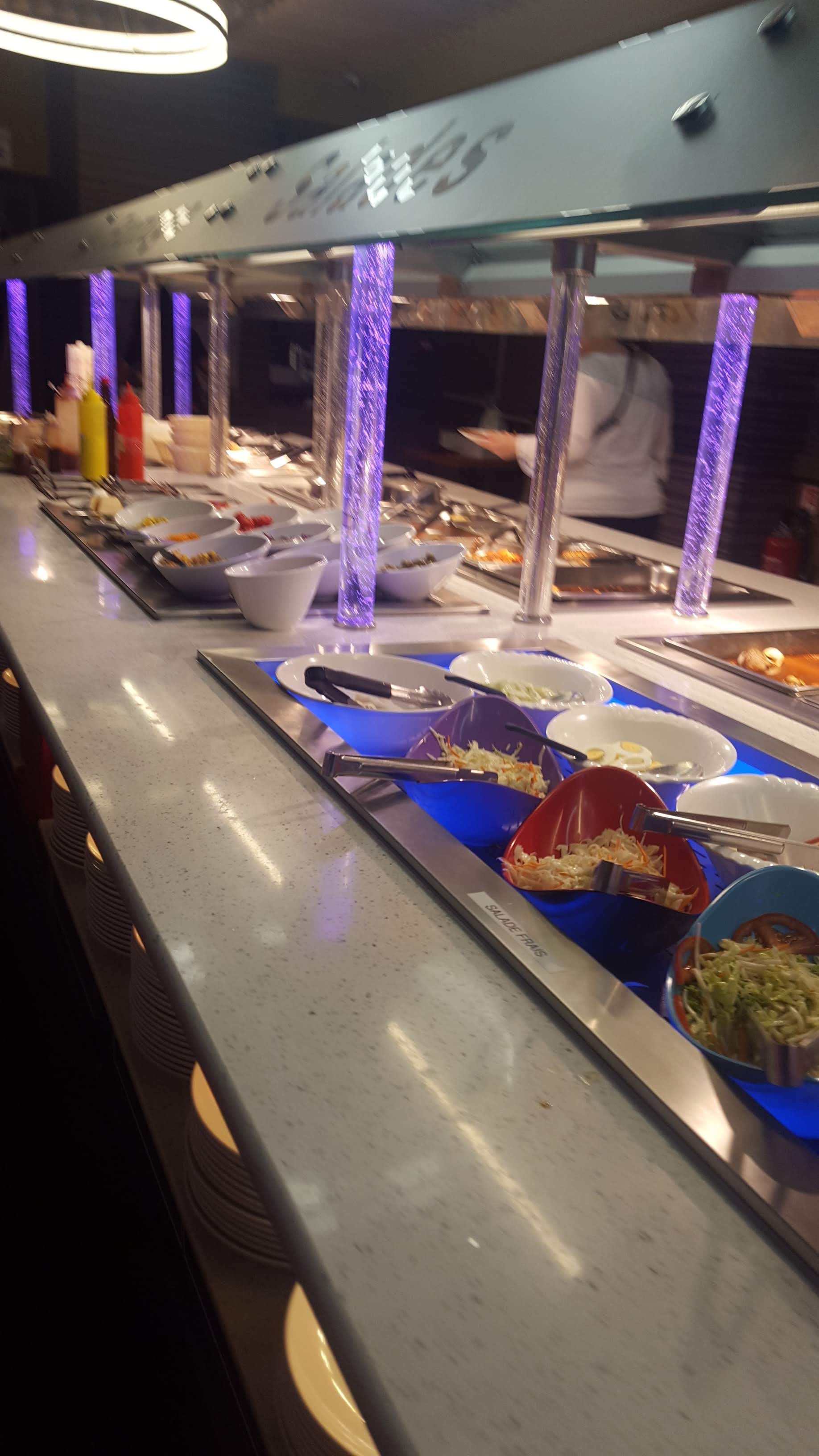 Les plats sont moyens, il manque de saveurs dans les plats chaud je trouve... Je prends souvent les sushi, makis, et Californias quand les plats ne donnent pas envie. Les dessert 🍰 sont bons, certains contiennent peut être de l'alcool/conservateurs . Les vérines sont bonnes mais les gaufres sont très fades, cela ne change rien avec le chocolat 🍫...
