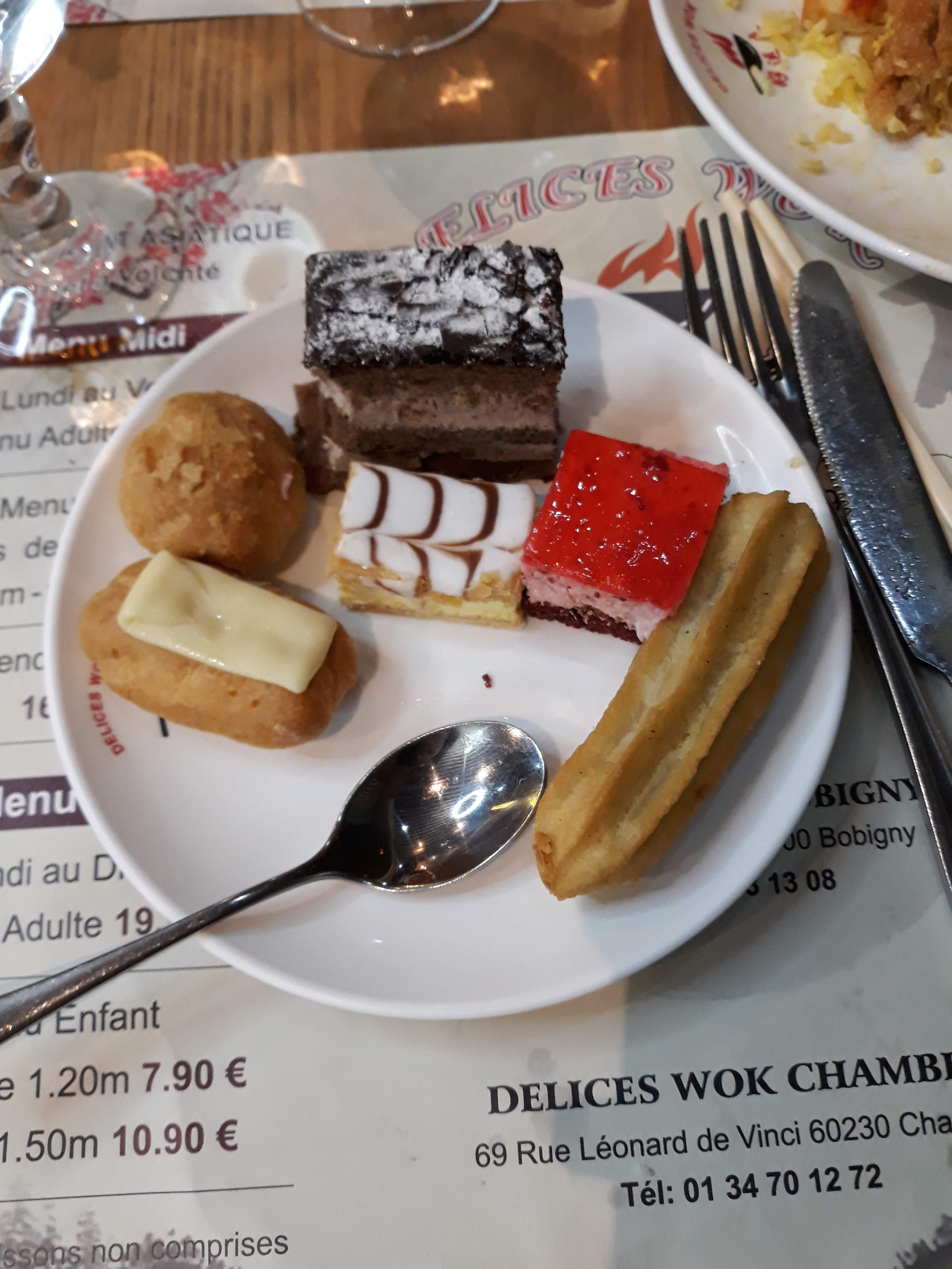 Au restaurant chinois en illimité avec la famille. Mais, limité en choix. On n'a jamais pu manger des brochettes de poulet, ni des crevettes au sel. Il n'y en avait plus. Me suis rabattu sur un wok. Et en dessert, limités aussi, pas d'îles flottantes, et éclaires au chocolat au compte goutte,sortis trop tard du congélateur. Immengeable ! Bref, bien dommage car c'était pas mal. Déçu quand même.