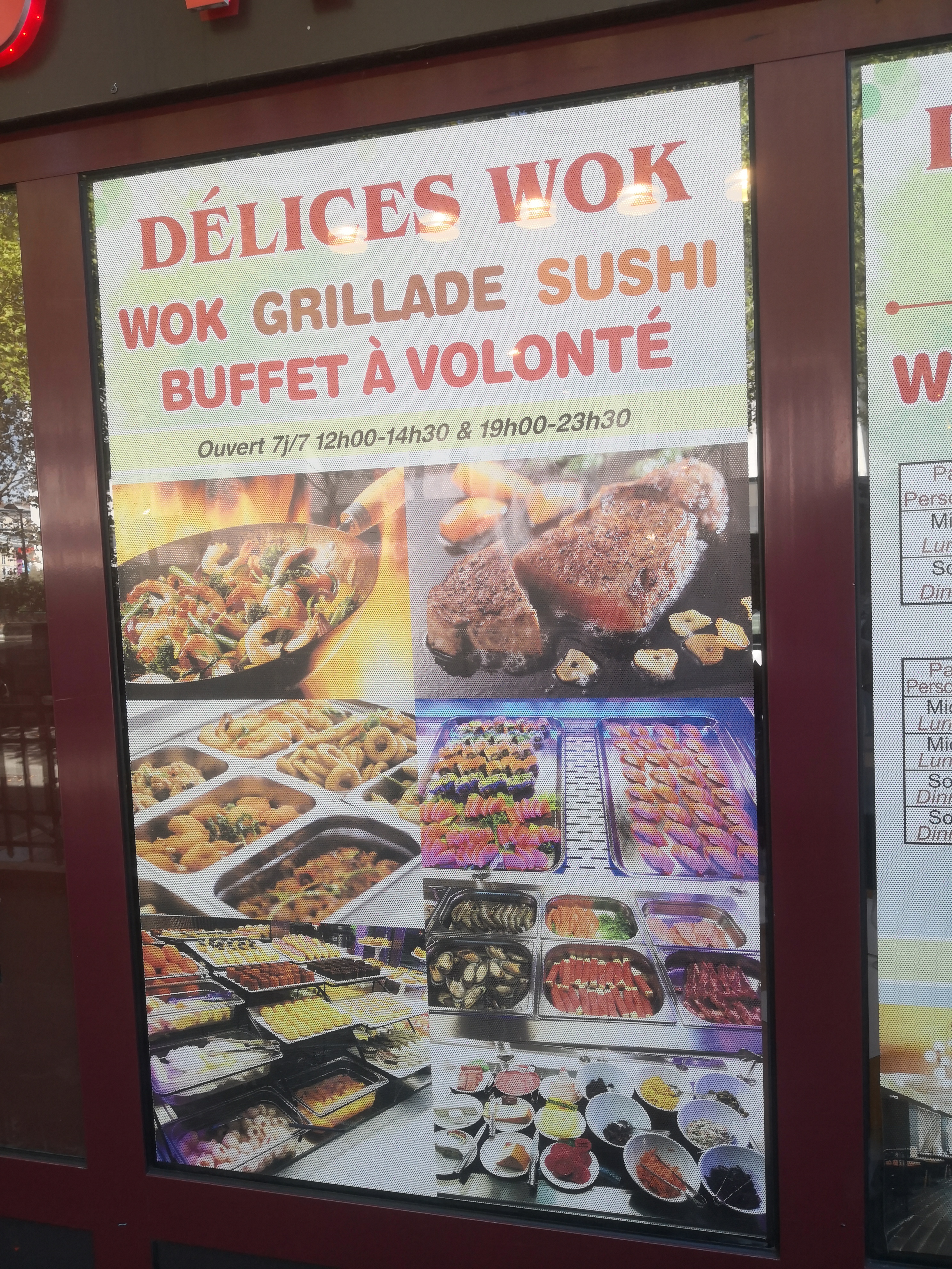 C'est le meilleur buffet chinois. Avec un choix gigantesque. Plats chinois préparés.Entrees japonaises.Grillades et wok en fruits de mer et même belles tranches de faux filet,et une montagne de désert.Un conseil Prenez une très petite quantité à chaque fois pour pouvoir goûter à tout. Mais vous n'arriverez pas. Tellement c'est varié. En semaine comptez 14 euros à midi.C'est donné.Allez y les yeux fermés.