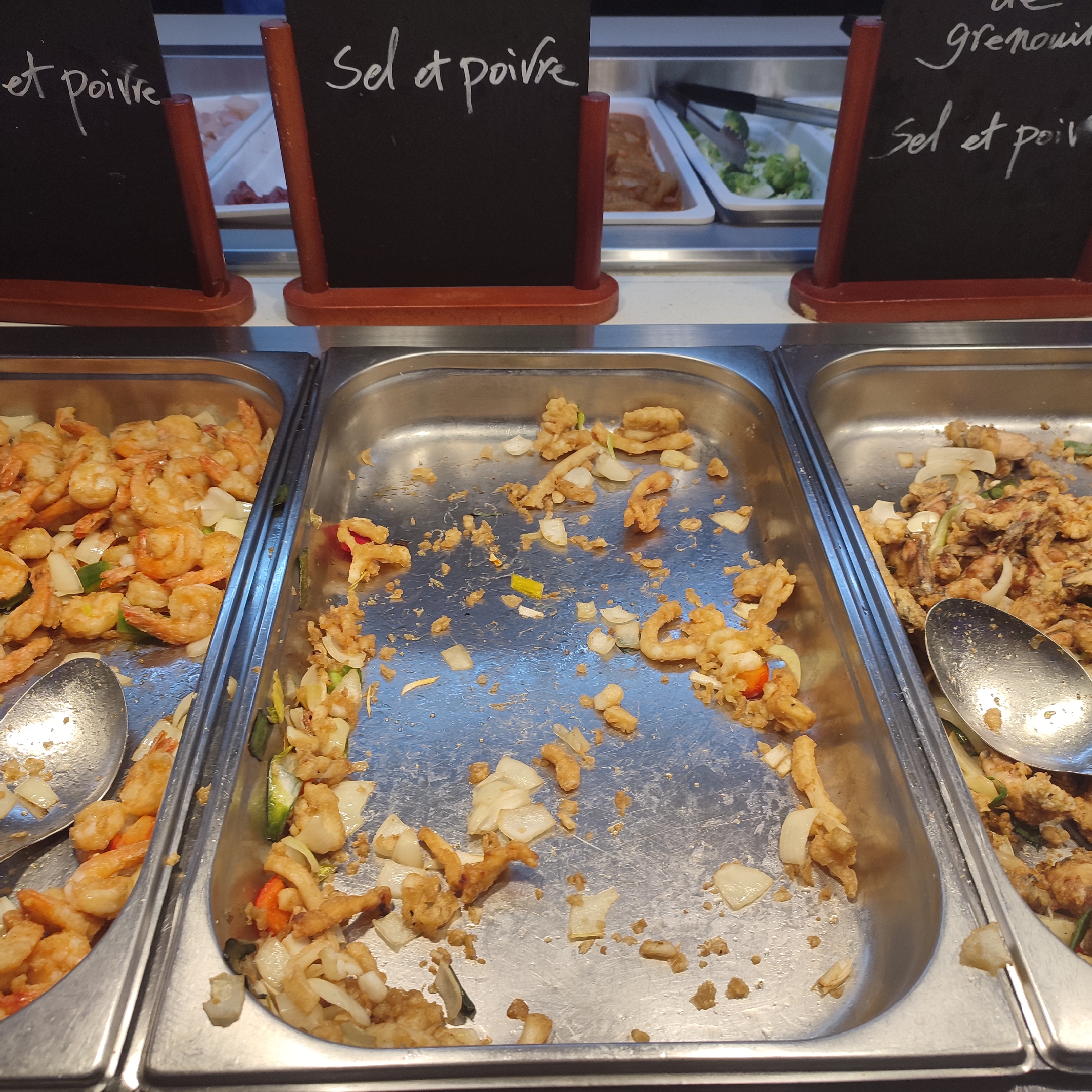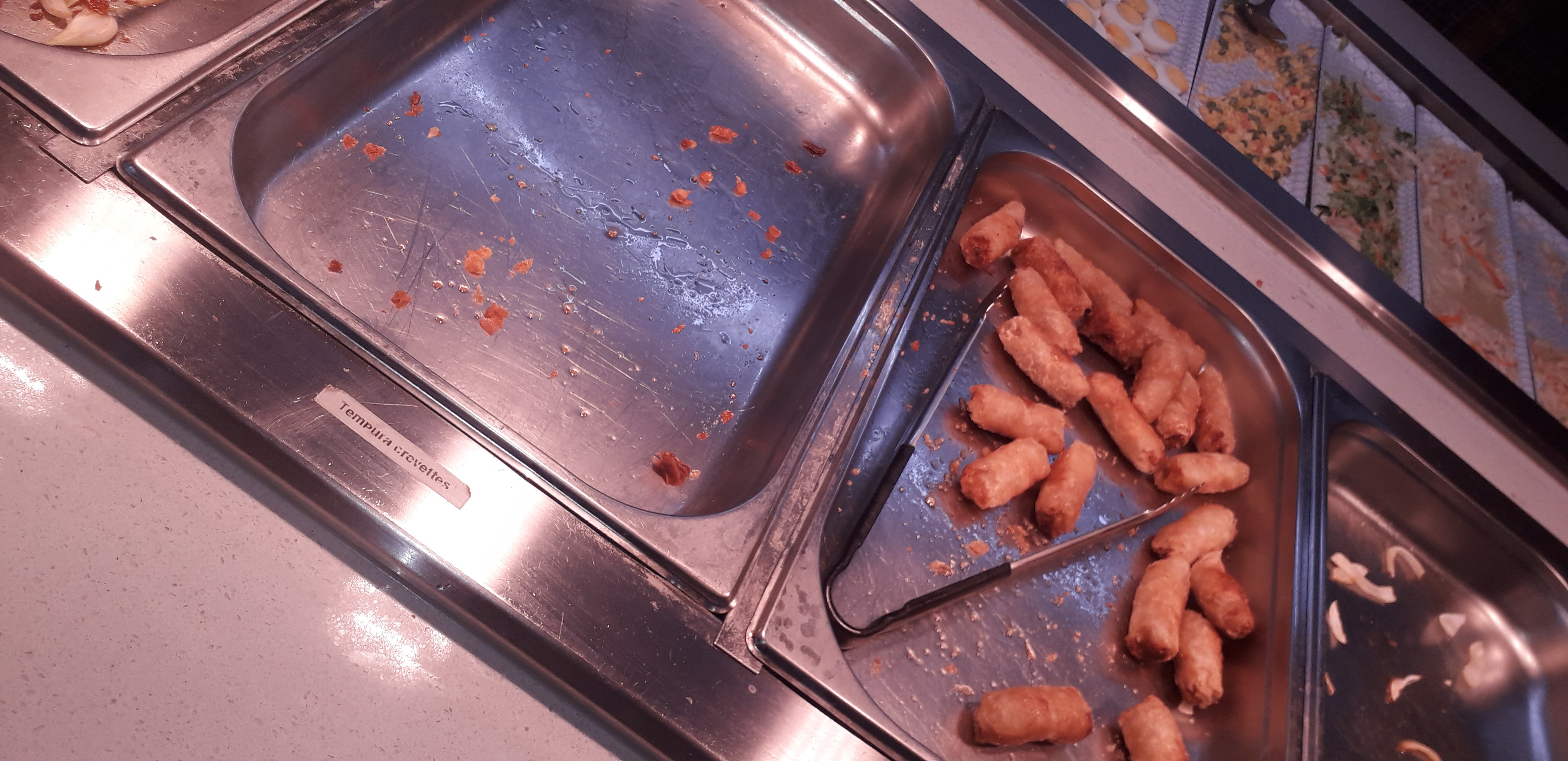 Les restaurants à volonté sont forcément moins qualitatifs, mais là, la nourriture n'est juste pas bonne. La plupart des plats sont trop cuits voir difficiles à manger (nouilles, nems, beignets, brochettes, etc). Les autres sont simplement peu savoureux. Il a du choix mais si c'est pour manger aussi mal qu'à une cantine, ça ne vaut largement pas le prix...