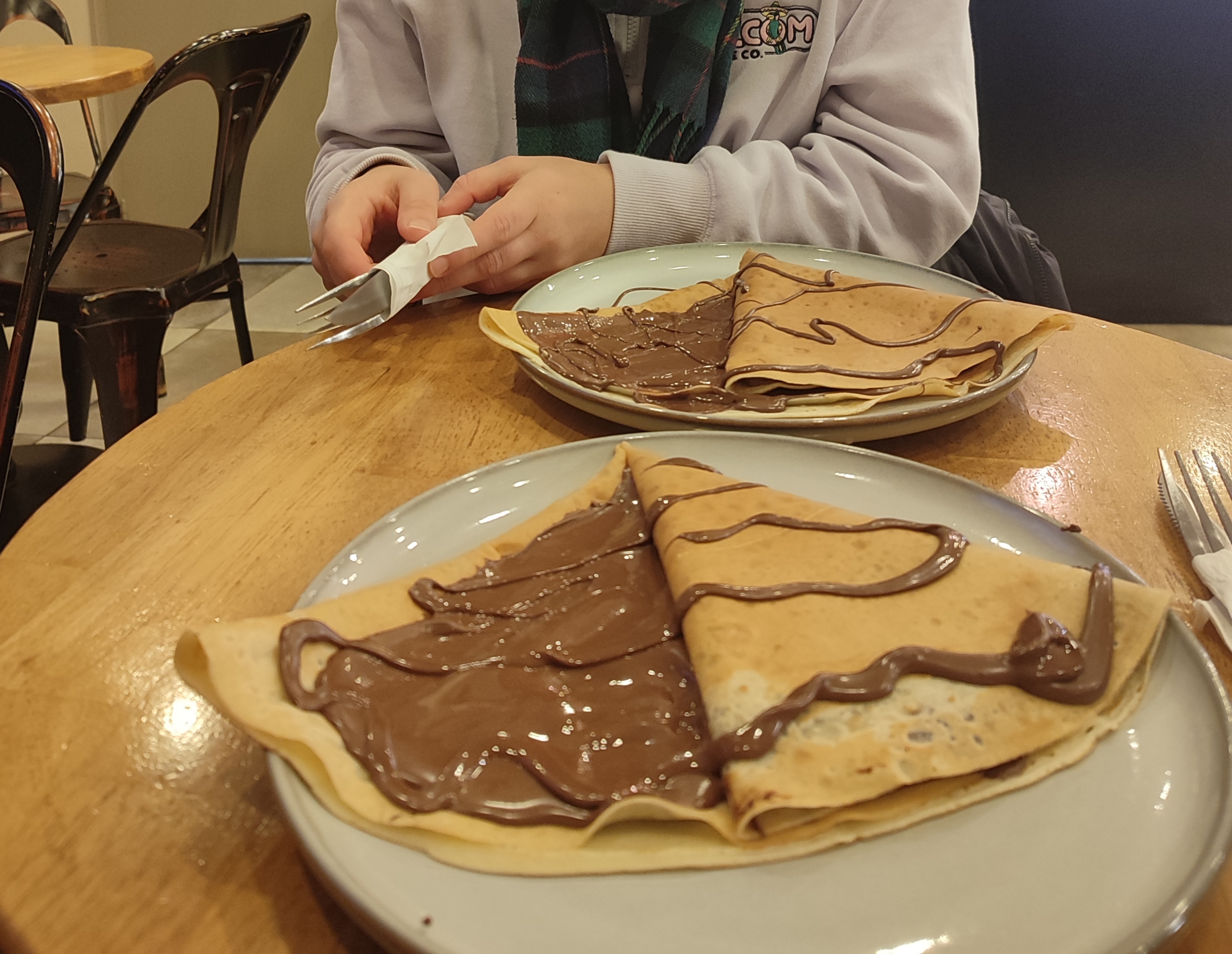 Une complète au sarrasin avec blanc de dinde, œuf et fromage puis une sucrée Nutella Coco. Avec le café pour moins de 20€, ça vaut le coût