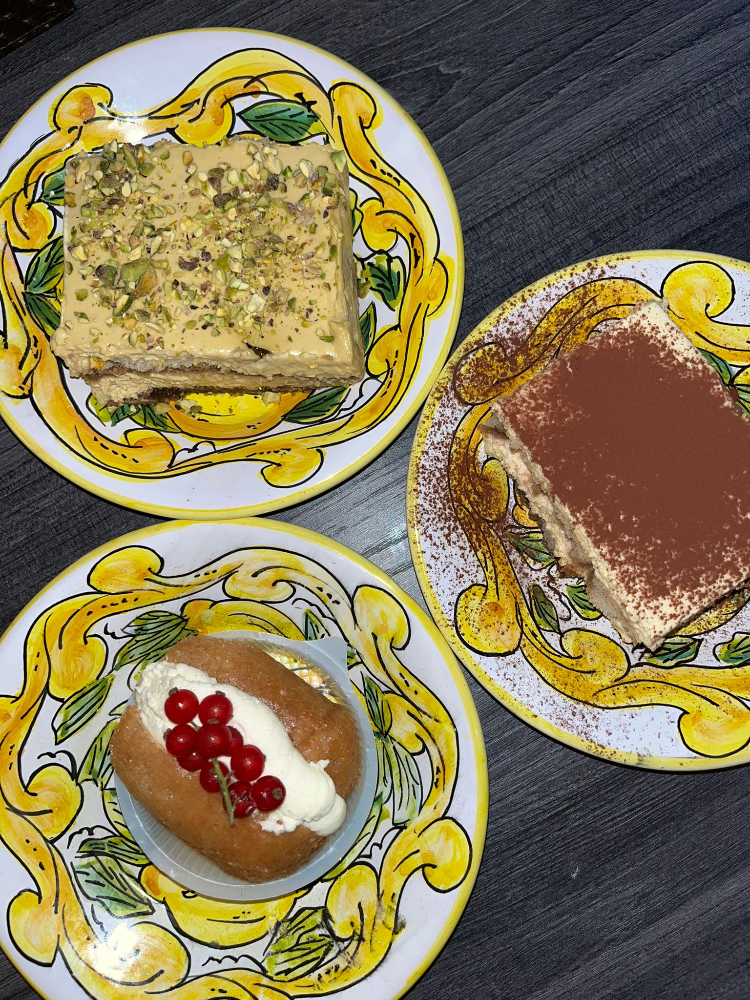 Les plats sont excellent. Nous avons pris une pizza saumon, des pates au gorgonzola, pates au pesto et bolognaise, tout était bon Par contre les tiramisus a la pistache n’avaient vraiment pas du tout de gout, dommage. Et il fait très très chaud a l’étage