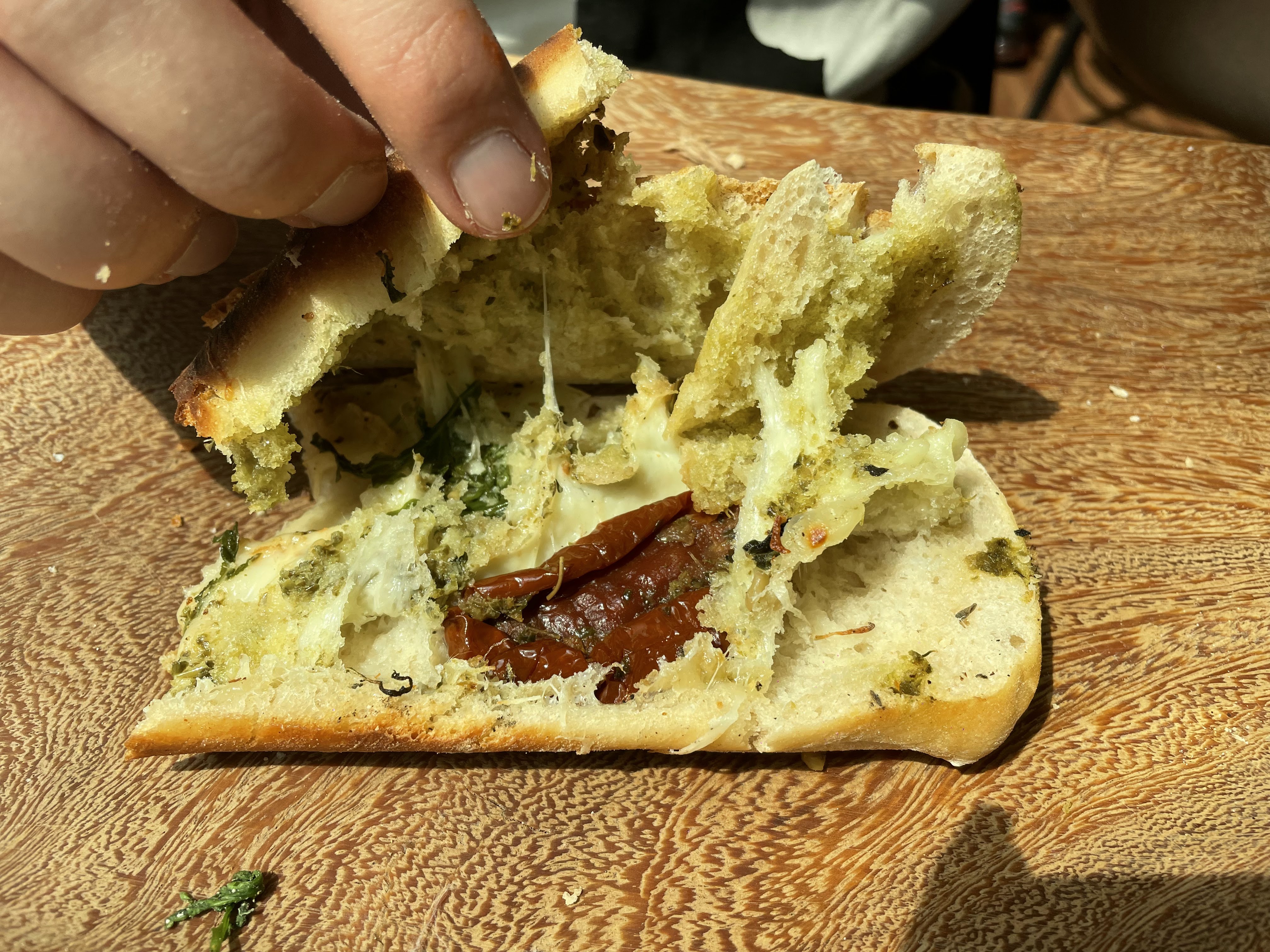 Je ne recommande absolument pas ce restaurant. Personnel endormi et très mal organisé. Le panini italien que nous avons pris était vide.. comme vous pouvez le voir sur la photo. Il y avait un tour petit peu de pesto et deux pauvres tomates séchées. La part de pizza était correct. L’hygiène est également à revoir..